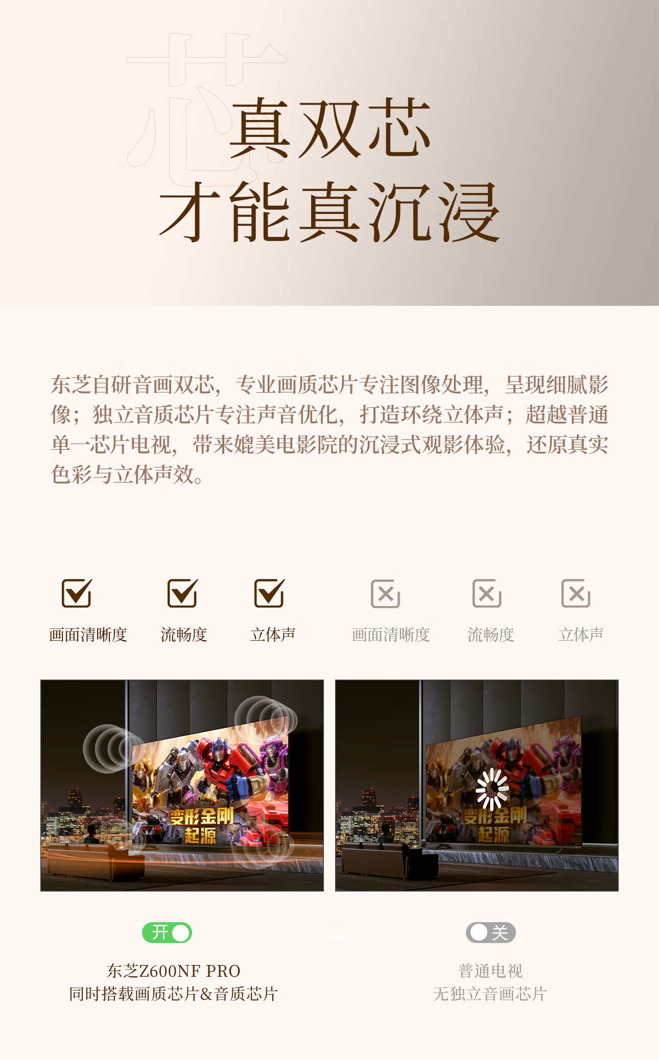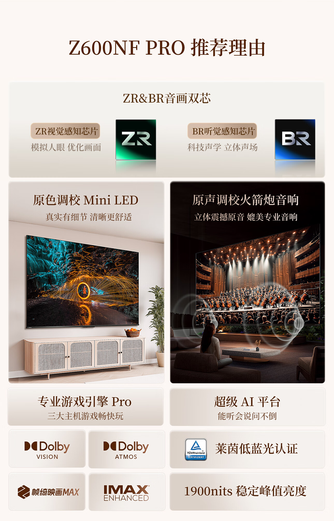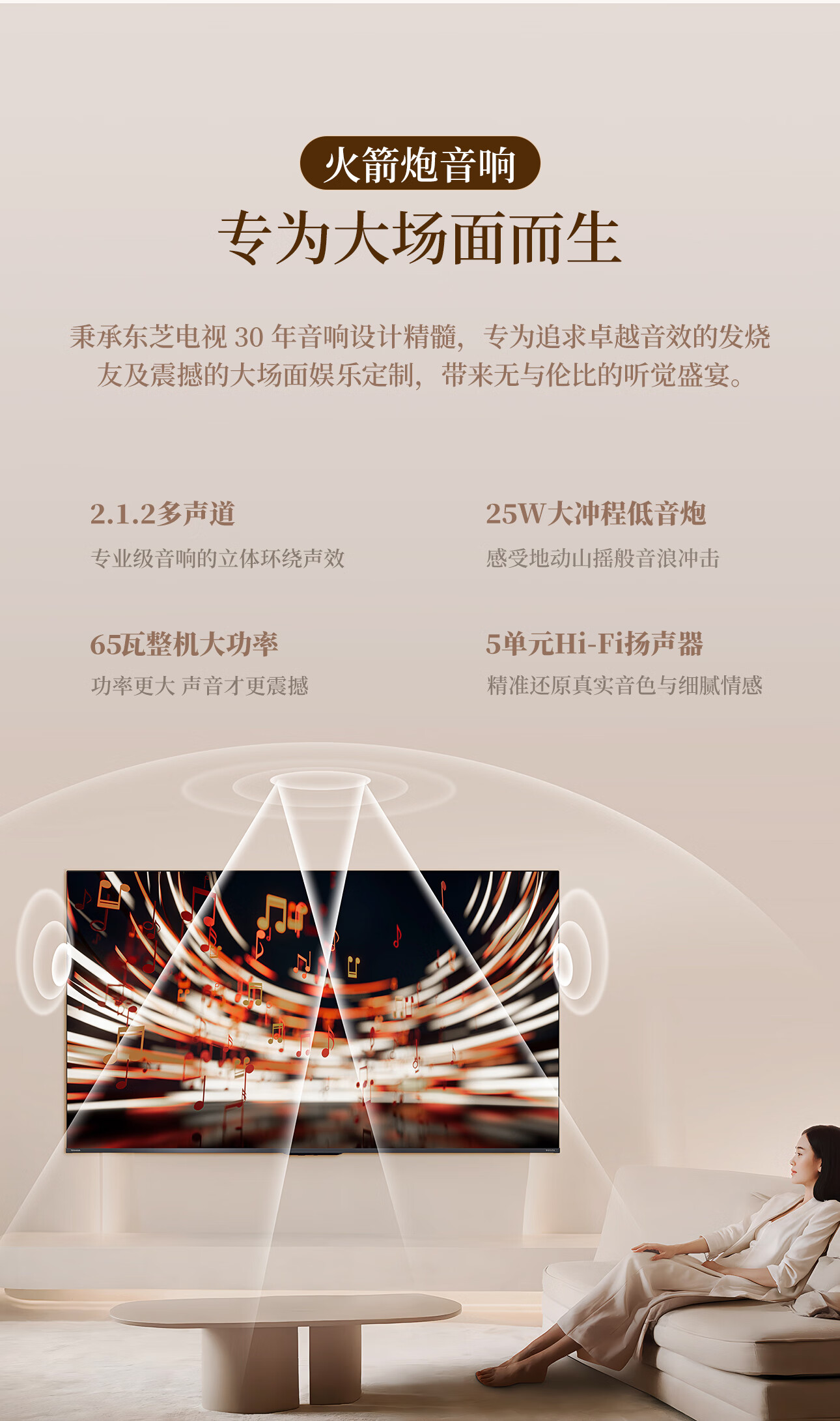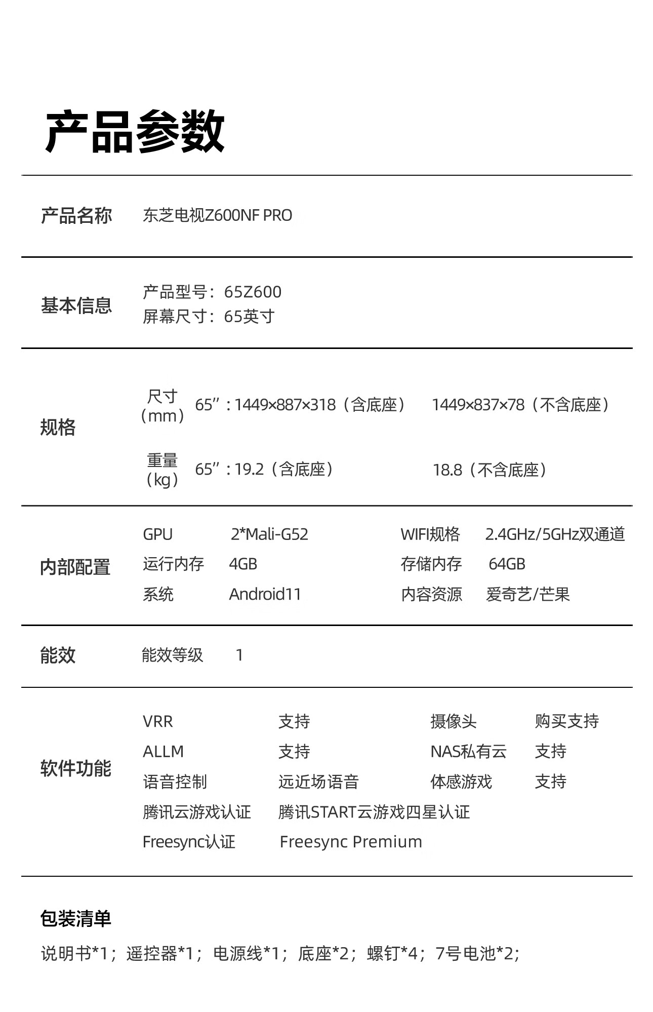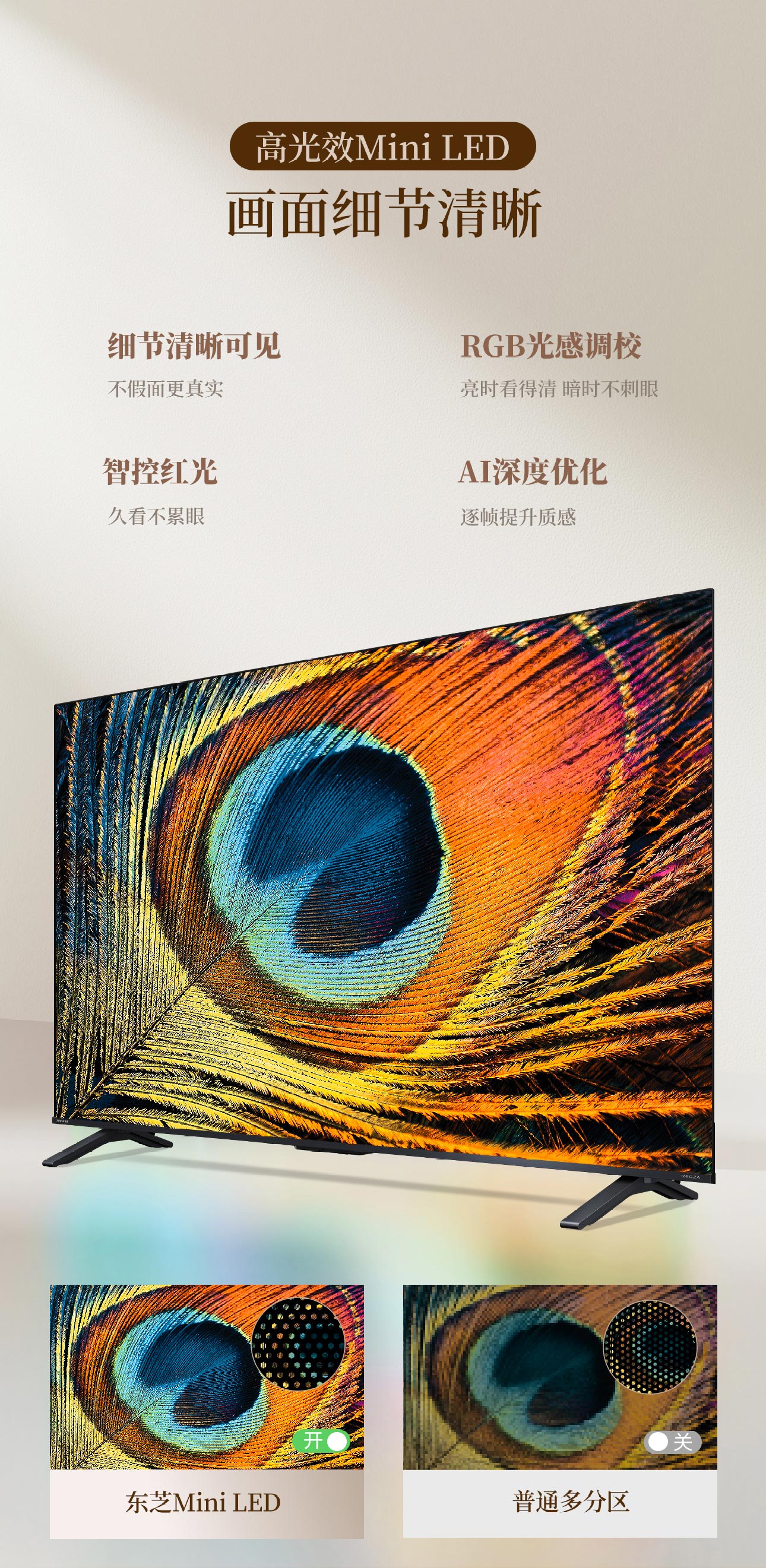 东芝电视小芝士65Z600NF PRO 65英寸 音画双芯Mini LED【包安装版-固定挂架送装一体】144Hz 国家补贴