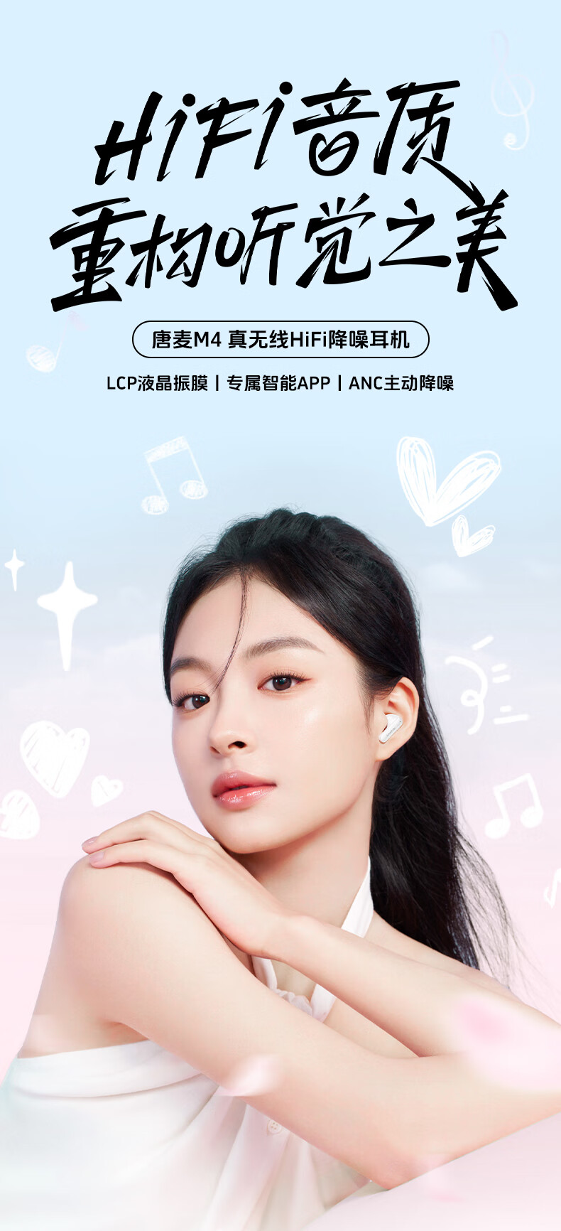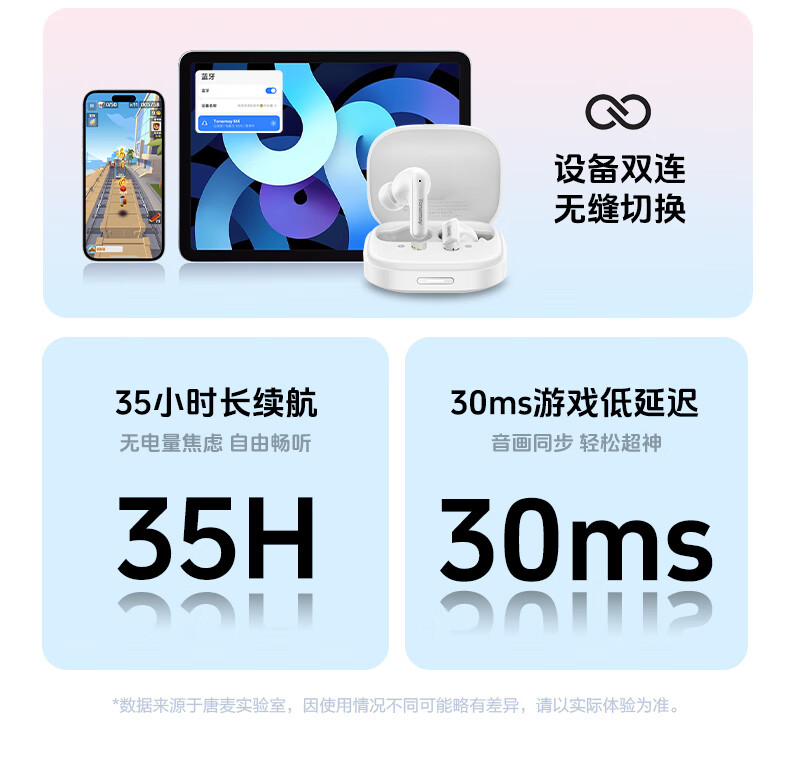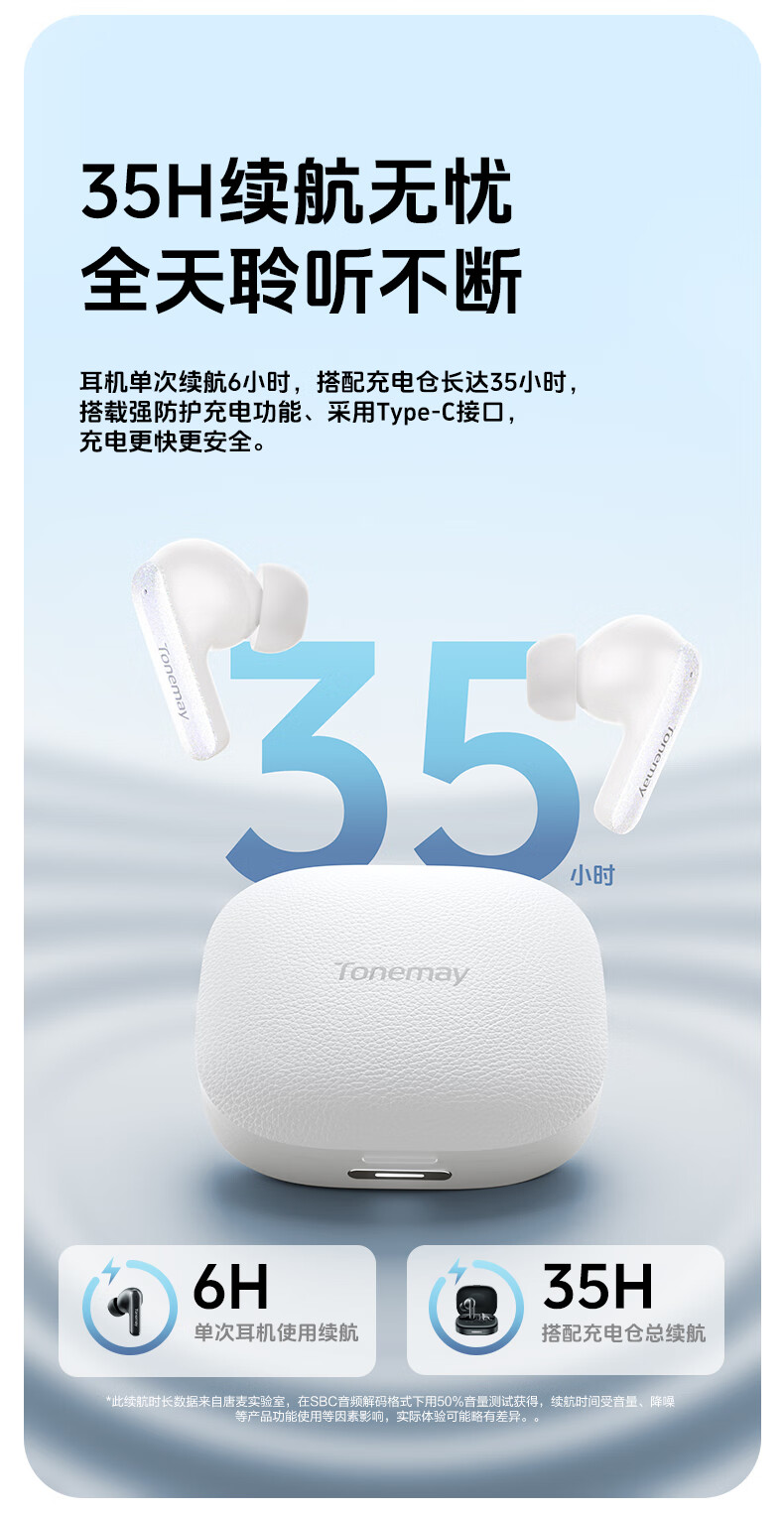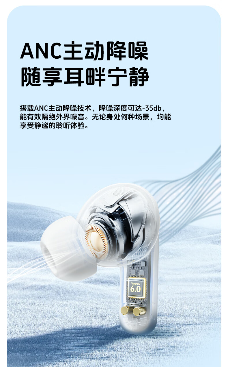 唐麦M4【真HiFi音质】无线蓝牙耳机蓝牙6.0入耳式35dB主动降噪35h超长续航跑步运动通话电竞游戏通用白