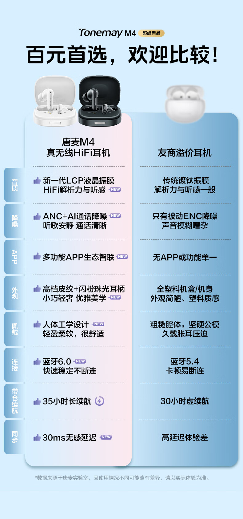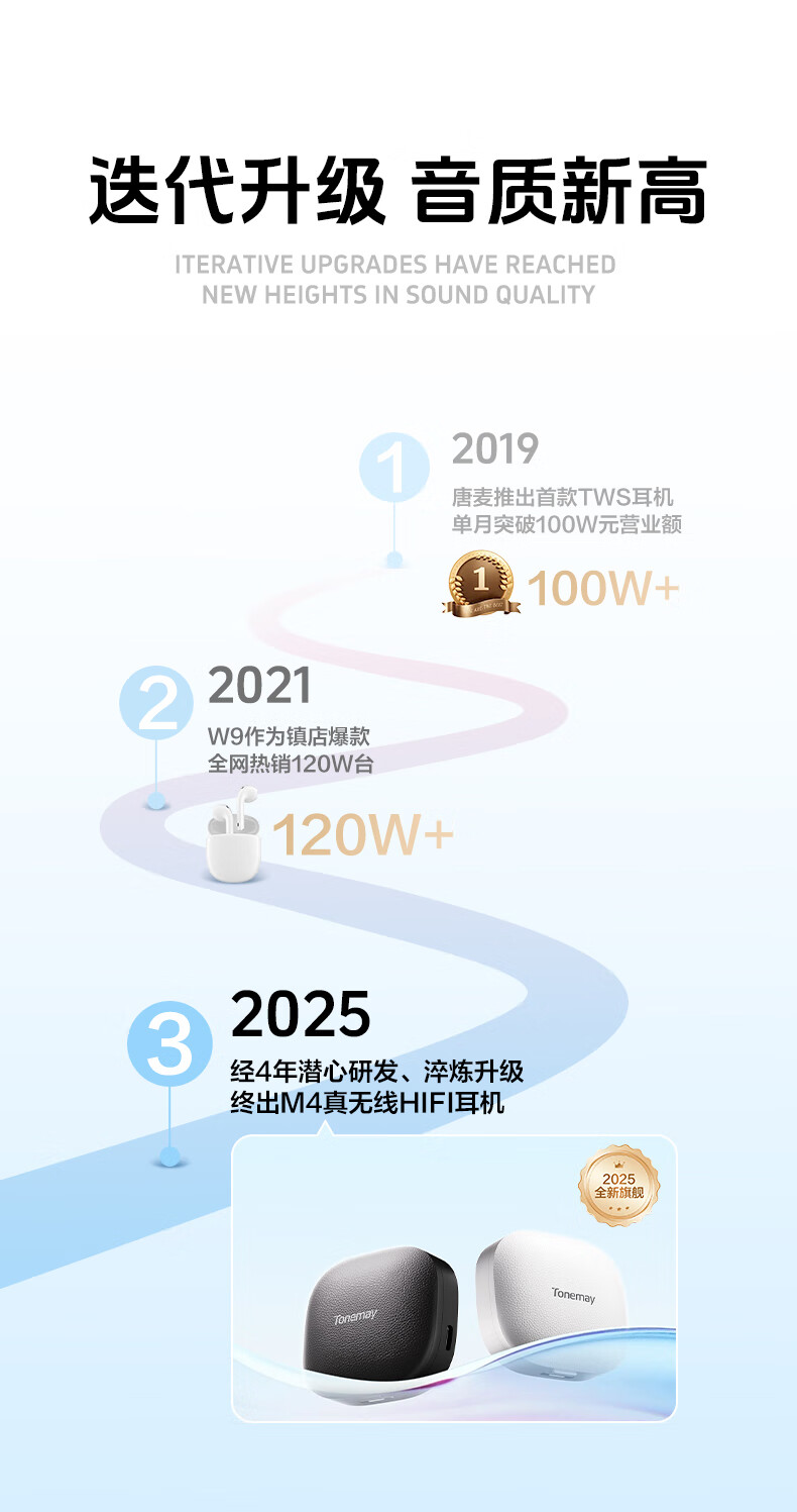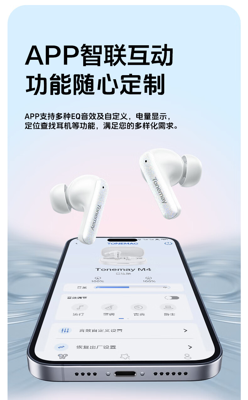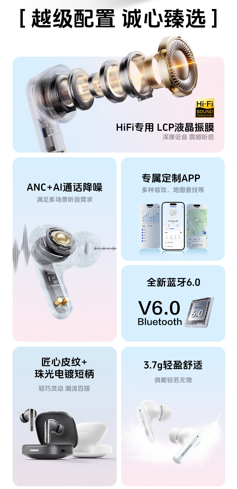 唐麦M4【真HiFi音质】无线蓝牙耳机蓝牙6.0入耳式35dB主动降噪35h超长续航跑步运动通话电竞游戏通用白