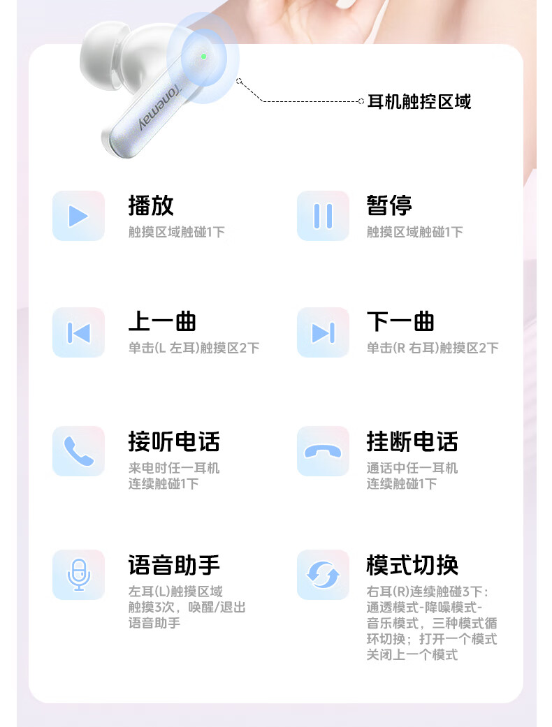 漫步者花再拍拍耳机 半入耳式蓝牙耳机 DIY触控屏 升级蓝牙6.0 32h持久续航 适用苹果华为小米 迷雾粉