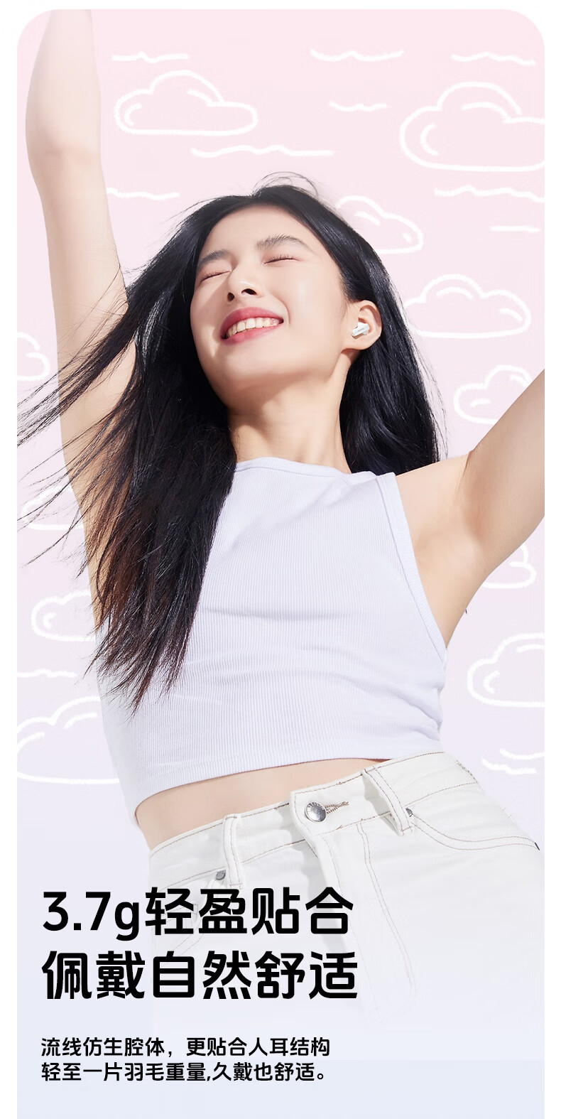 漫步者花再Zero Air Pro 无线蓝牙耳机 半入耳式耳机 蓝牙6.0 41h持久续航 慕斯粉