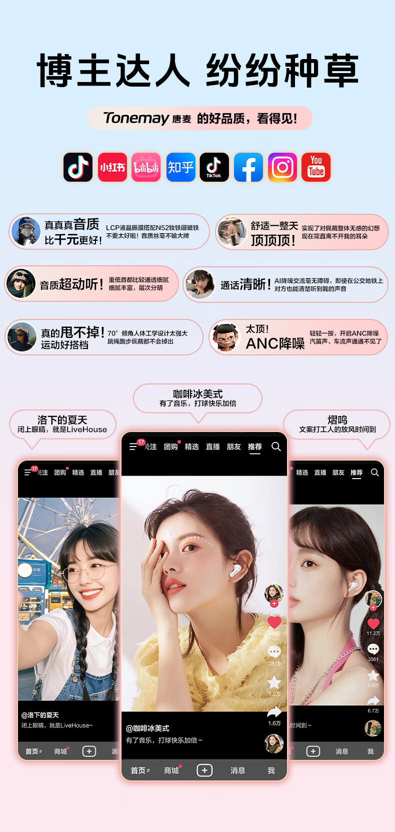 弱水时砂【周传雄推荐】earfeel i5无线蓝牙耳机入耳HiFi音质游戏运动耳机主动降噪长续航学生 武士黑|HiFi音质+强降噪+不压耳
