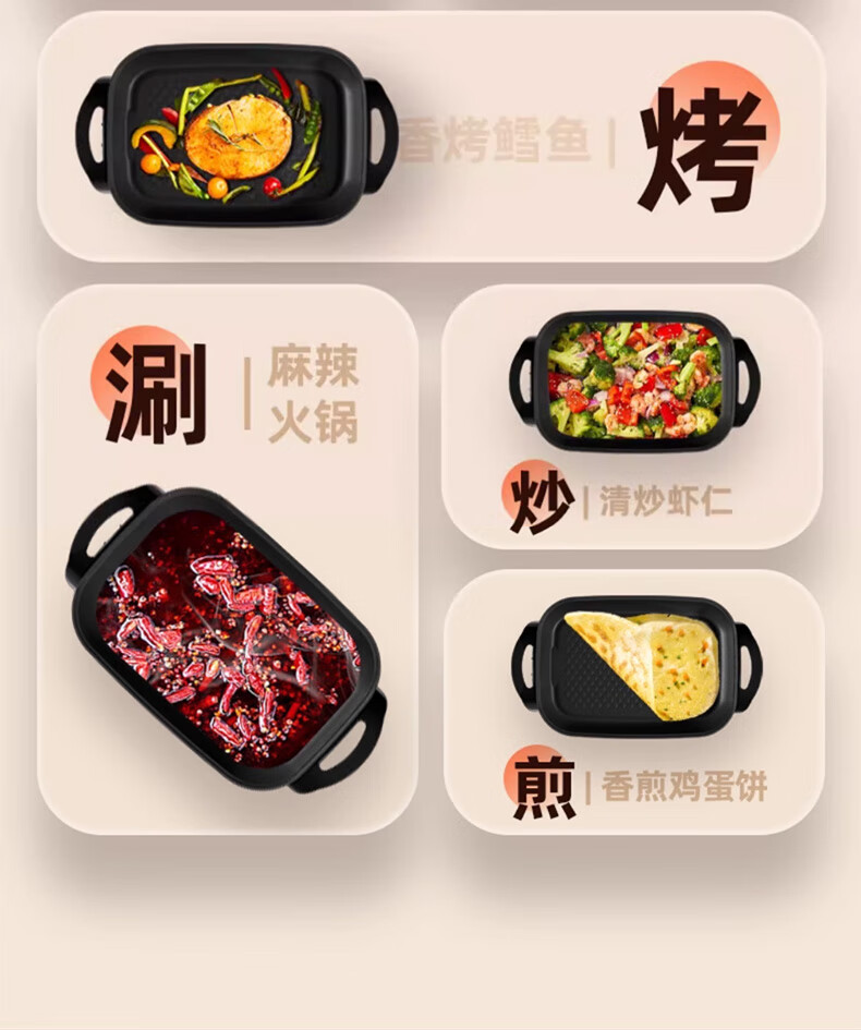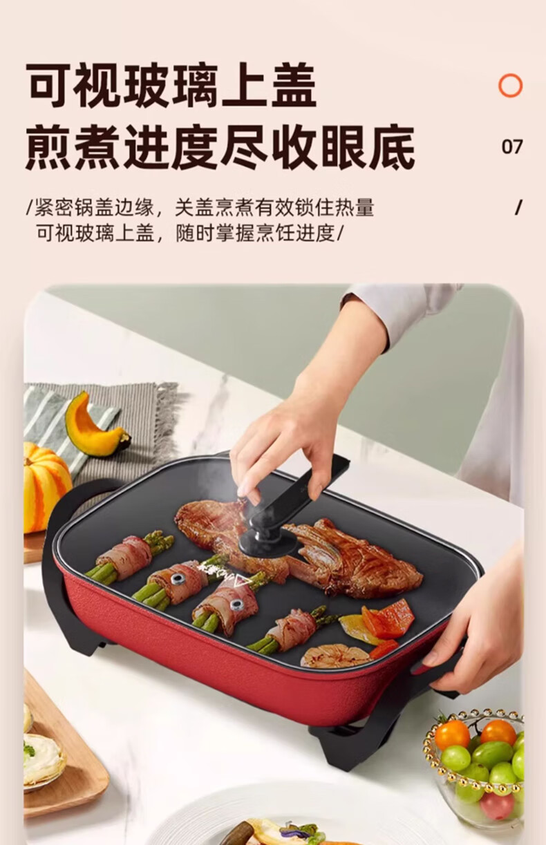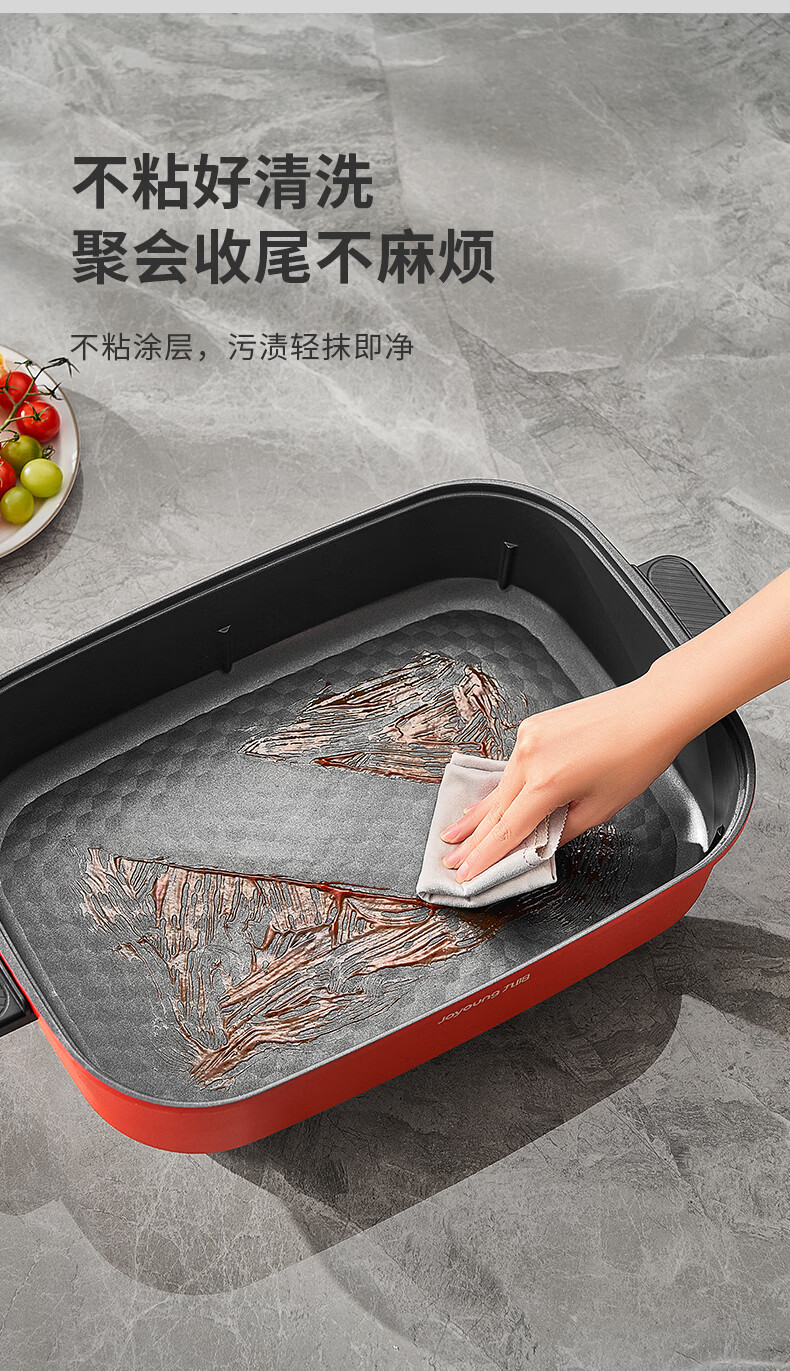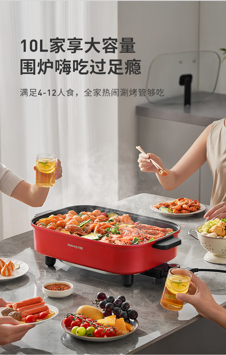 九阳(Joyoung) 电火锅烤涮一体两用锅烤肉锅电烤盘大功率烤鱼炉家用多功能电蒸锅炖蒸煮电炒锅一体不粘锅 8L 1800W-5档火力可调