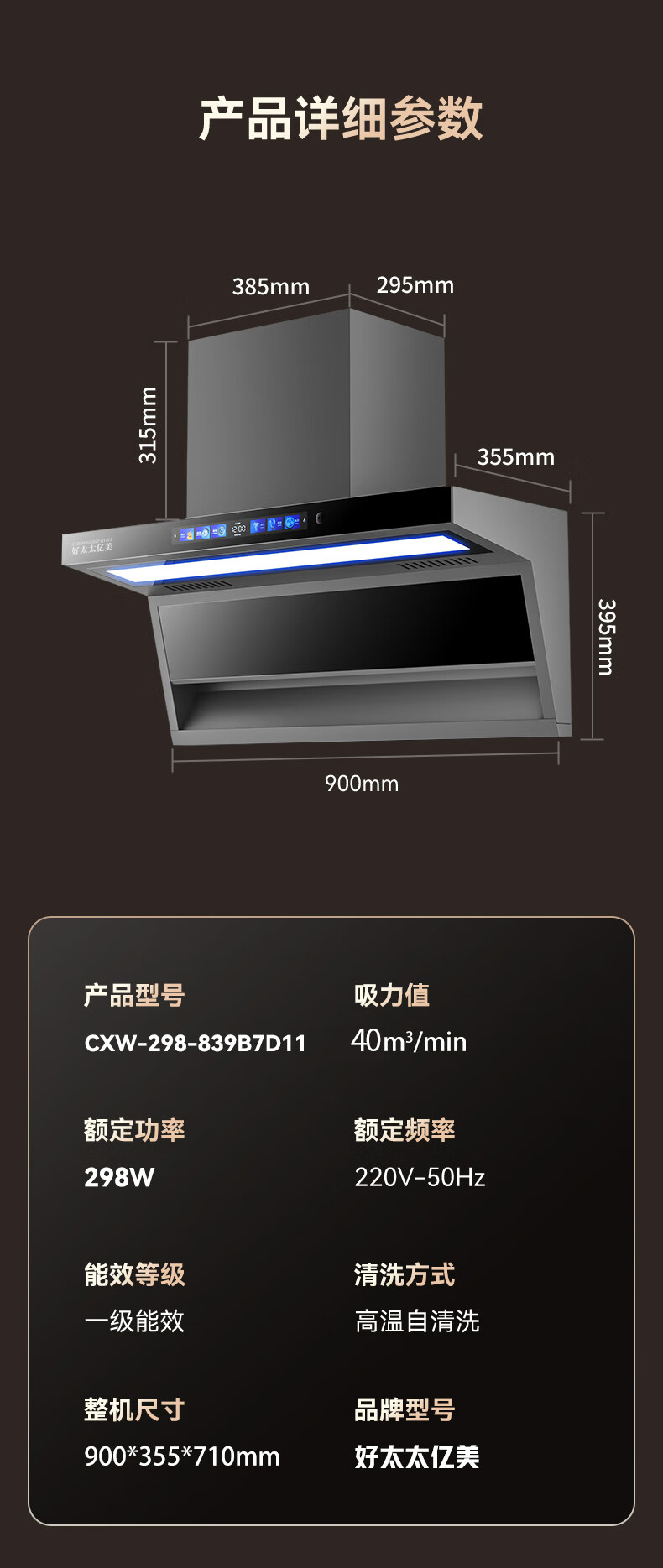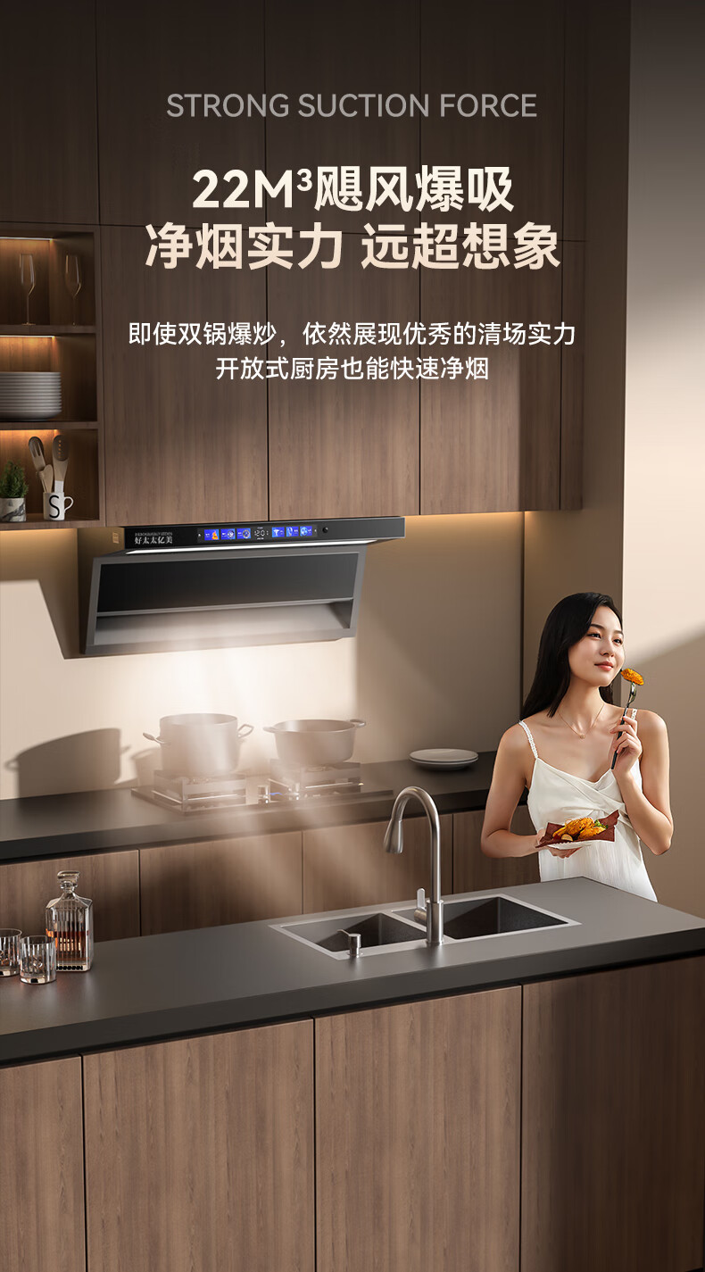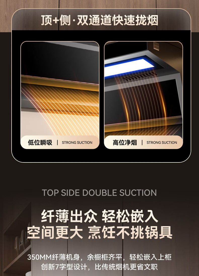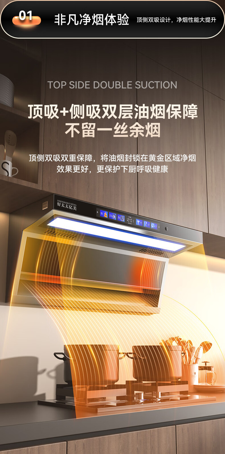 好太太亿美油烟机一级能效变频家用大吸力顶侧双吸大风量静压低噪音7字型油烟机燃气烟灶套装 上门安装 【旗舰款套装天然气】46m³油烟分离+纯铜猛火灶