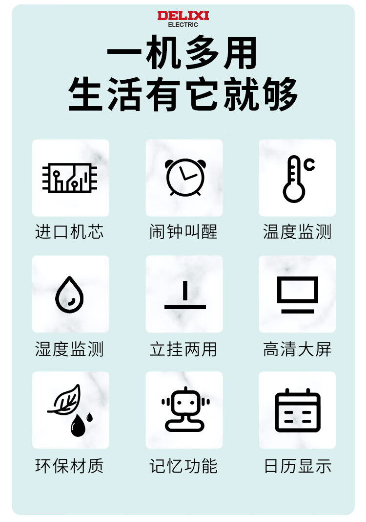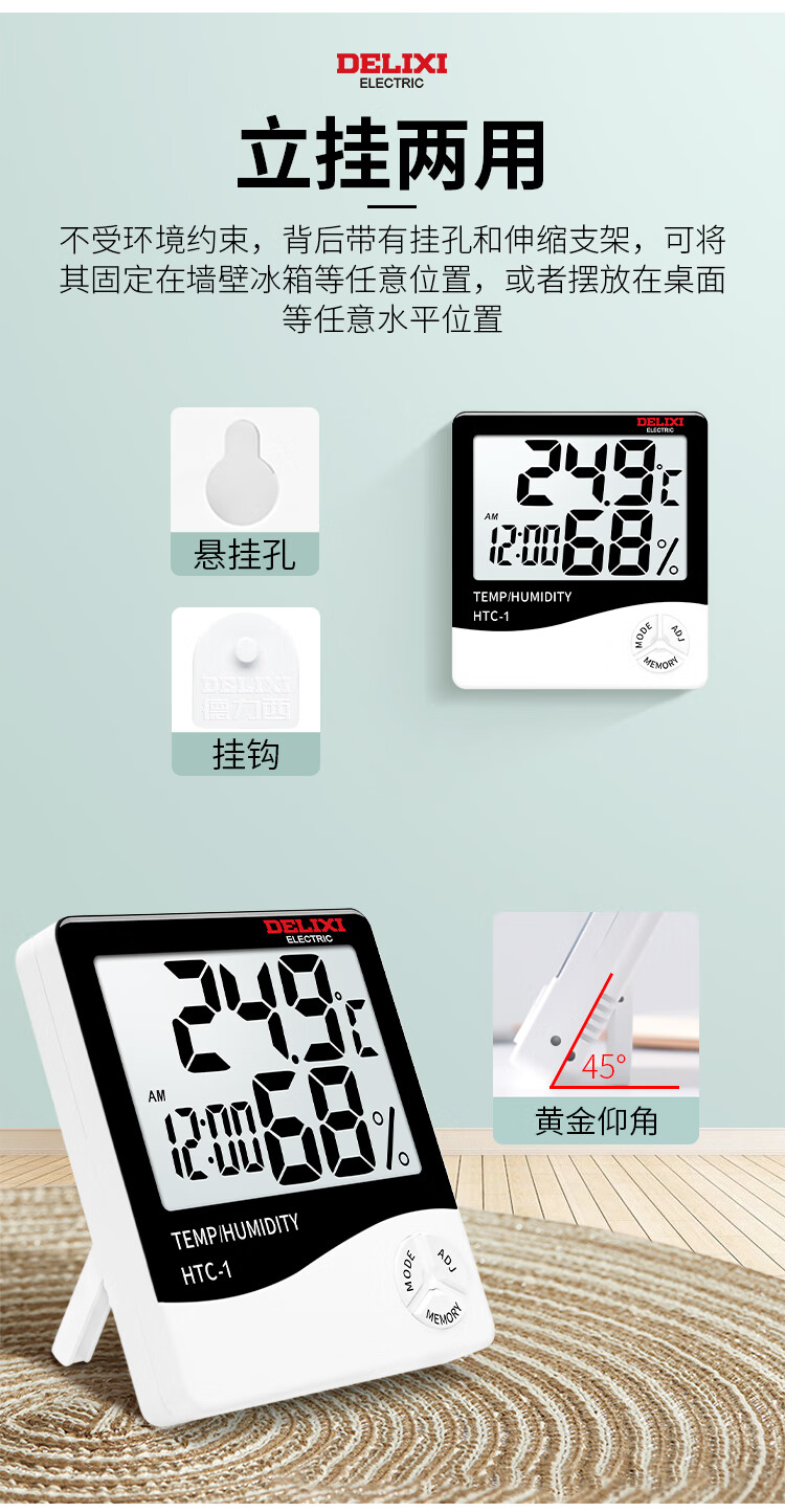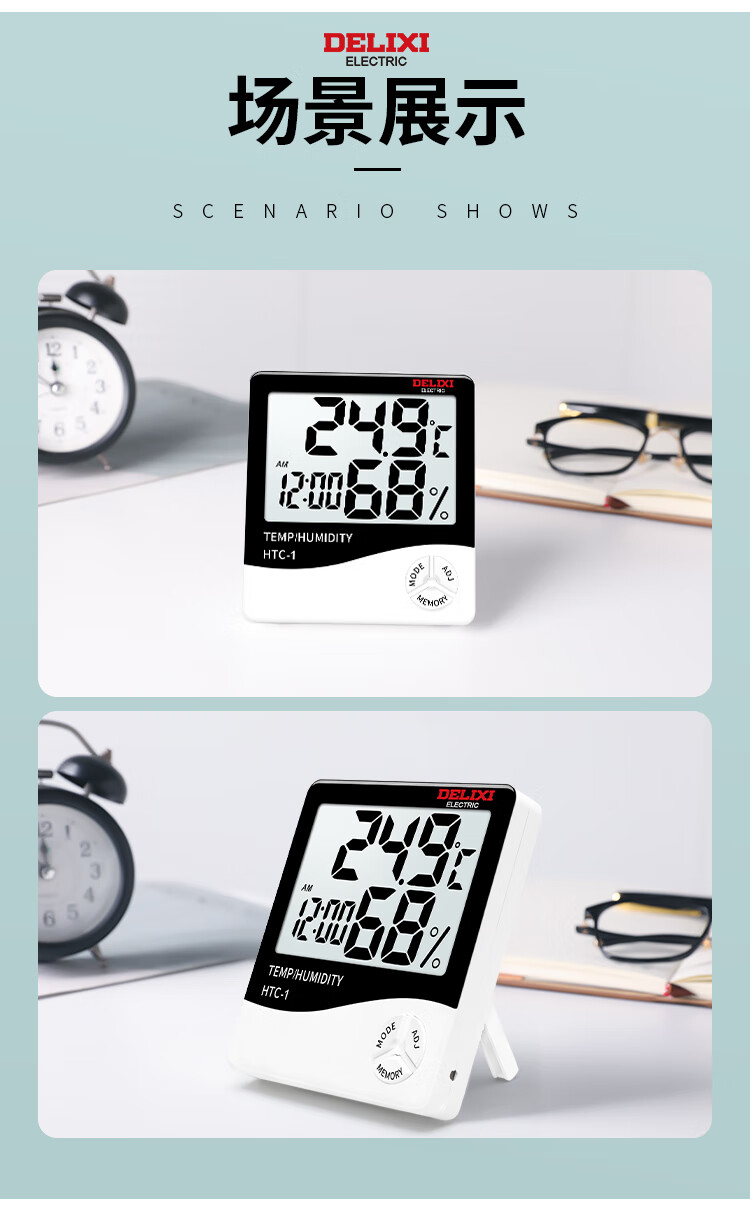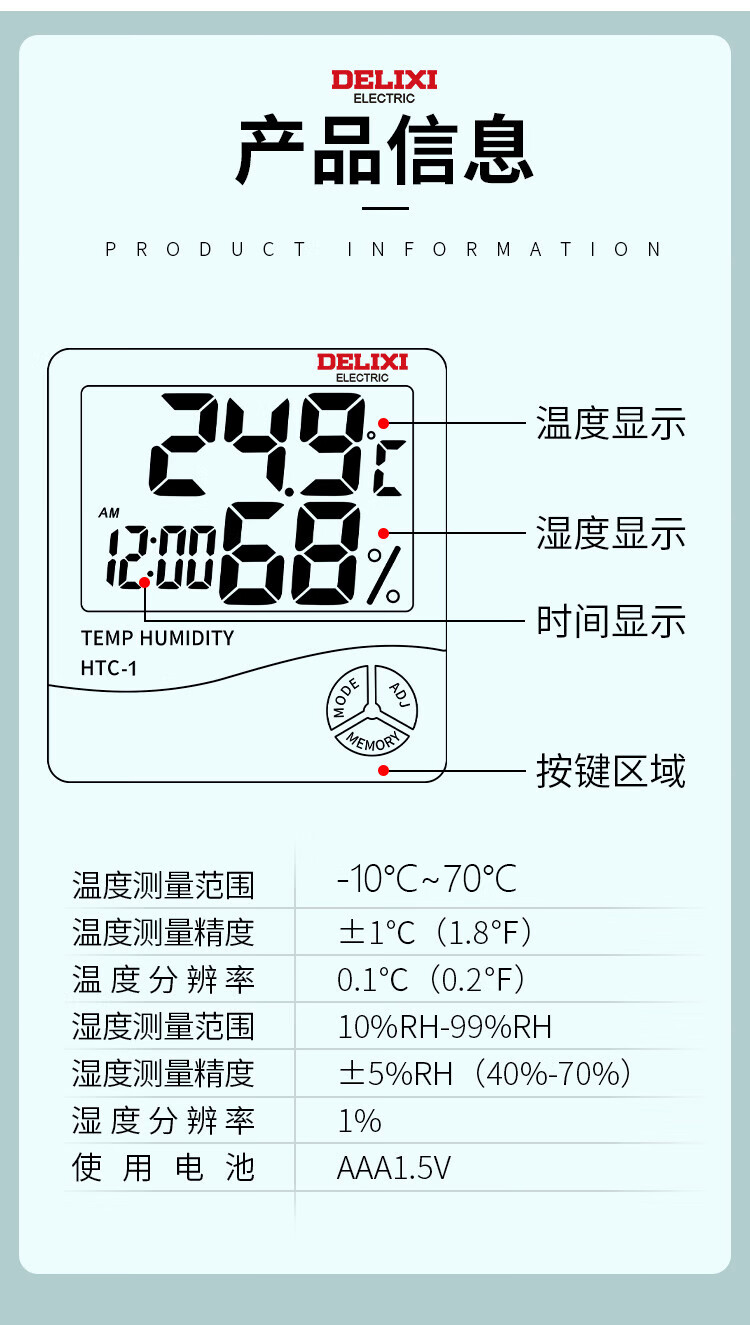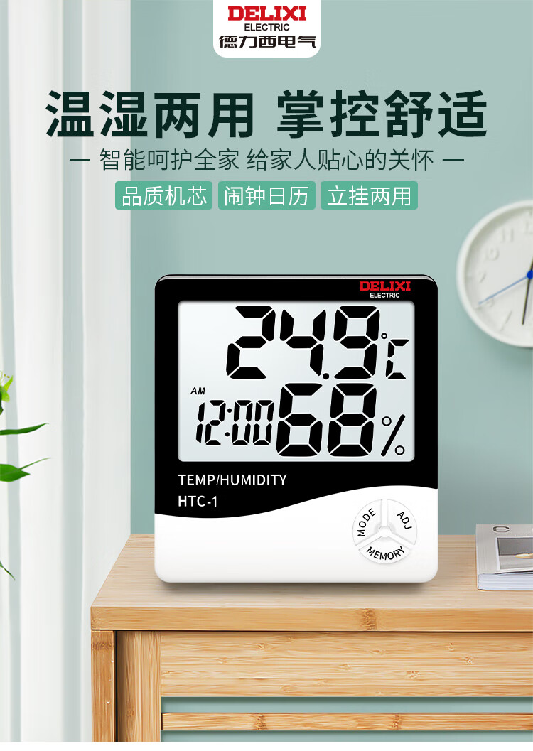 德力西电气(DELIXI ELECTRIC)温度计湿度计室内湿温度计闹钟电子台式大棚温湿度计高精度HTC-1