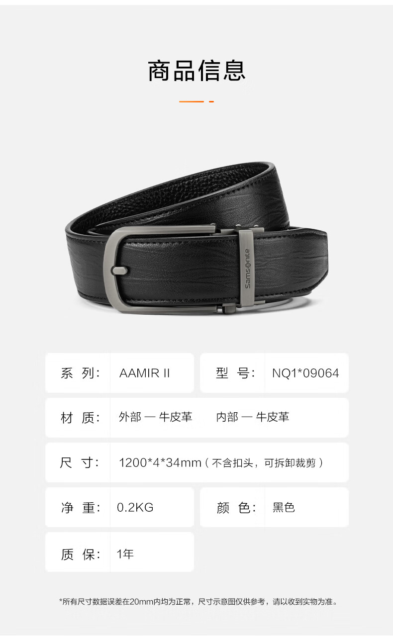 新秀丽(Samsonite)男士皮带腰带高端休闲针扣牛皮皮带礼盒生日礼物NQ1