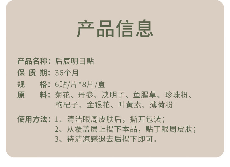 后辰明目贴叶黄素儿童穴位贴学生决明子中老年冷敷眼贴1盒