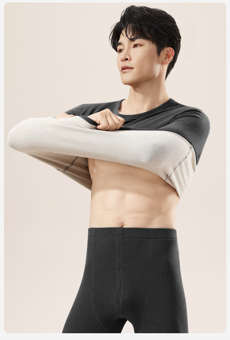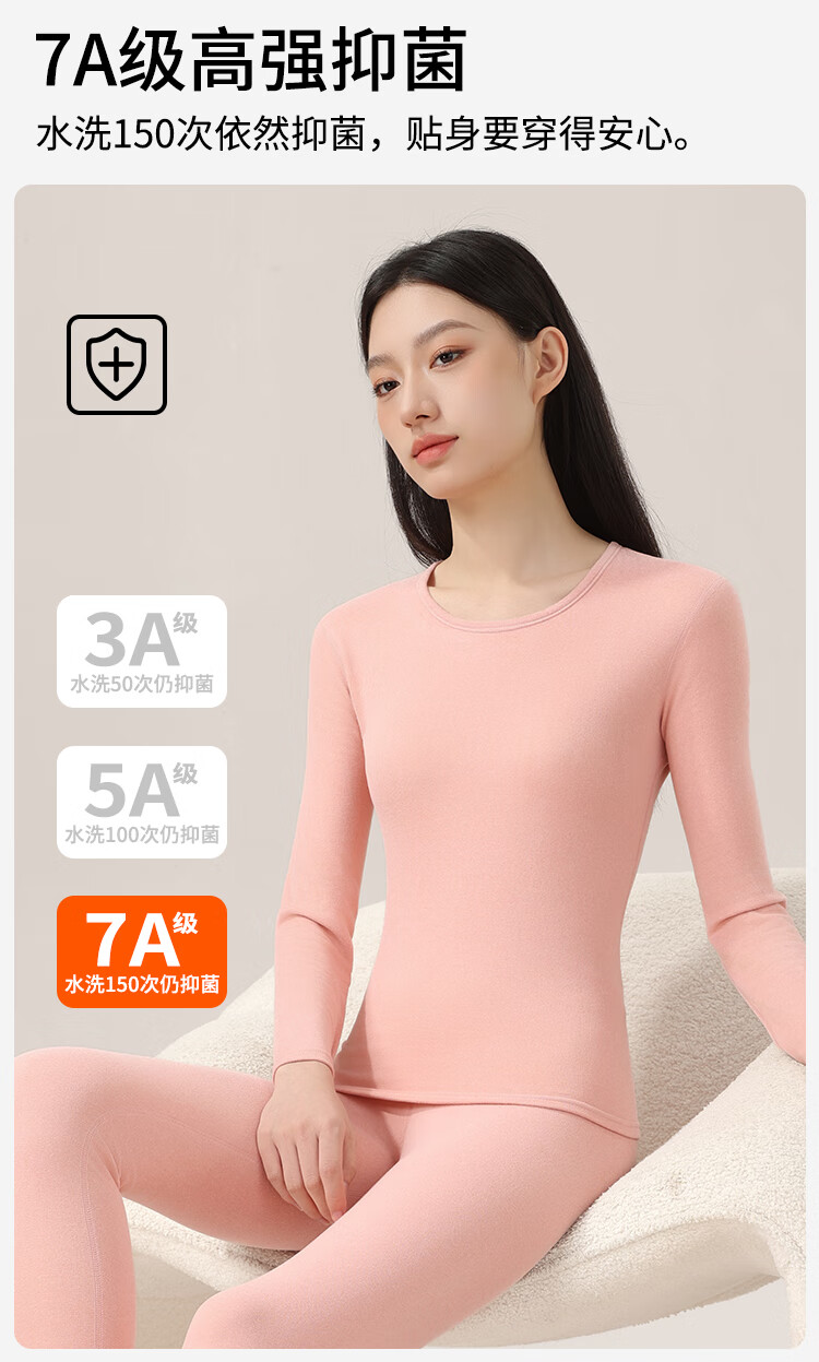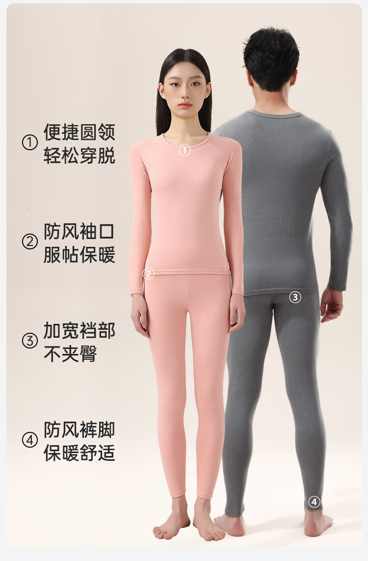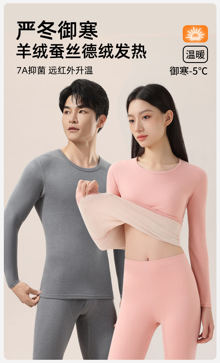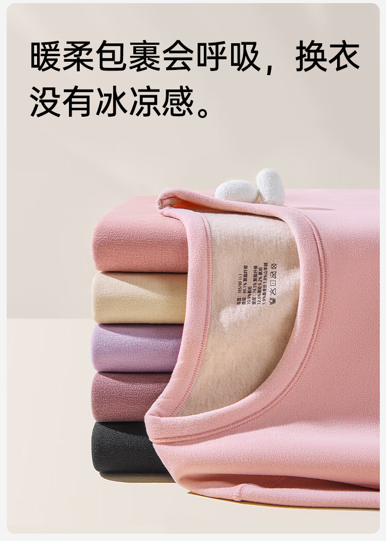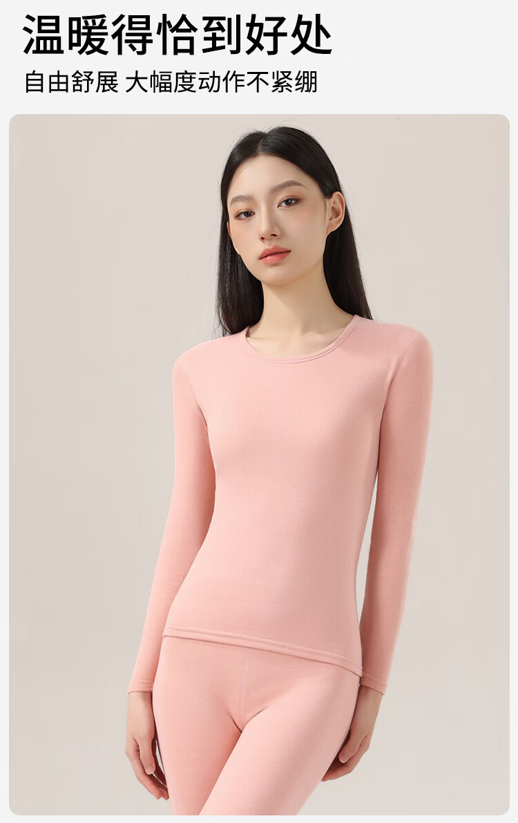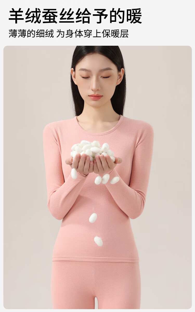 都市丽人含羊绒蚕丝德绒发热保暖内衣女士加绒加厚秋衣秋裤套装黑色M