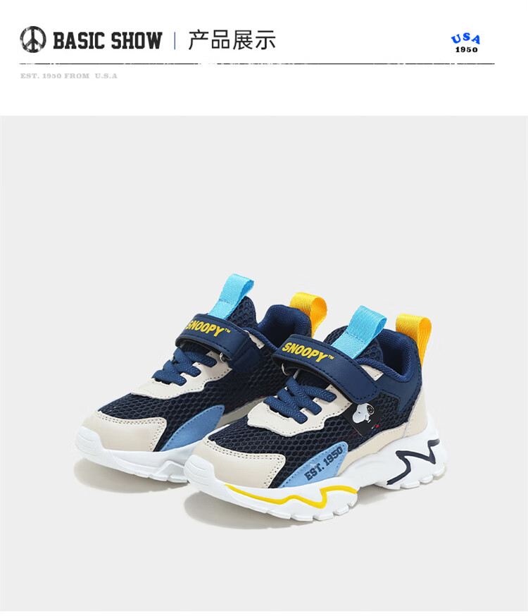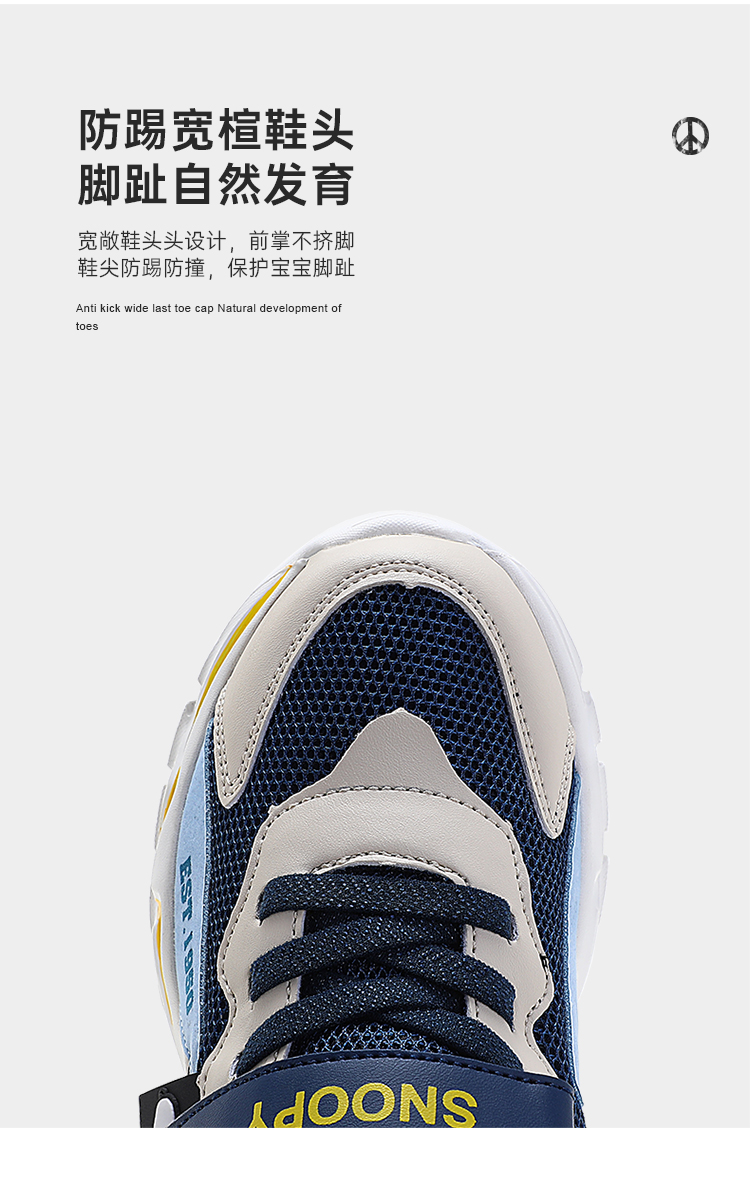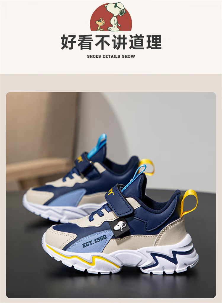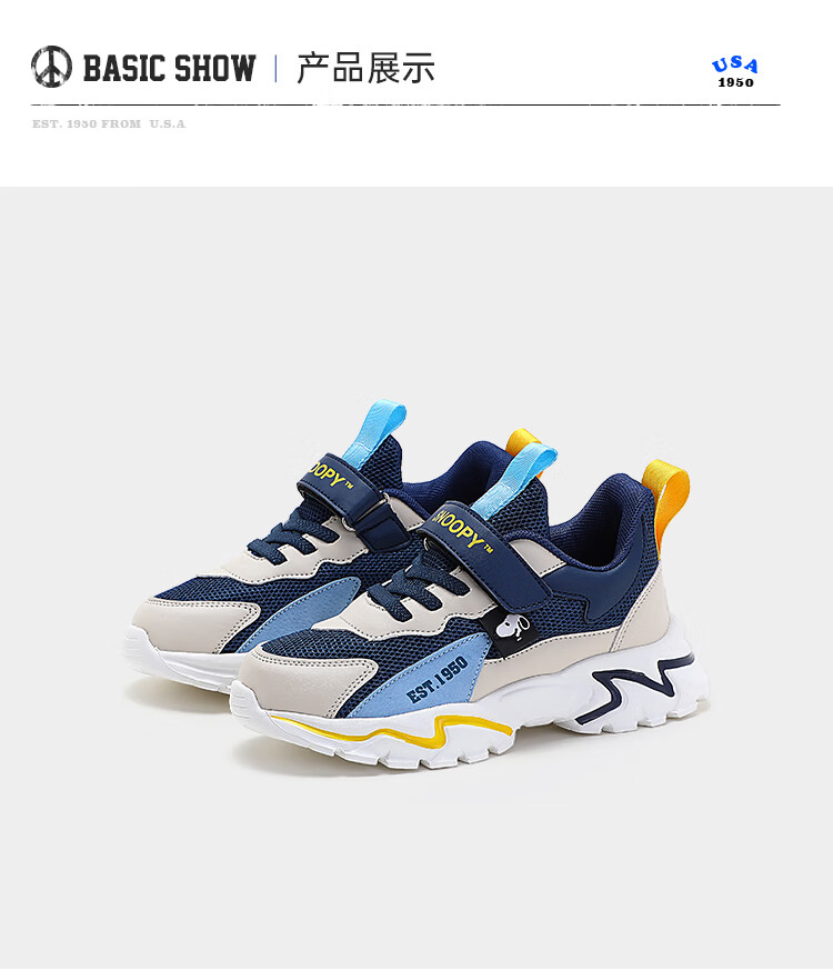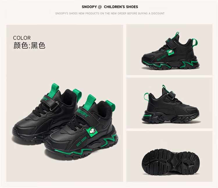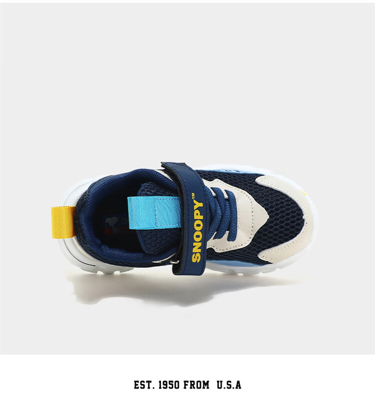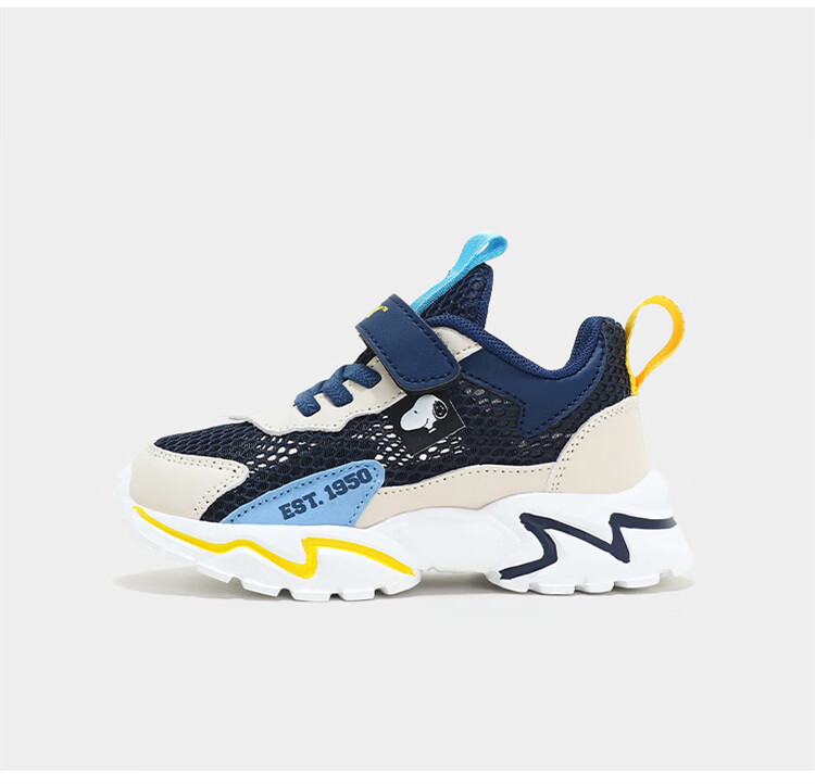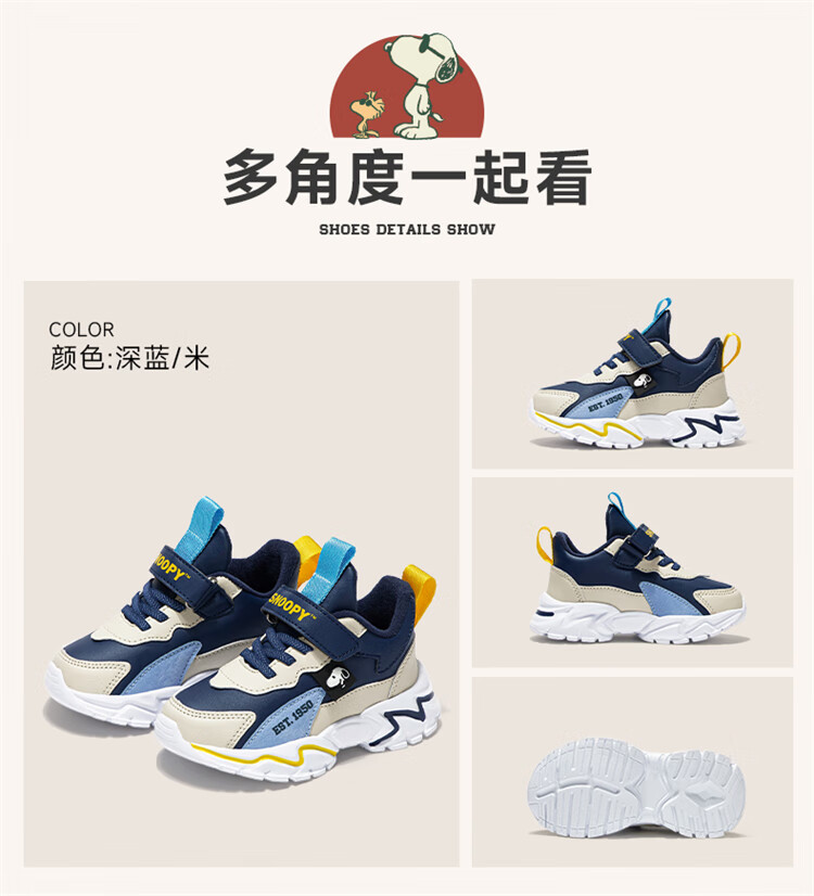 SNOOPY史努比童鞋男童运动鞋冬季短绒加棉跑步鞋保暖棉鞋3933A深蓝米36