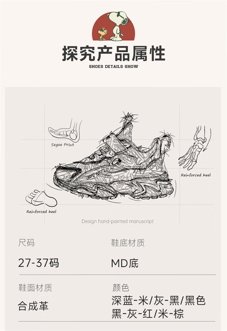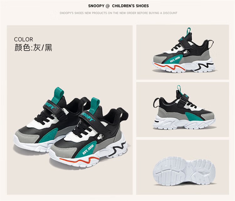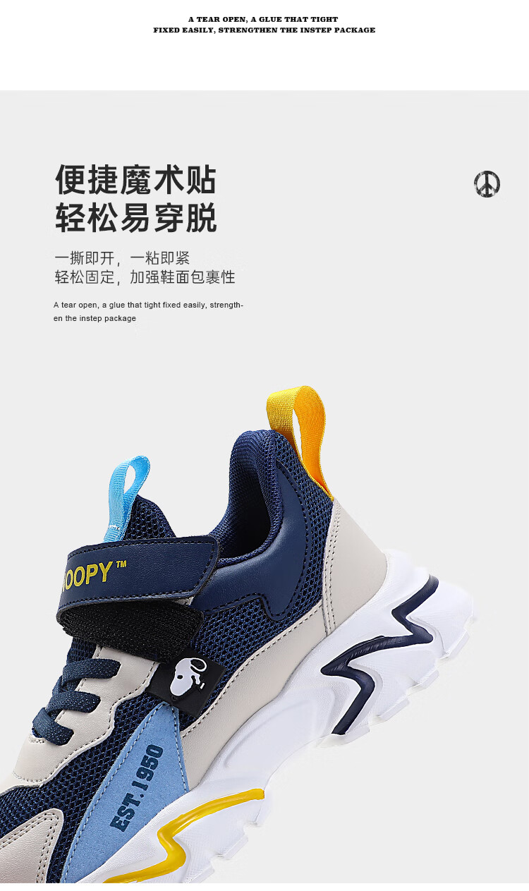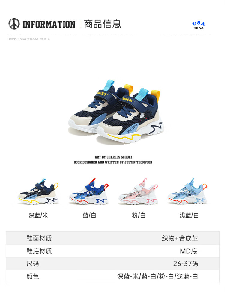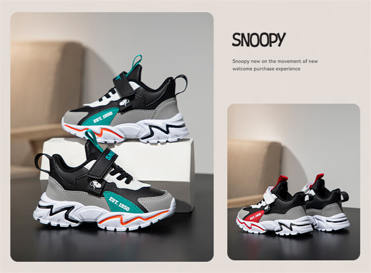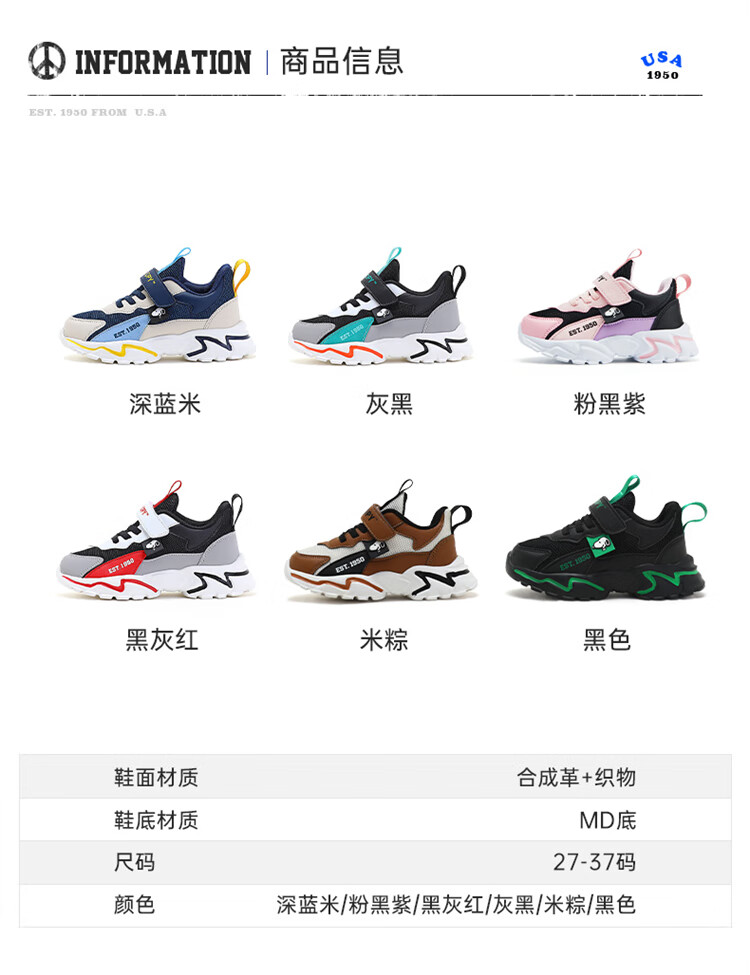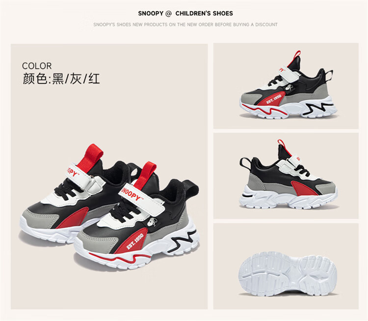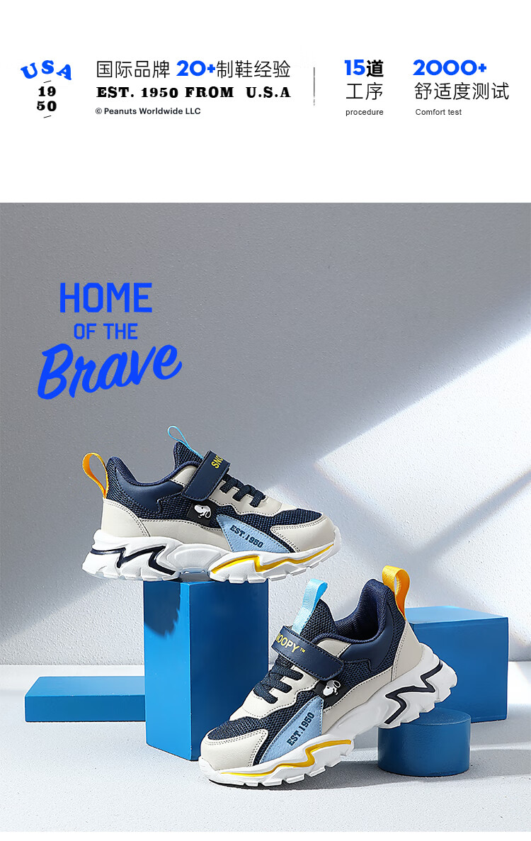 SNOOPY史努比童鞋男童运动鞋冬季短绒加棉跑步鞋保暖棉鞋3933A深蓝米36