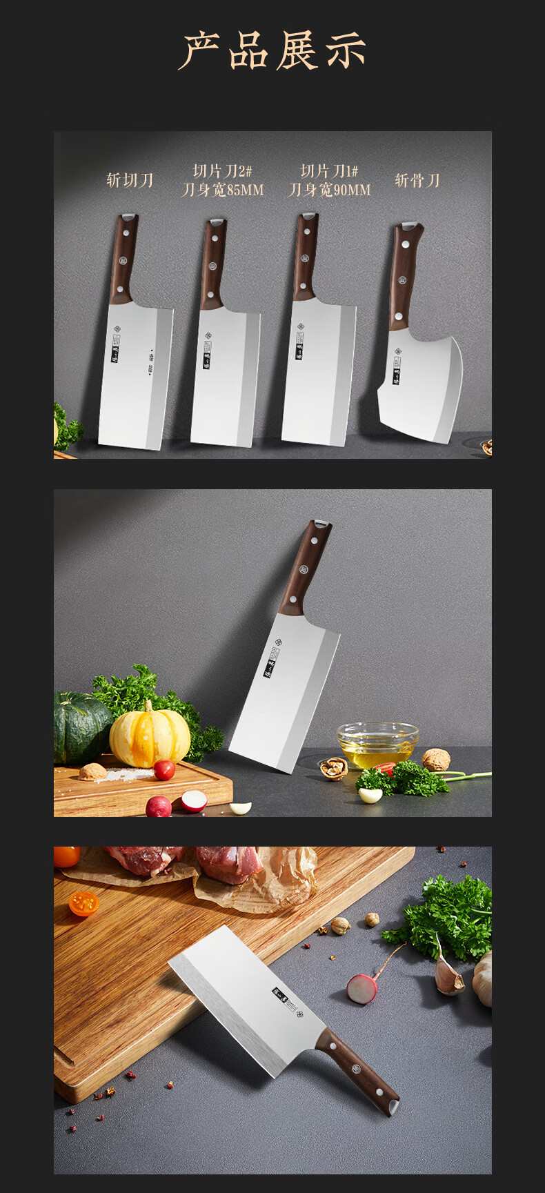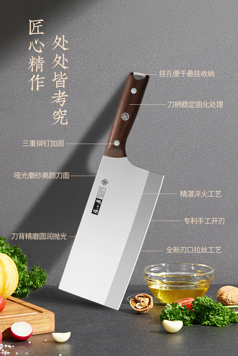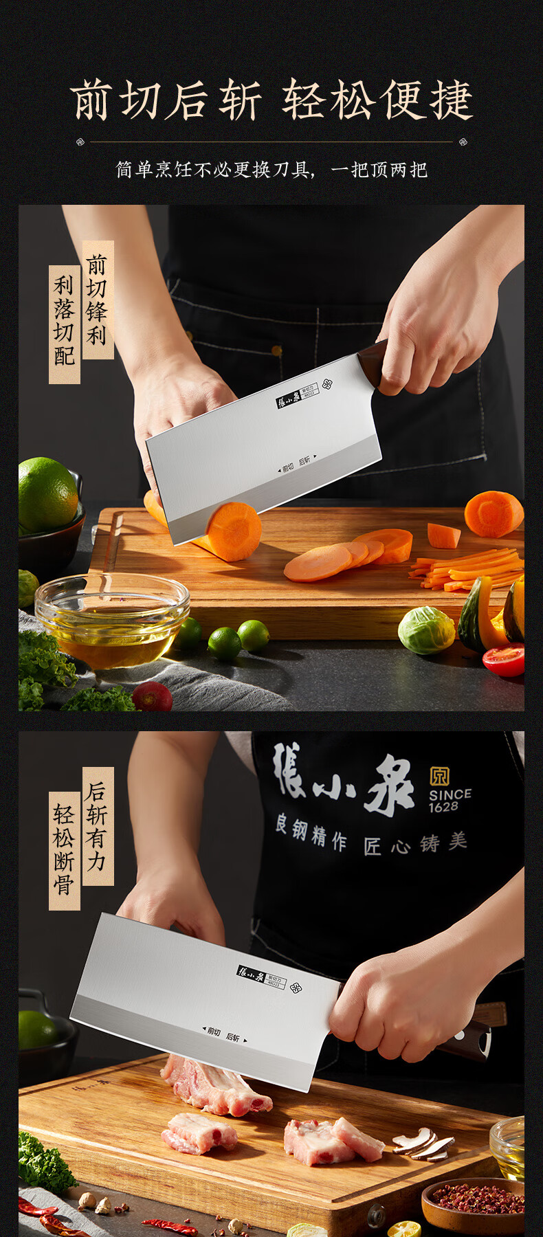 张小泉古韵·匠作系列不锈钢刀具 厨房切菜刀具 菜刀 切片刀1# D100241