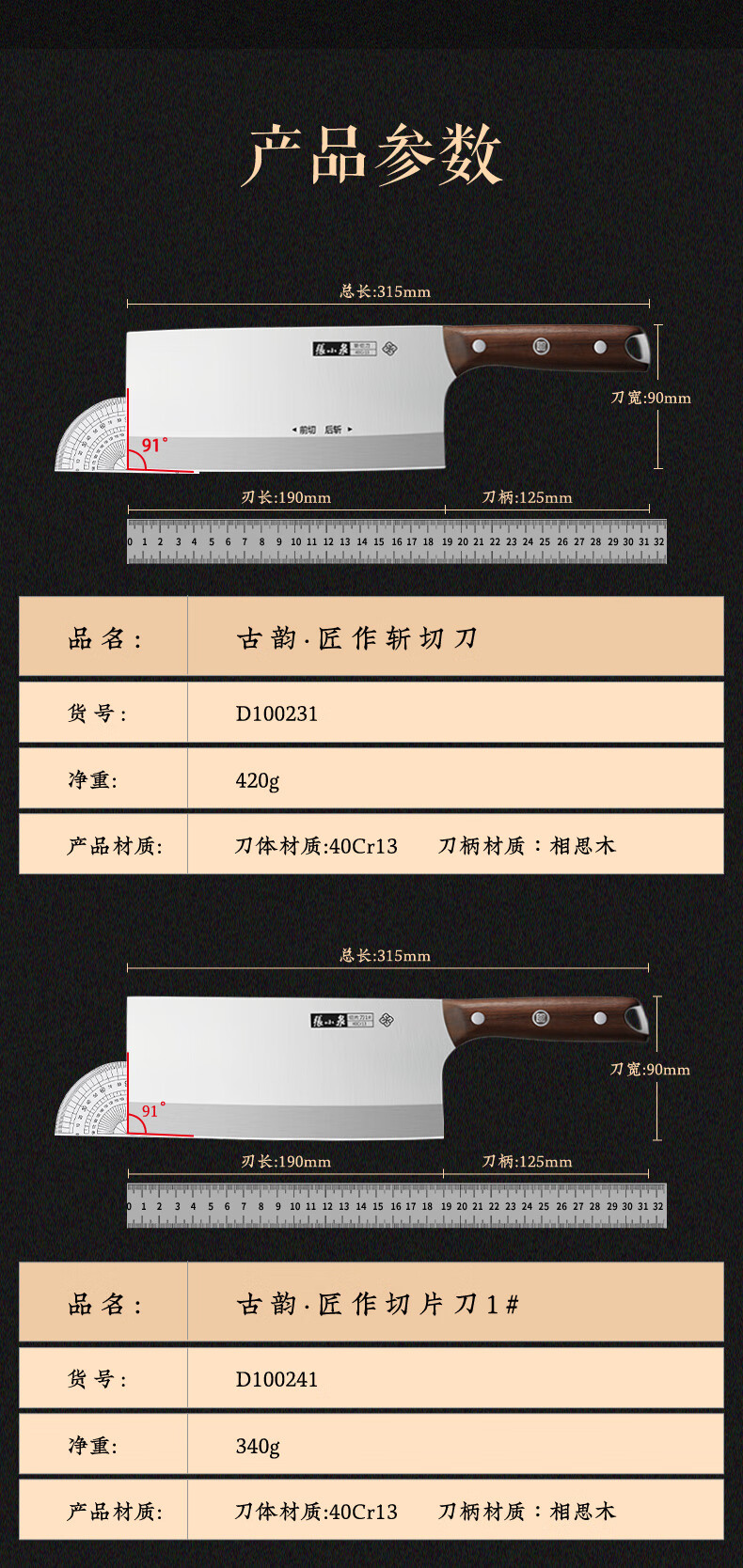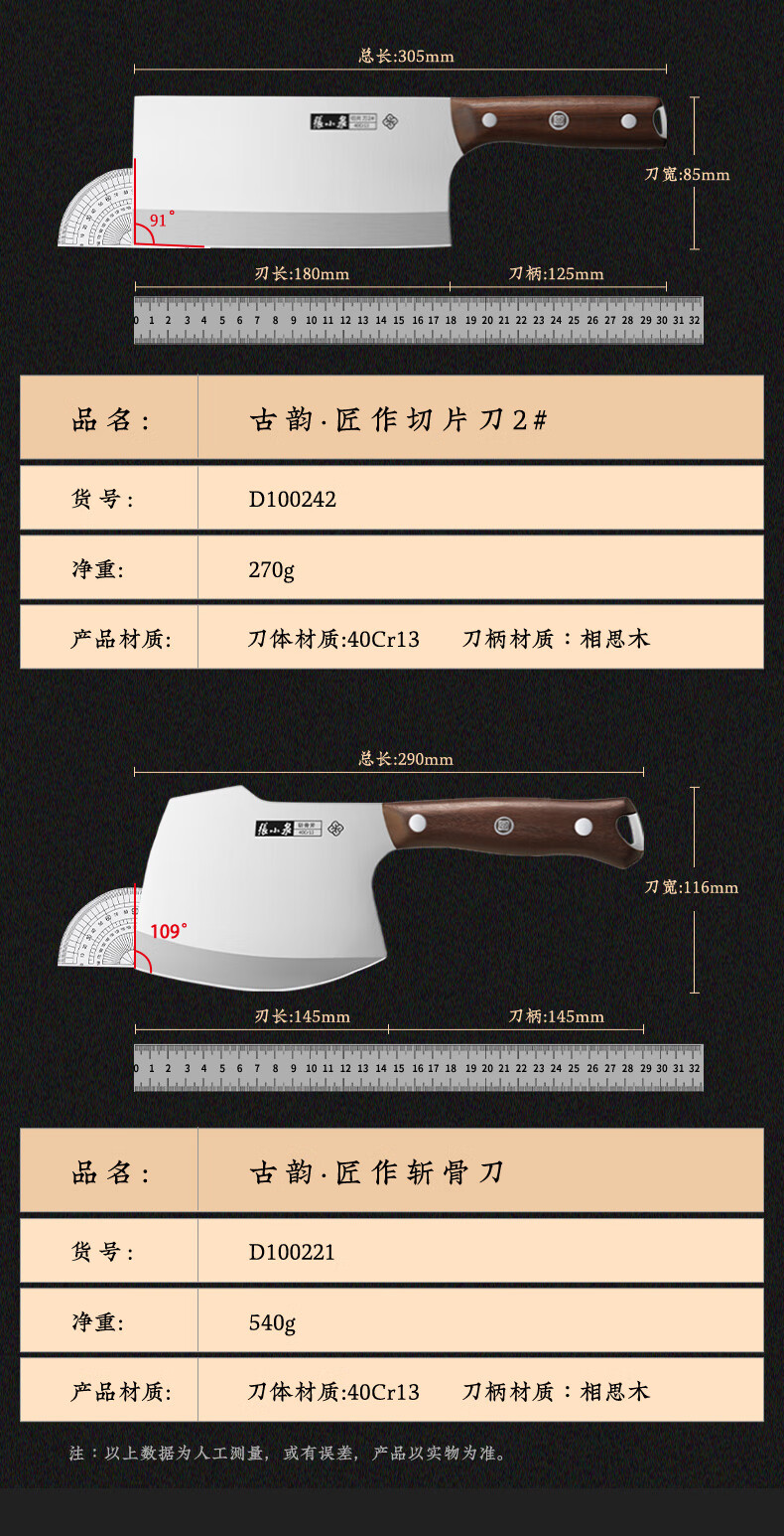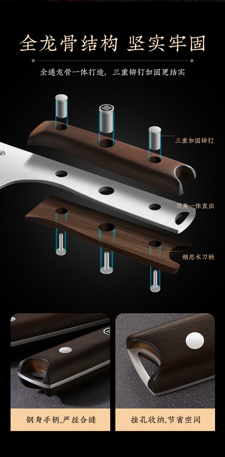张小泉古韵·匠作系列不锈钢刀具 厨房切菜刀具 菜刀 切片刀1# D100241