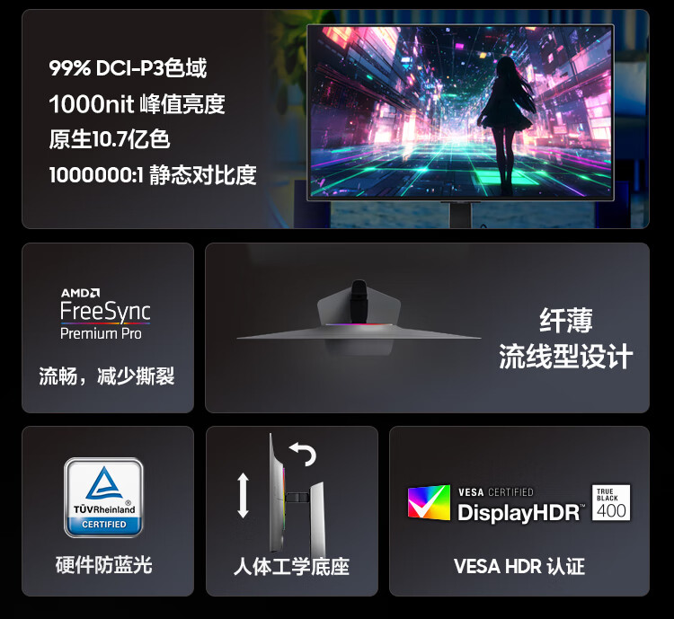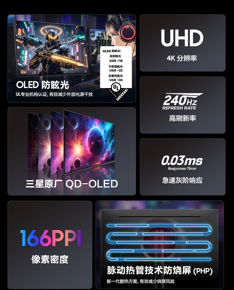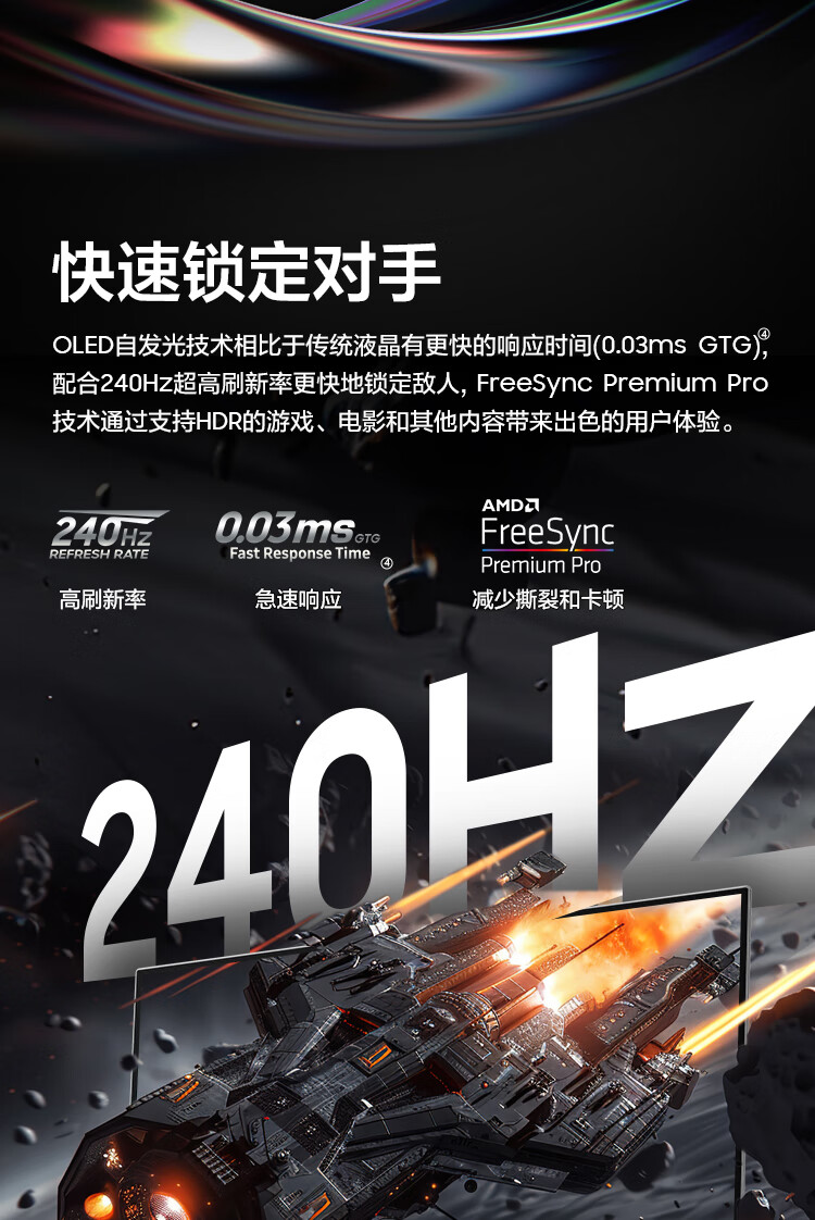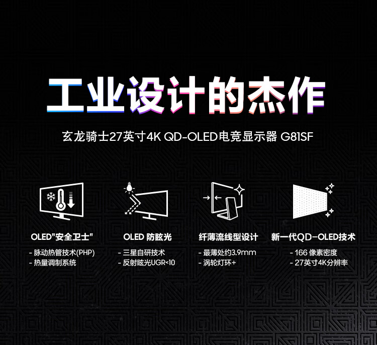 三星(SAMSUNG)27英寸 G81SF QD-OLED 4K 240Hz 0.03ms 防烧屏防眩光超薄设计玄龙骑士 电竞显示器LS27FG812SCXXF