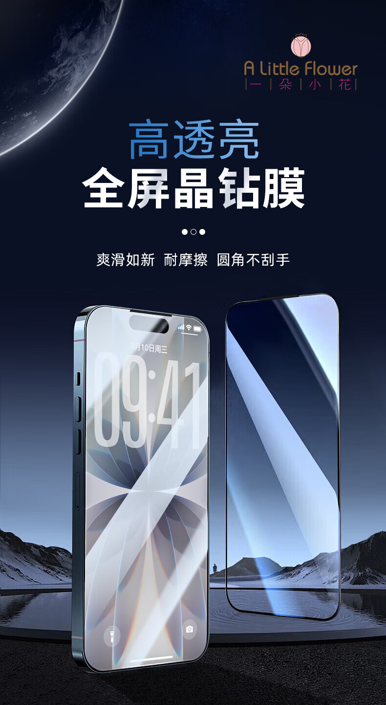ALittleFlower适用iPhone17钢化膜苹果17手机膜高清防尘防指纹全包边贴膜全屏覆盖不顶手机壳保护膜2片