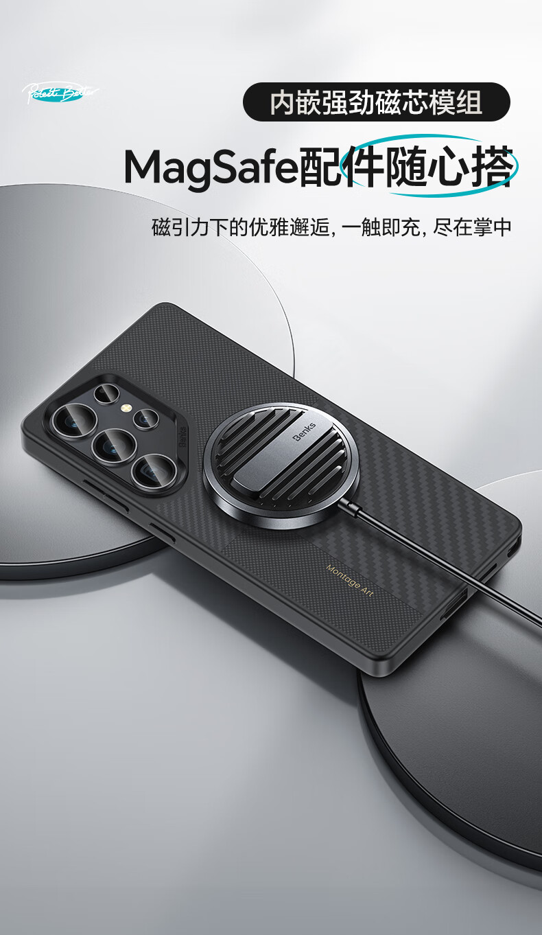 邦克仕(Benks)适用三星 S25 Ultra手机壳【正版凯芙拉】认证苹果磁吸蒙太奇拼接凯夫拉全包防摔高端保护套 黑