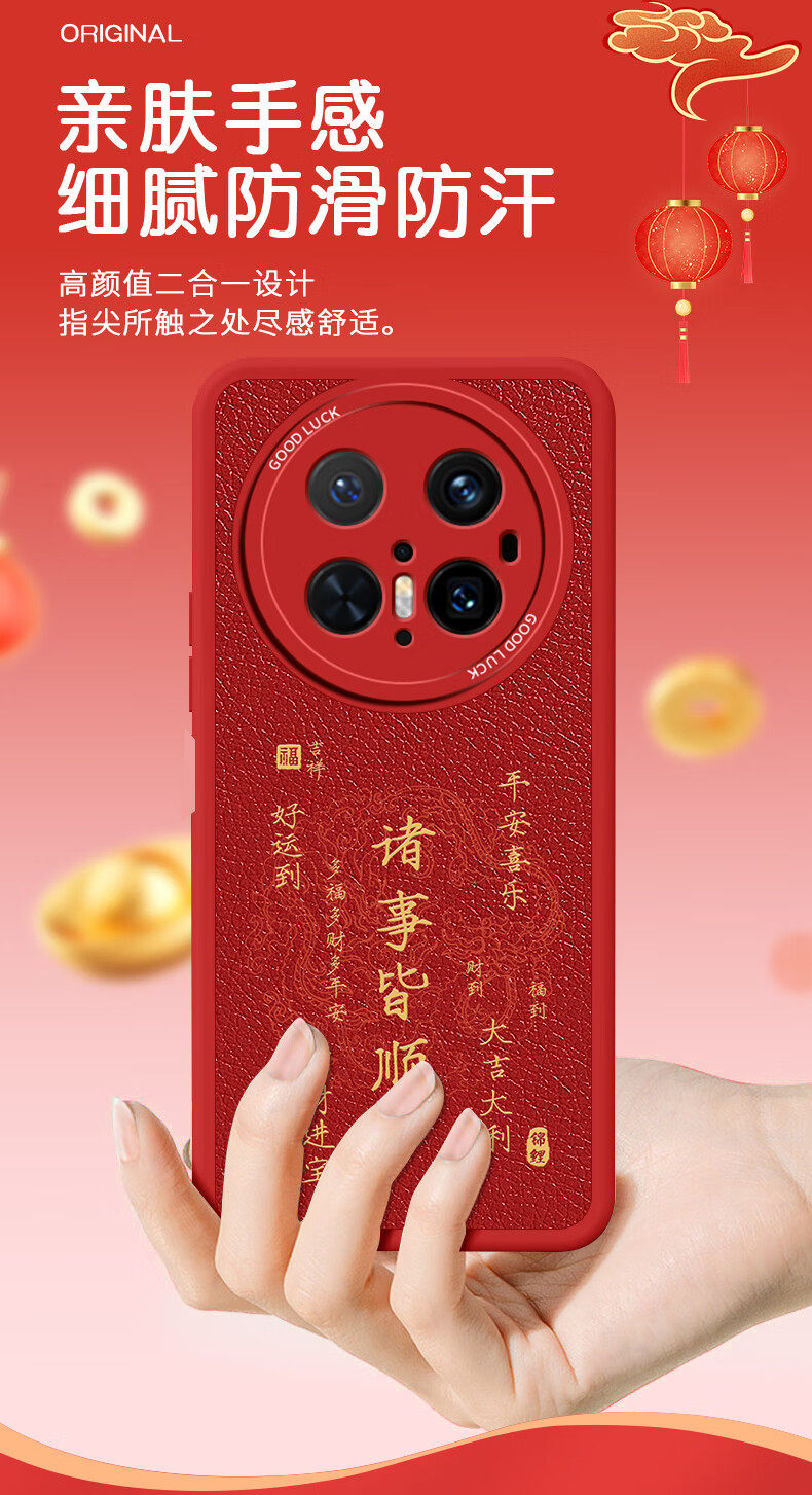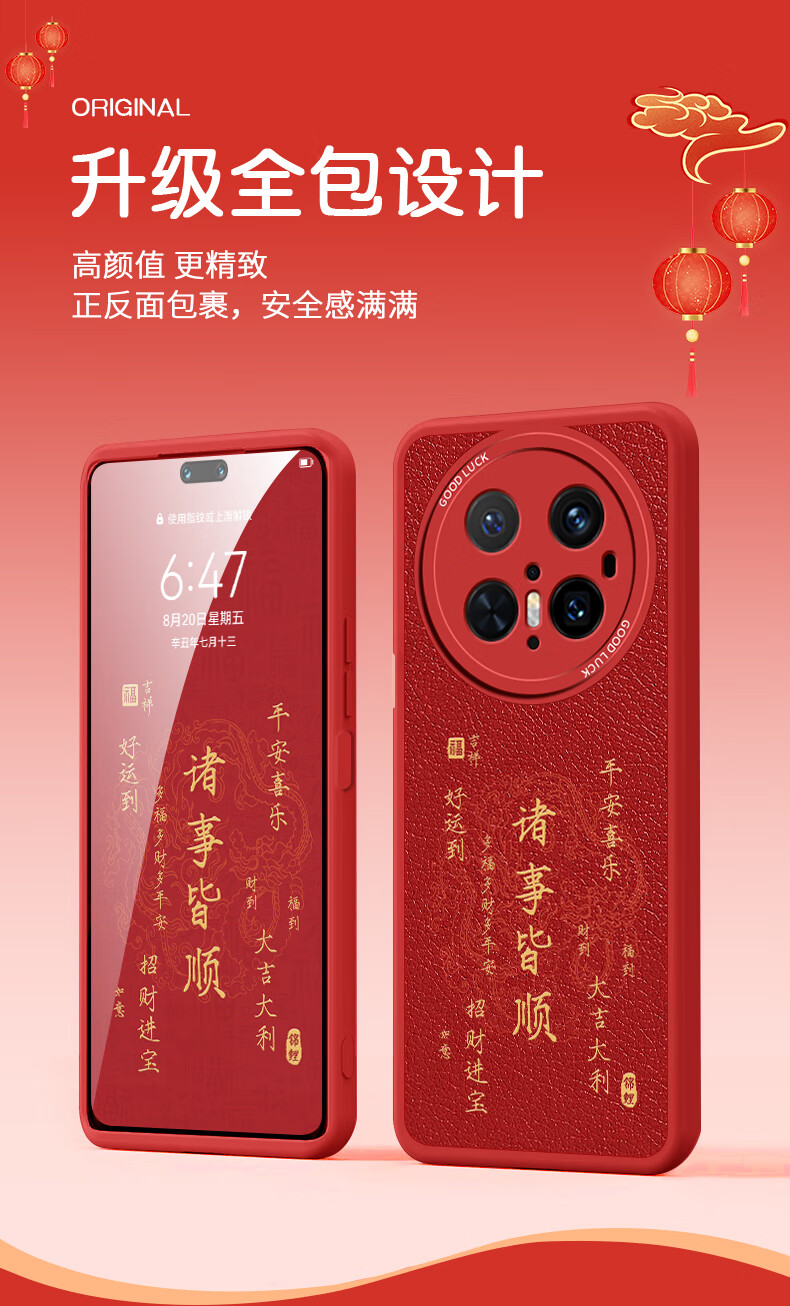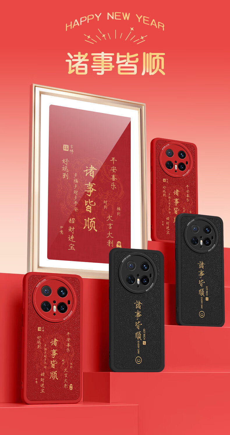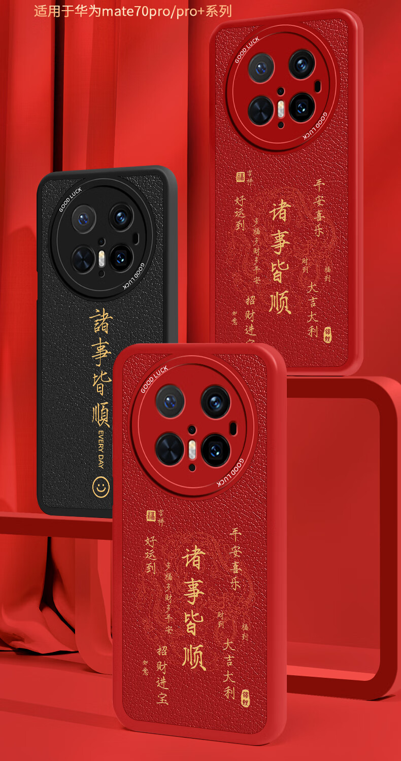 梦想可嘉【国风款】适用华为mate70pro手机壳mate70pro+保护套全包超薄皮纹防摔新年创意国潮男女款 优雅黑