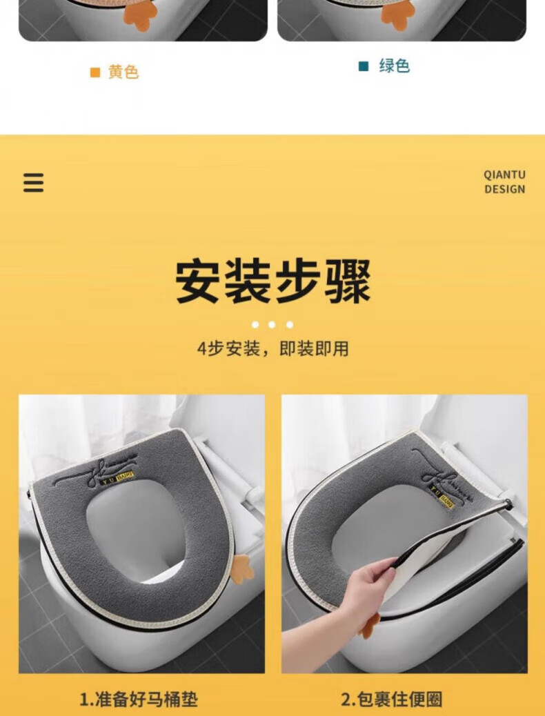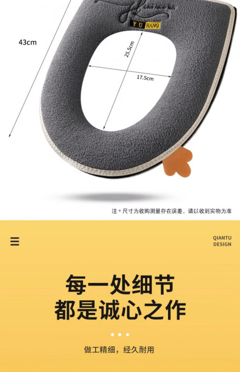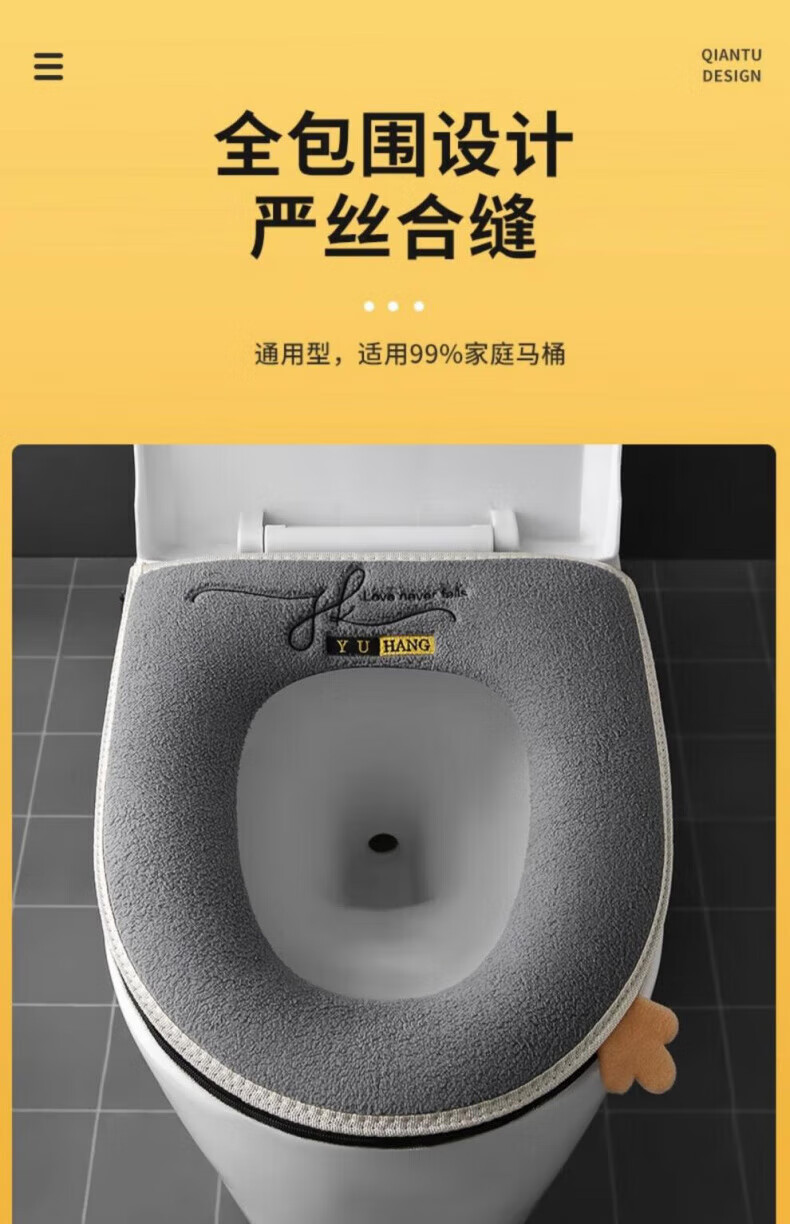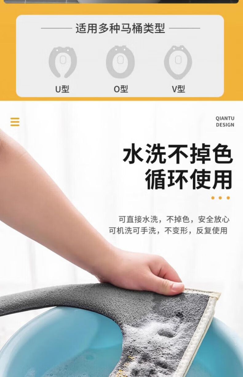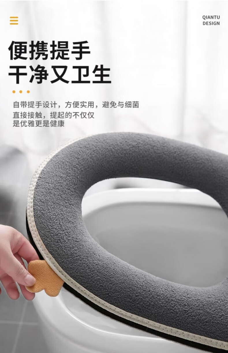 DEATKN德国高端加厚马桶垫2025新款家用四季通用 灰色拉链全包款带提手1个装