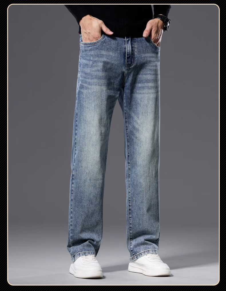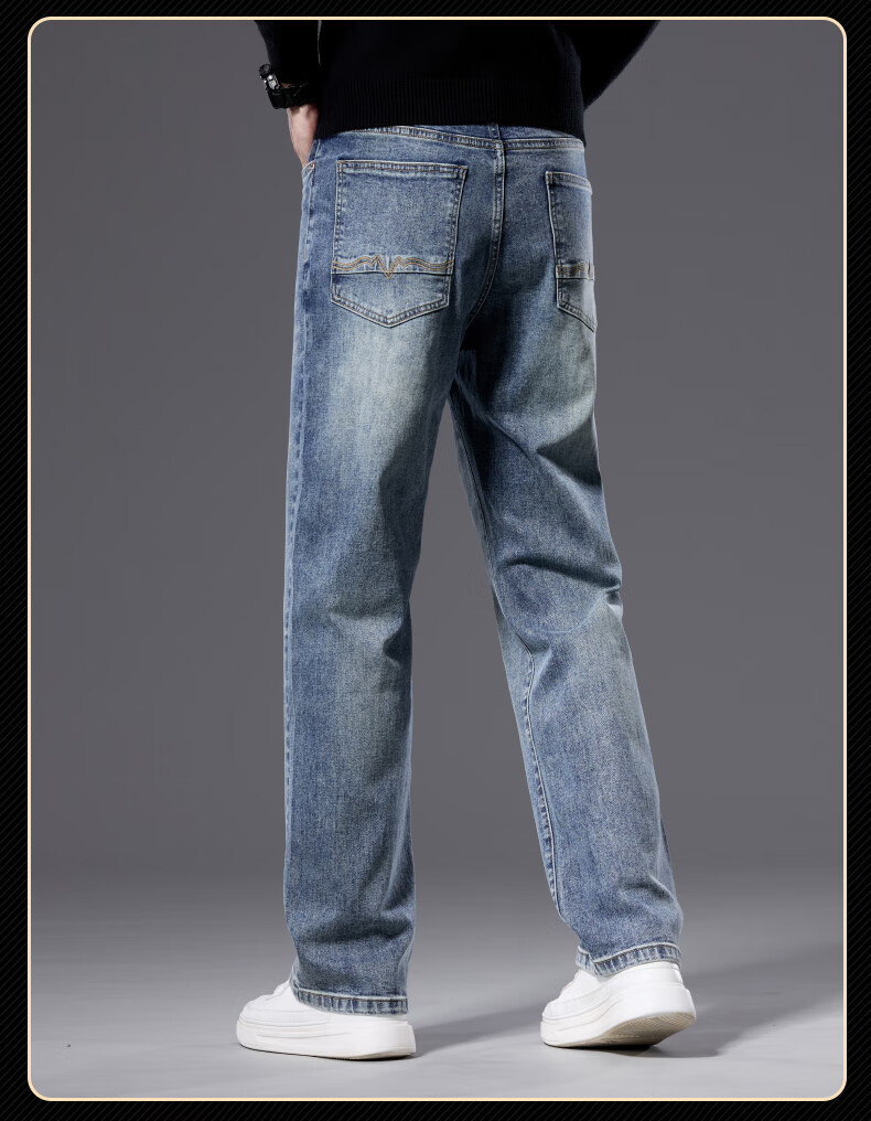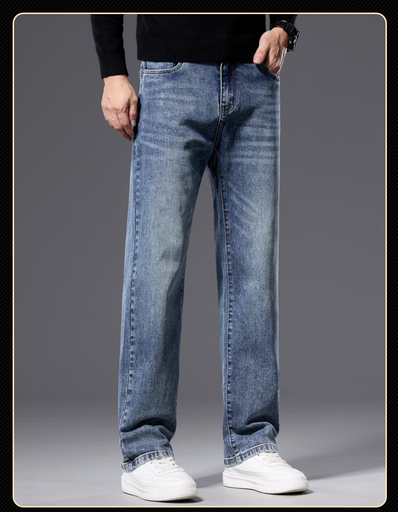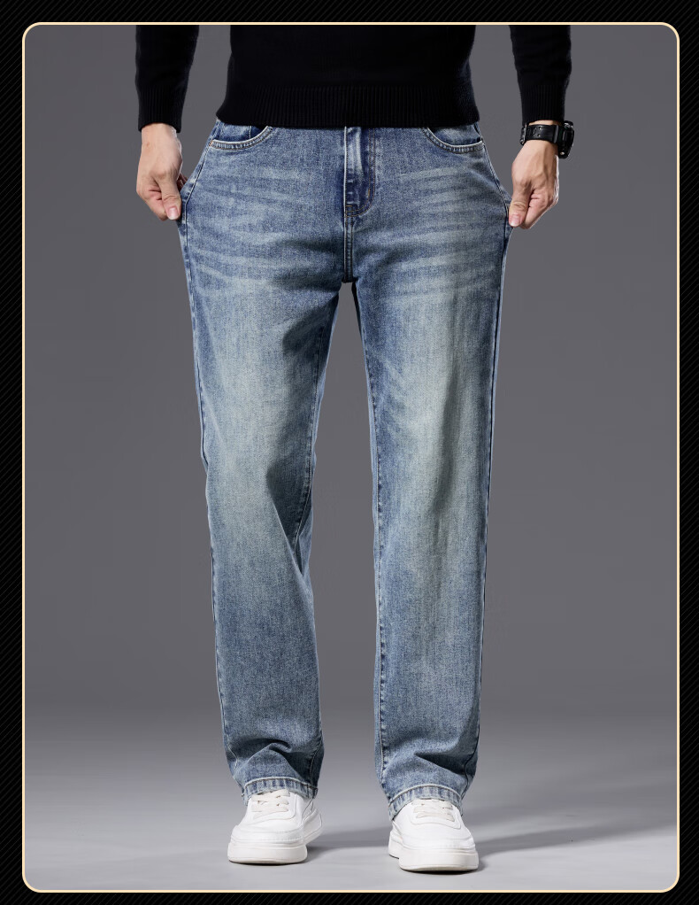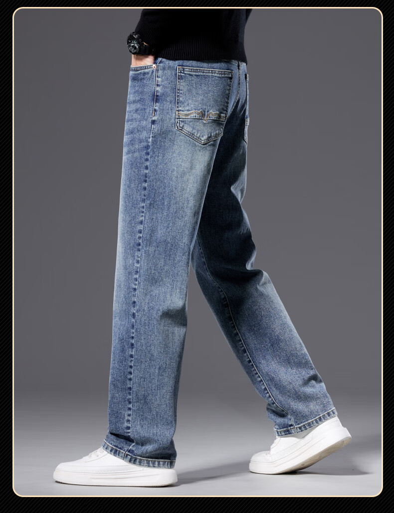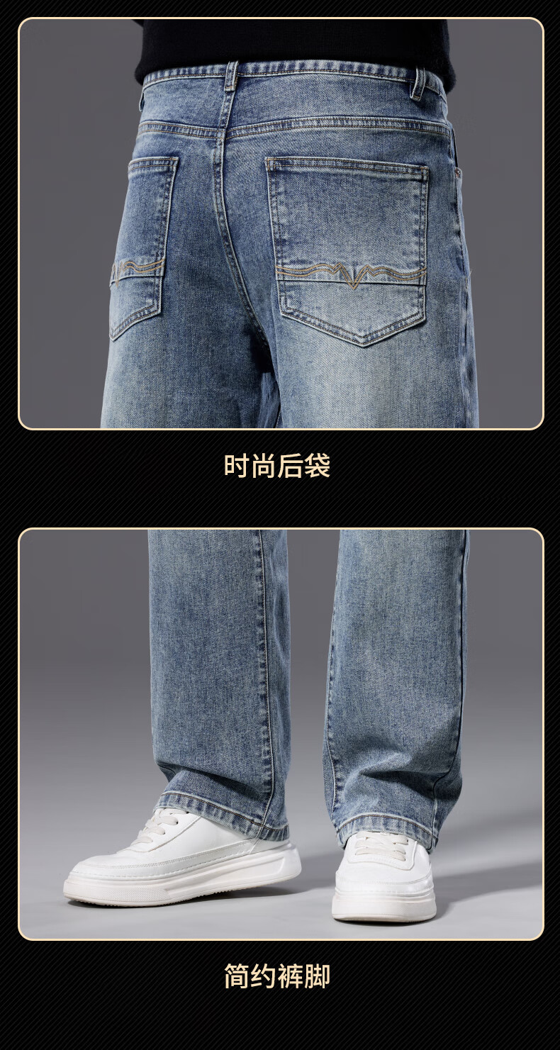 罗蒙【宽松棉弹】牛仔裤男秋休闲百搭潮神水洗直筒长裤子蓝色33