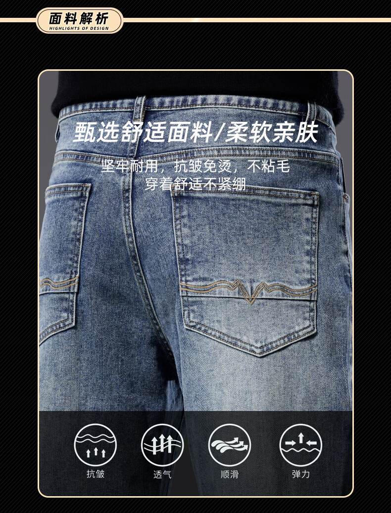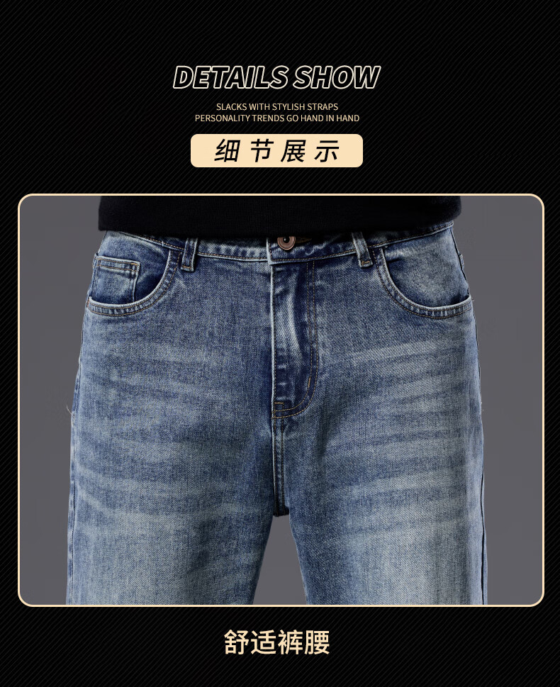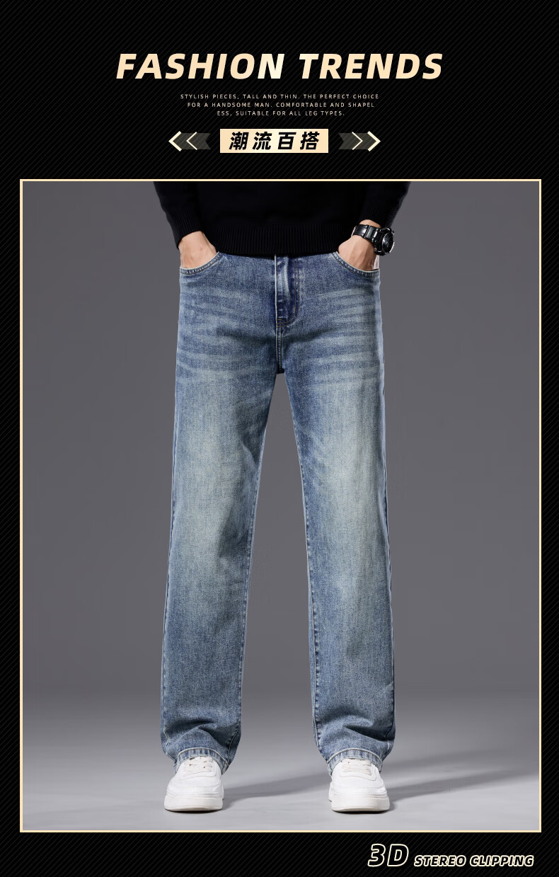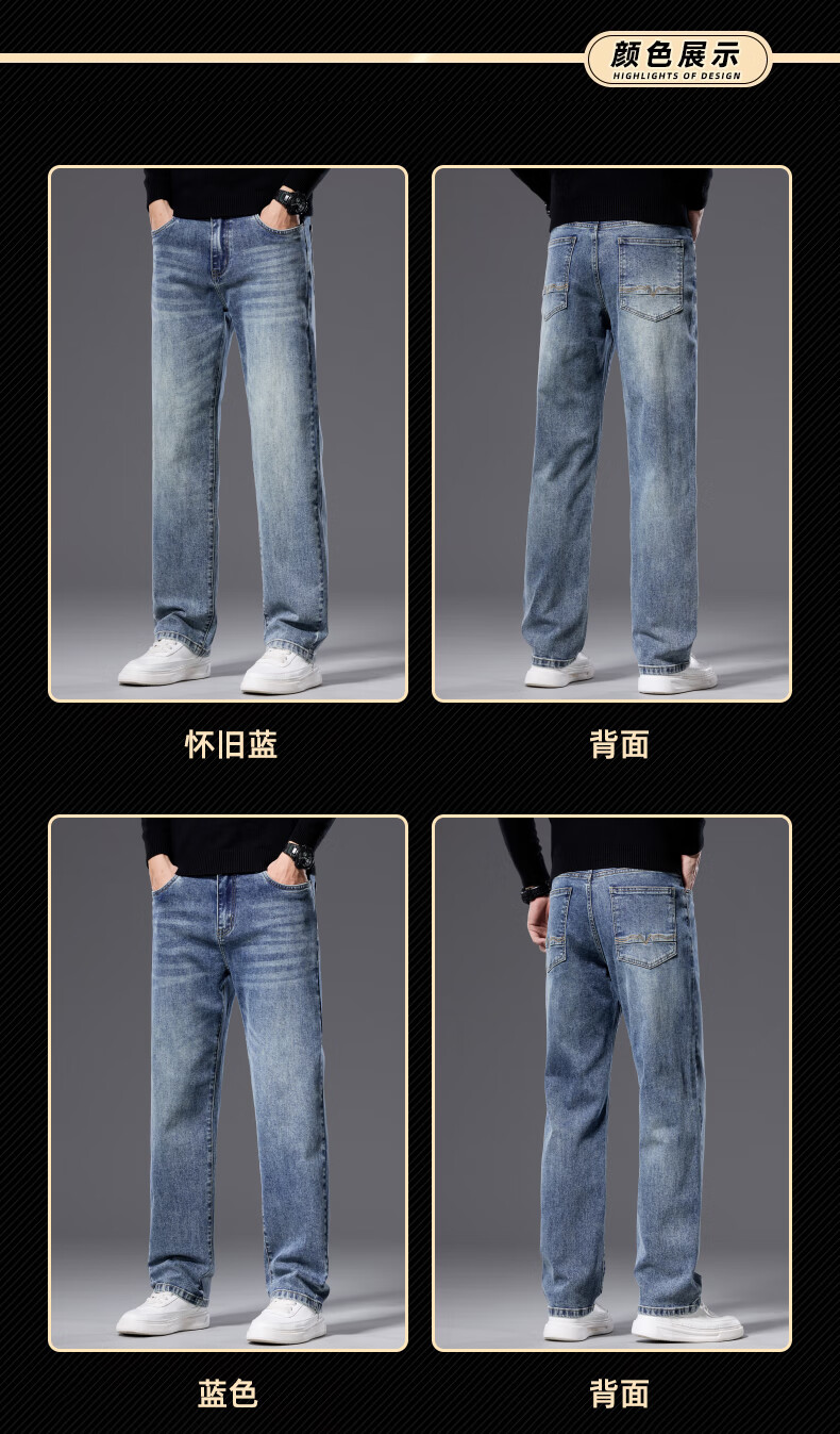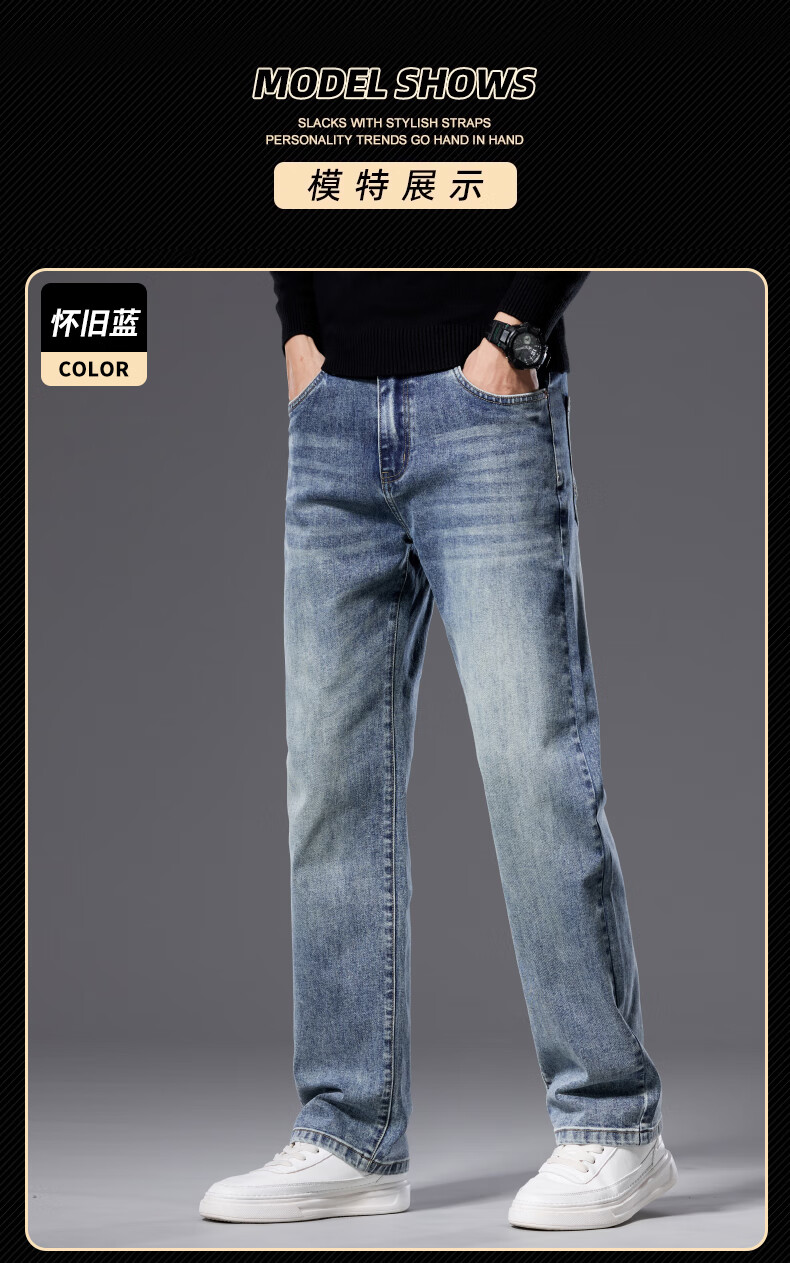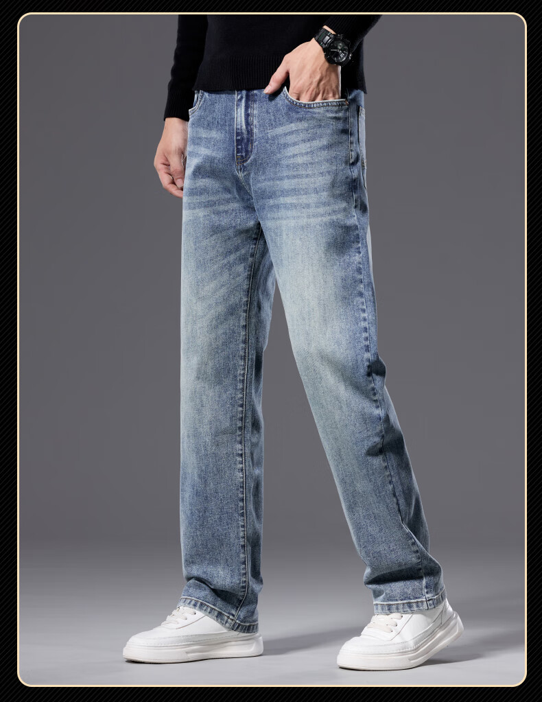 罗蒙【宽松棉弹】牛仔裤男秋休闲百搭潮神水洗直筒长裤子蓝色33
