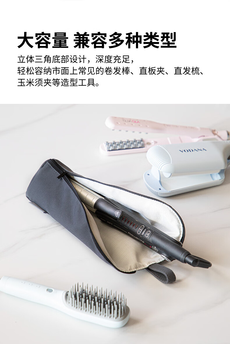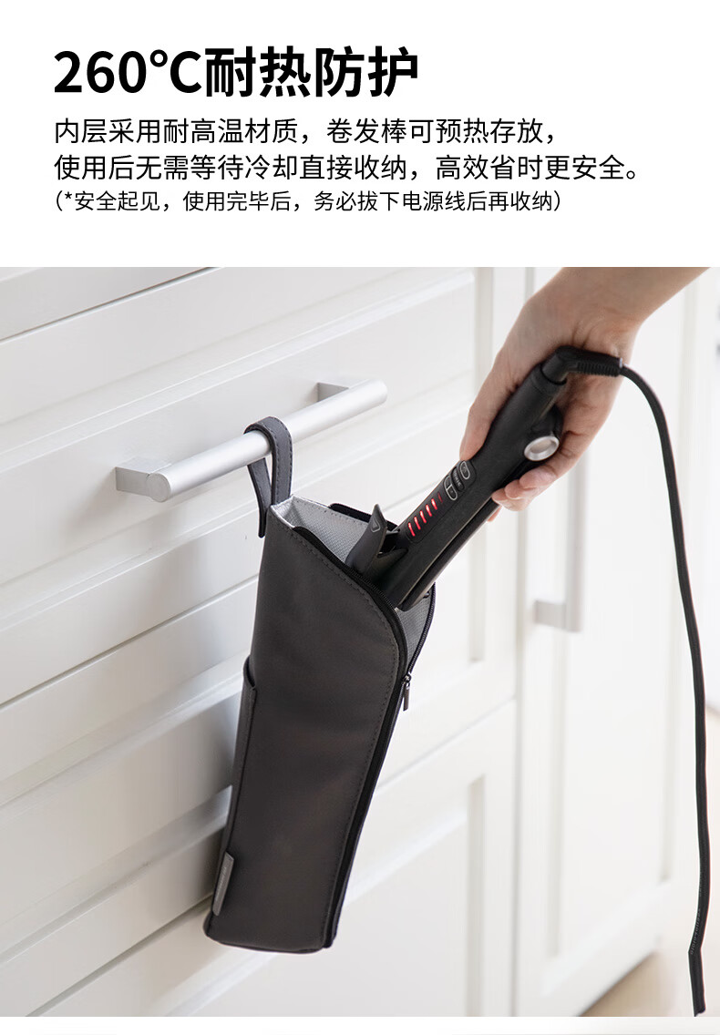 霜山卷发棒收纳袋隔热防烫直板夹收纳包旅游便携电卷套夹板保护套 【耐热260℃】深灰色-长29cm