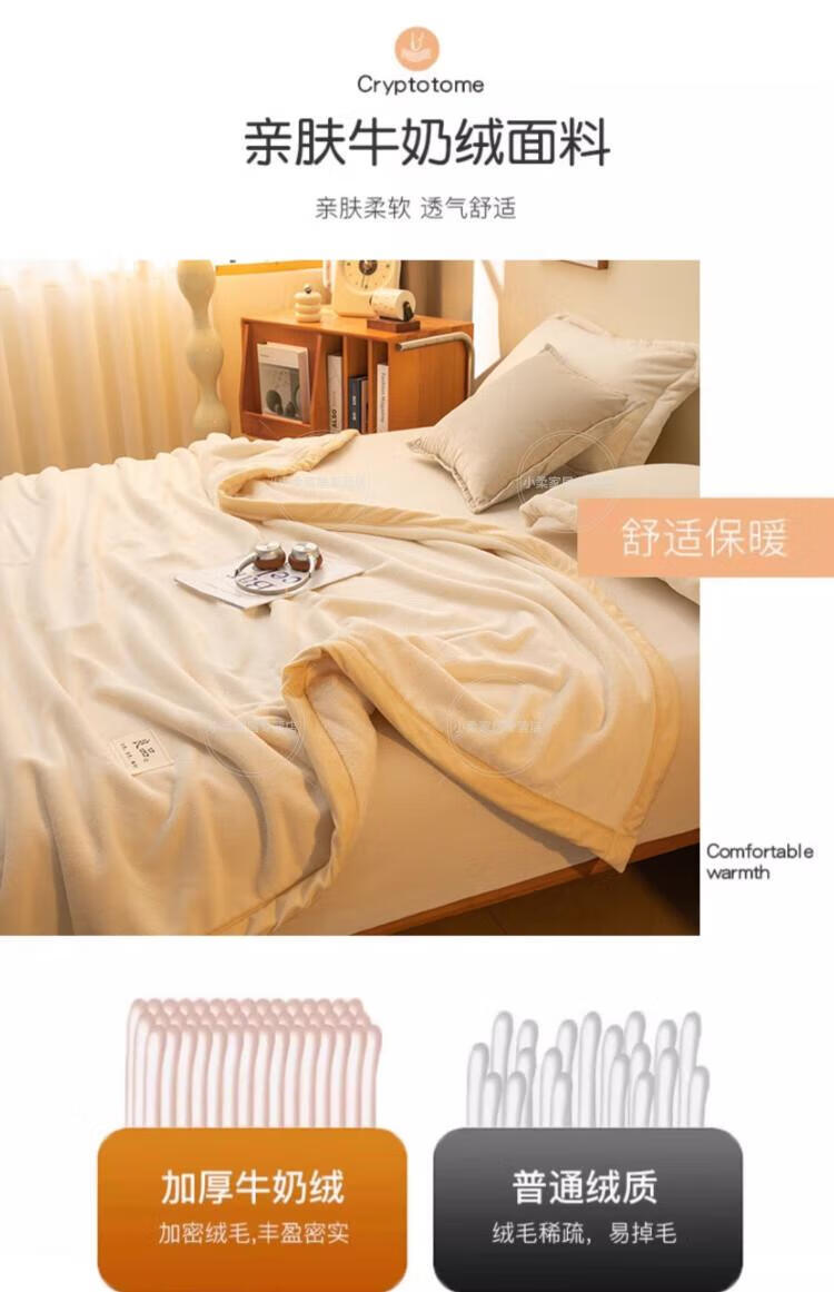 WCZ德国冬季珊瑚绒毛毯办公室午睡盖毯牛奶绒沙发小被子单学生宿舍床 【加厚升级款】米白 120cm*200cm 单人毯【四季可用】