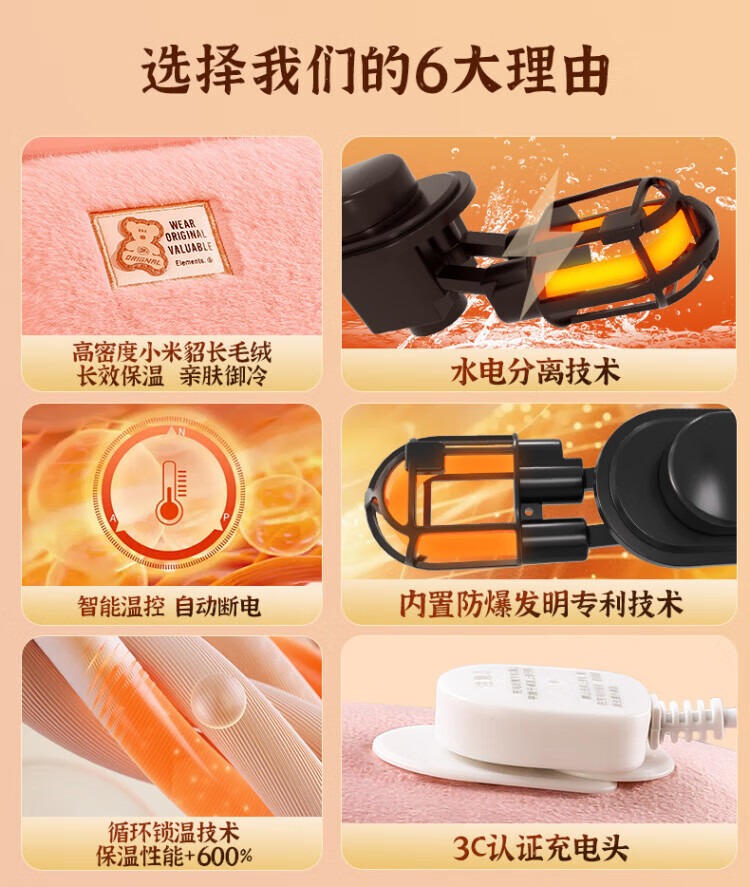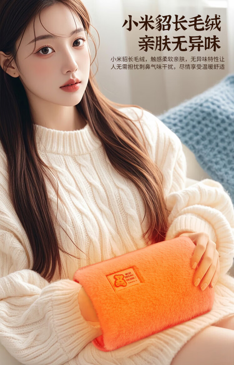 WCZ德国热水袋充电暖水袋电暖宝热宝暖宝宝暖被窝暖脚暖手睡觉神器 绅士灰加厚小米貂毛