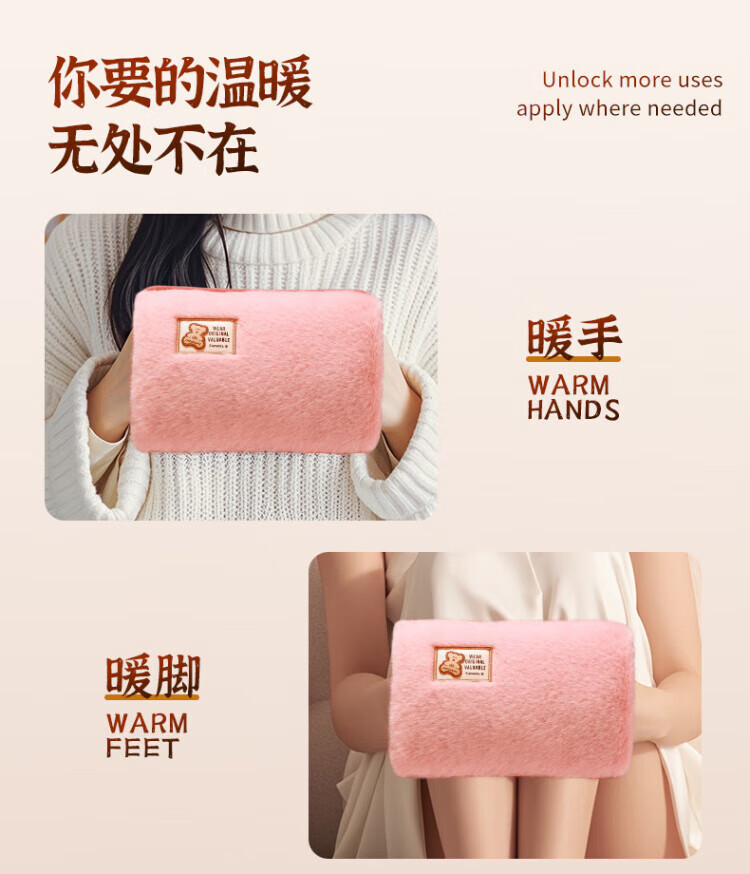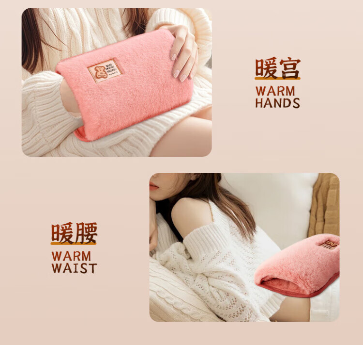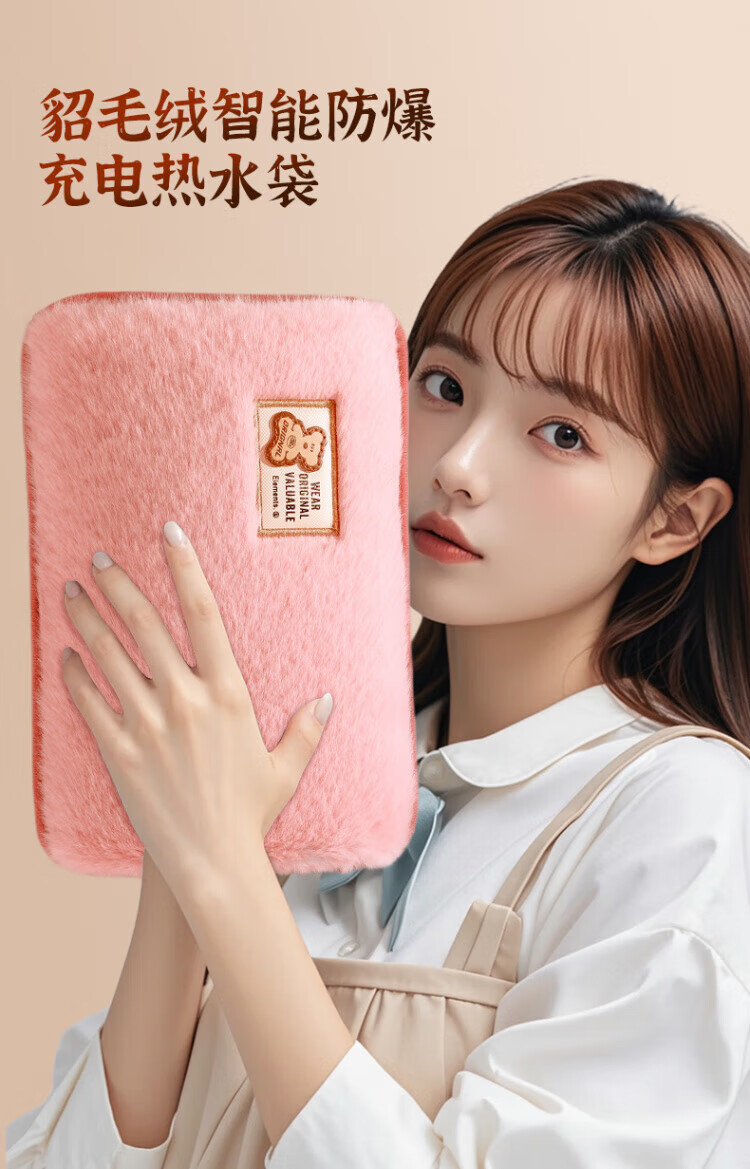 DEATKN德国热水袋充电可爱毛绒暖水袋女生用暖手宝暖宝宝敷肚子热敷 粉色兔兔