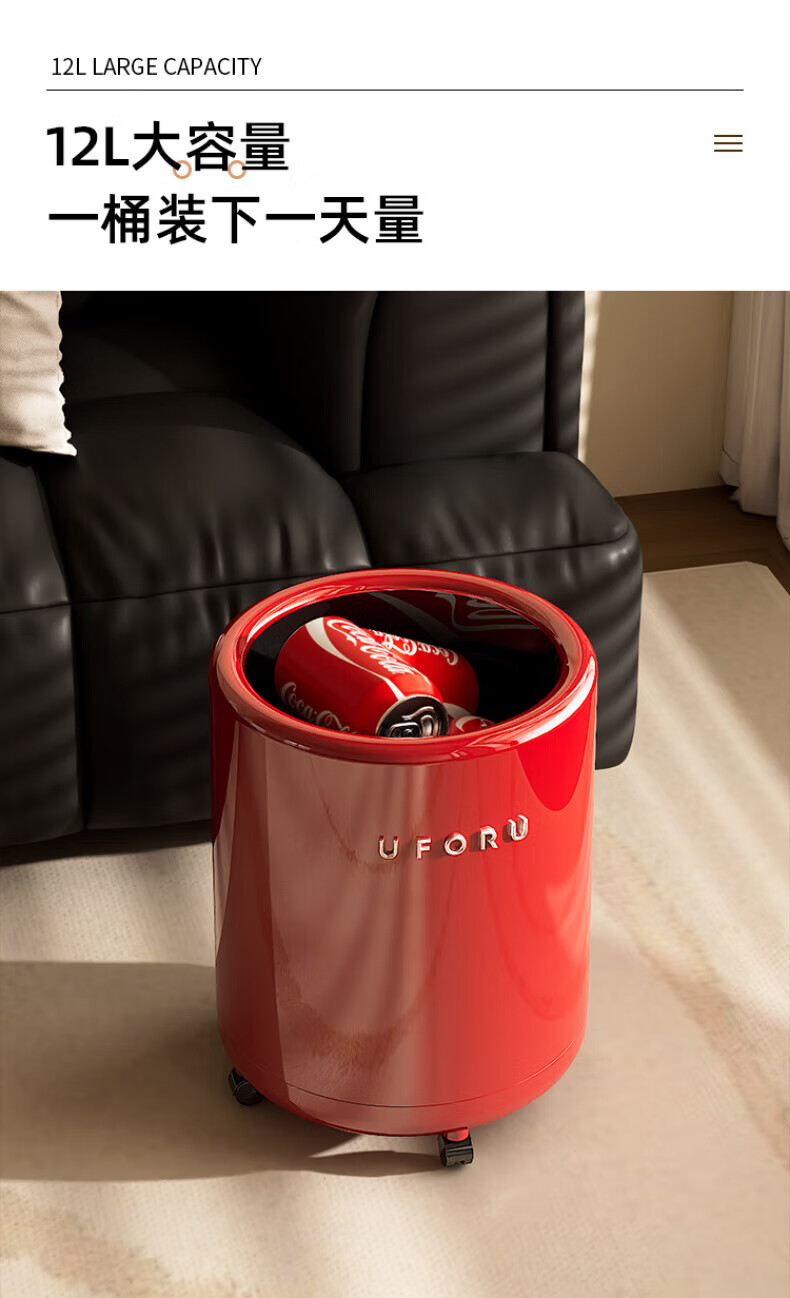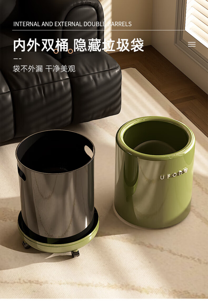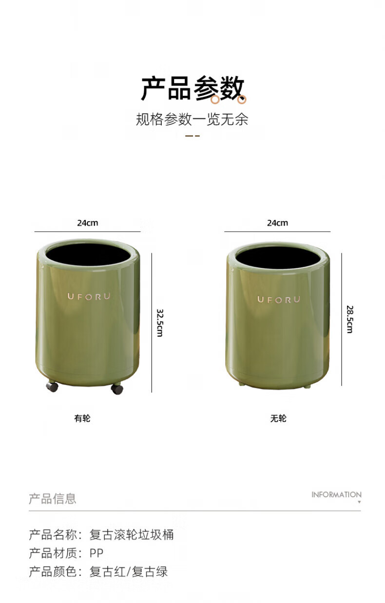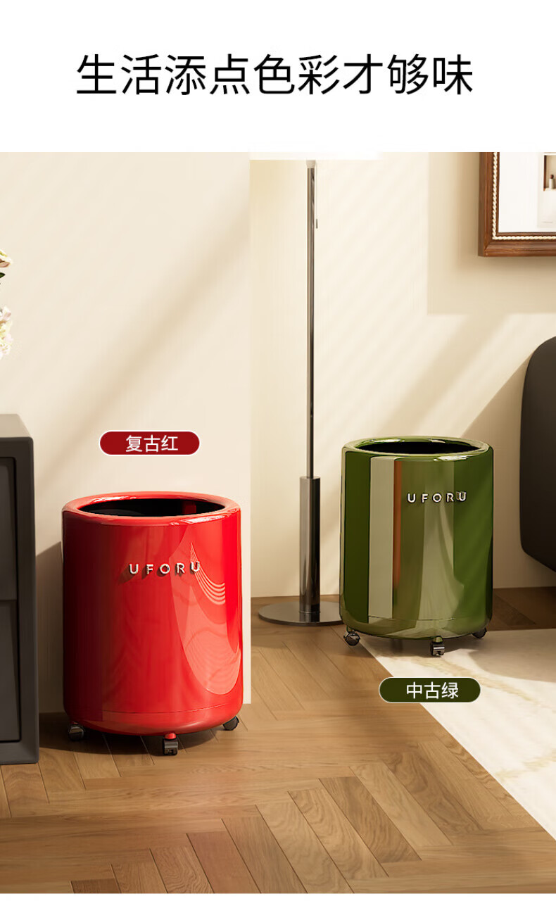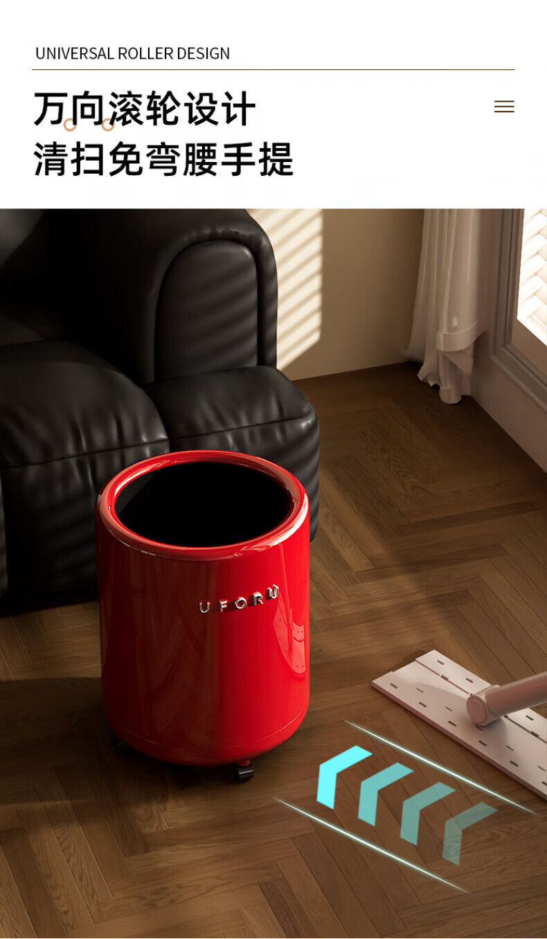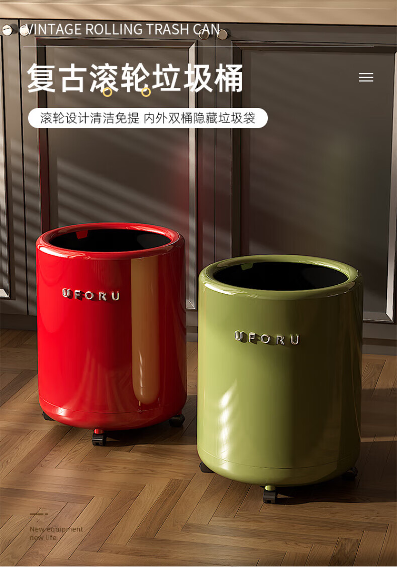DEATKN德国覆古风垃圾桶家用大号大容量卫生桶客厅卧室高颜值免手提袋轮 【覆古红】无轮款:一个装- 12L