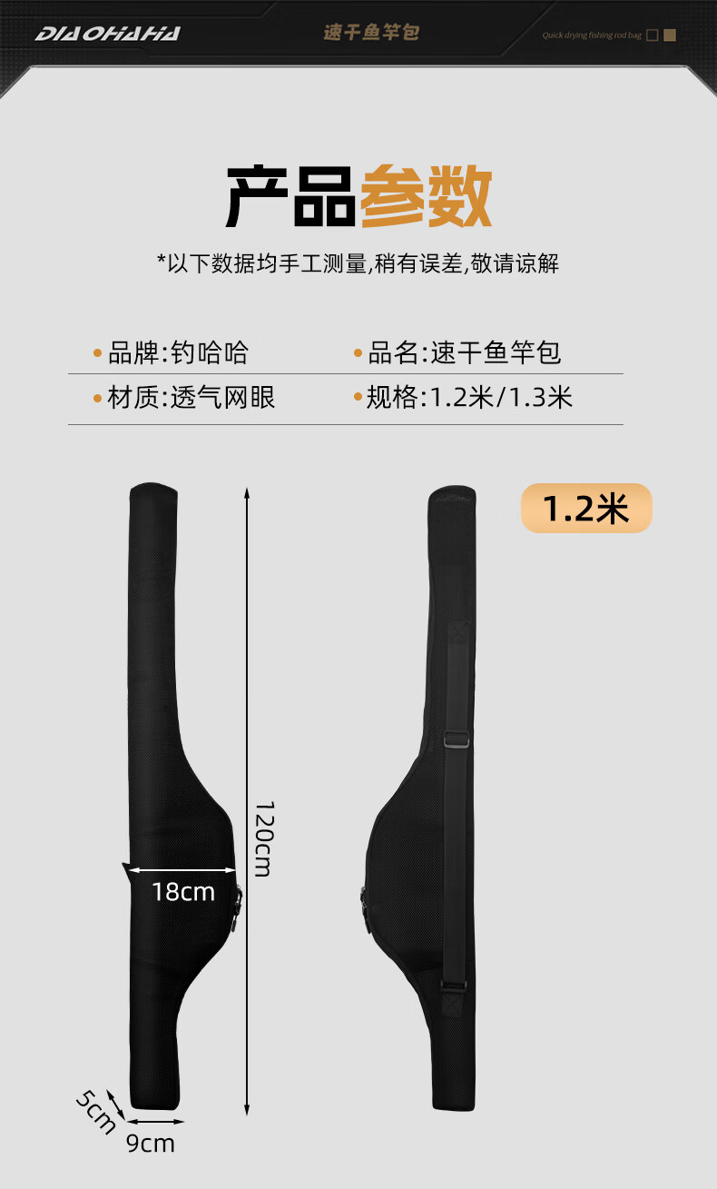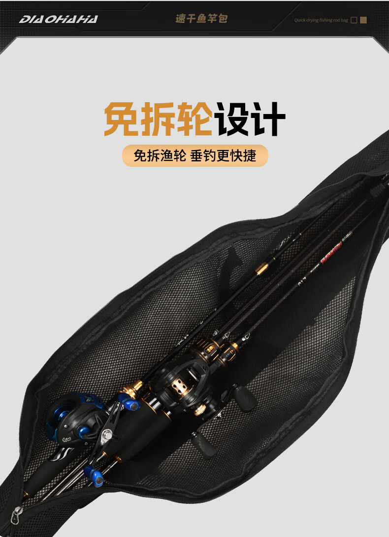 钓哈哈新款速干路亚包大肚包鱼竿渔轮收纳户外垂钓用品收纳包纺车轮免拆 【速干透气】1.3m路亚包