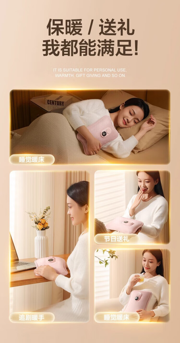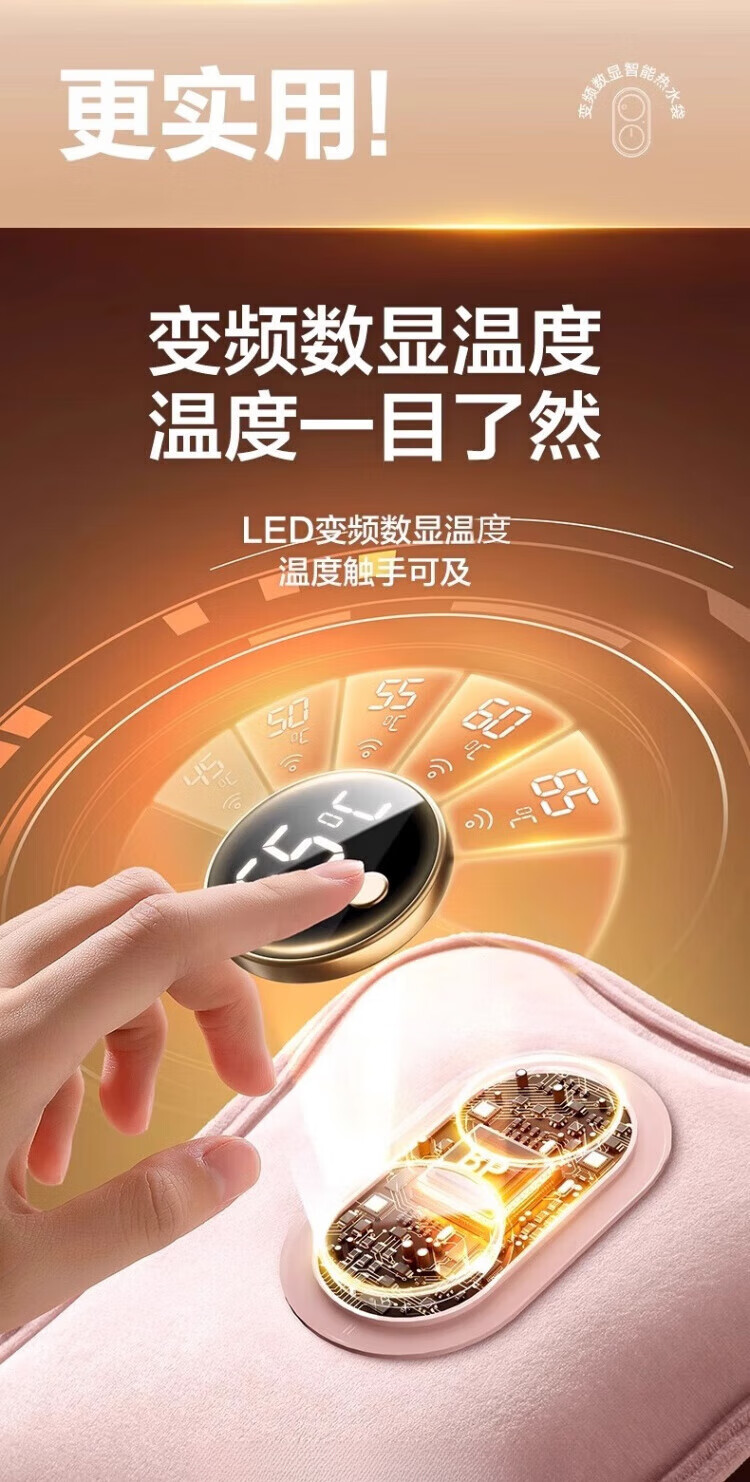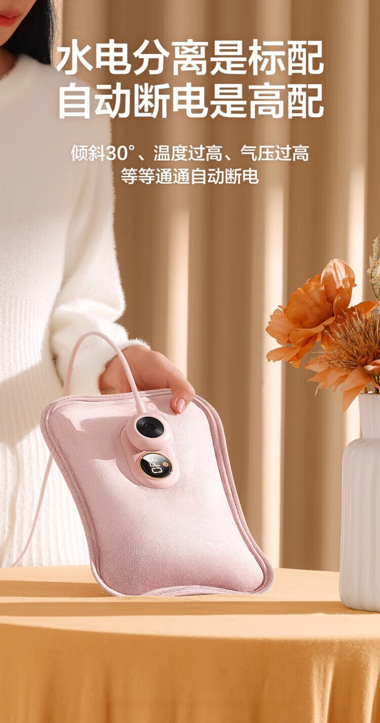 WCZ德国热水袋充电式防爆电暖水袋暖手女暖宝宝敷肚子2025新款 樱花粉【智能数显温控充电器+热水袋】 优质丝绒 水电分离