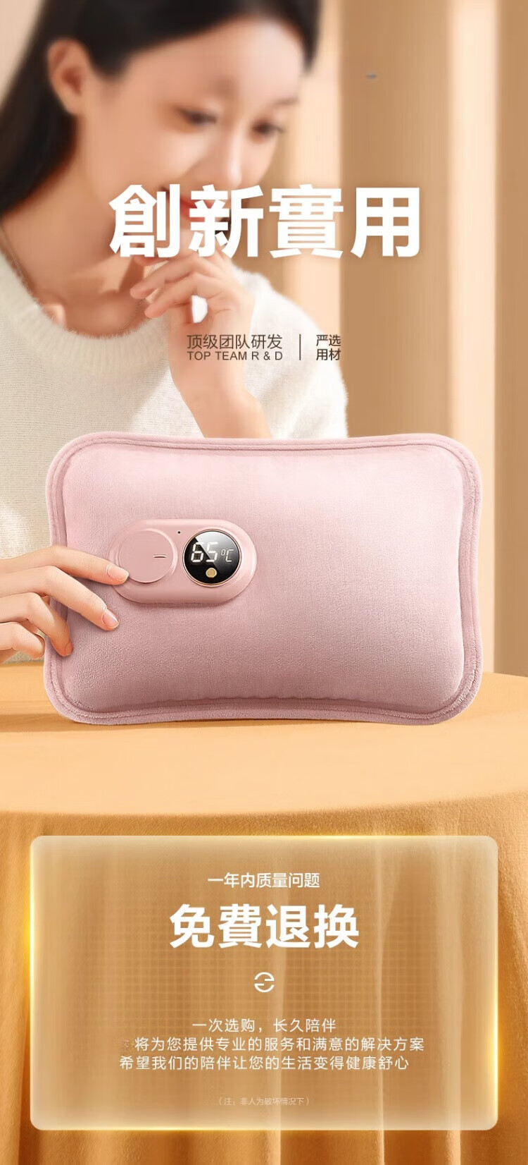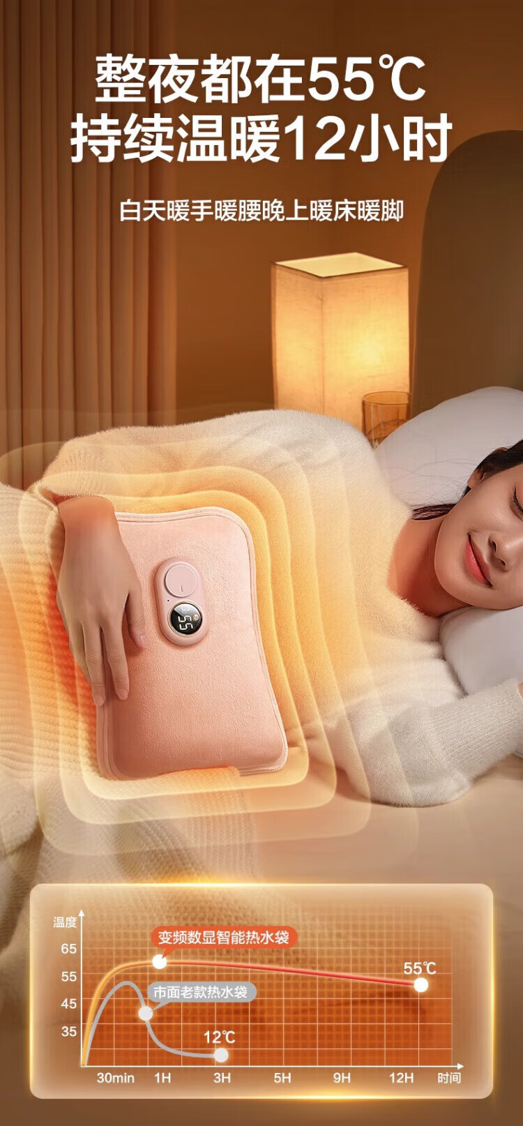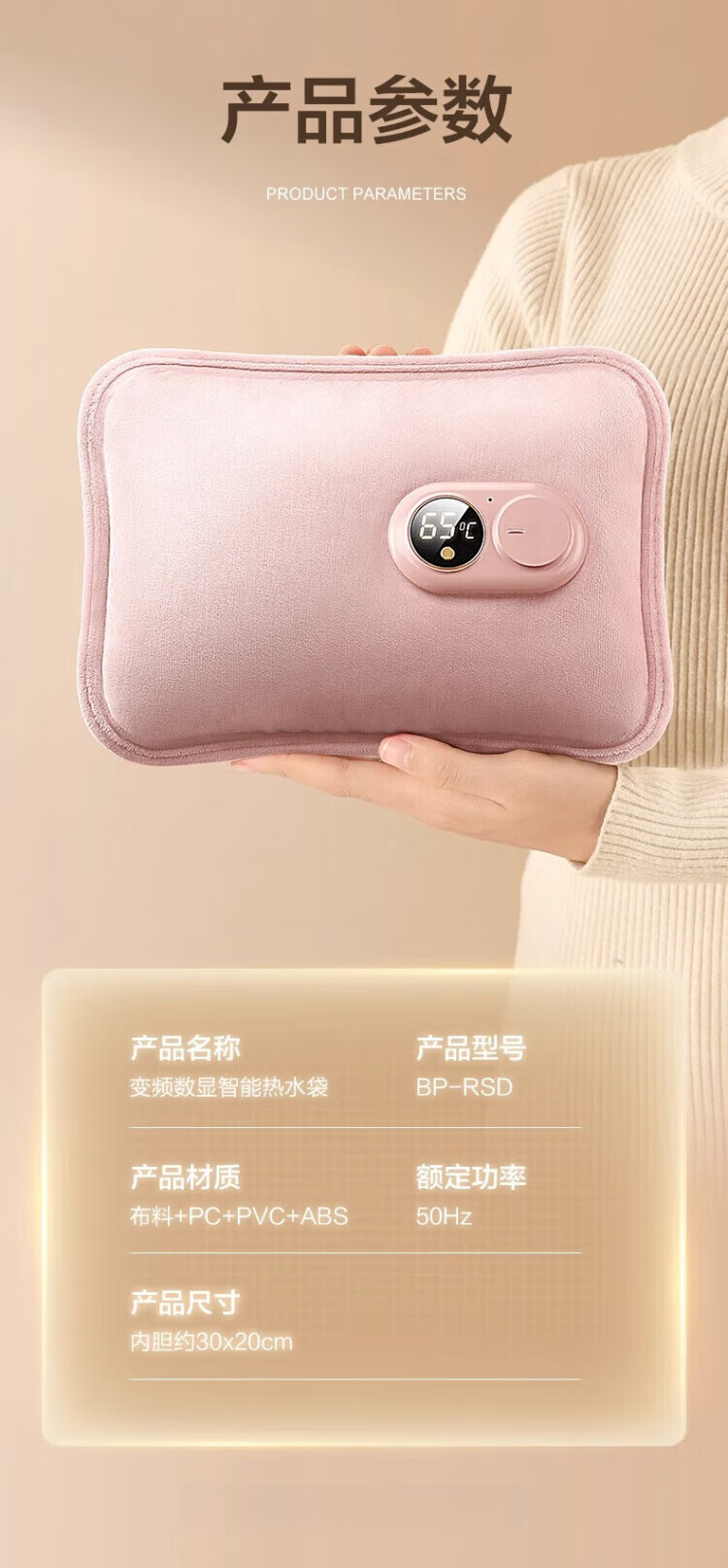 WCZ德国热水袋充电式防爆电暖水袋暖手女暖宝宝敷肚子2025新款 樱花粉【智能数显温控充电器+热水袋】 优质丝绒 水电分离