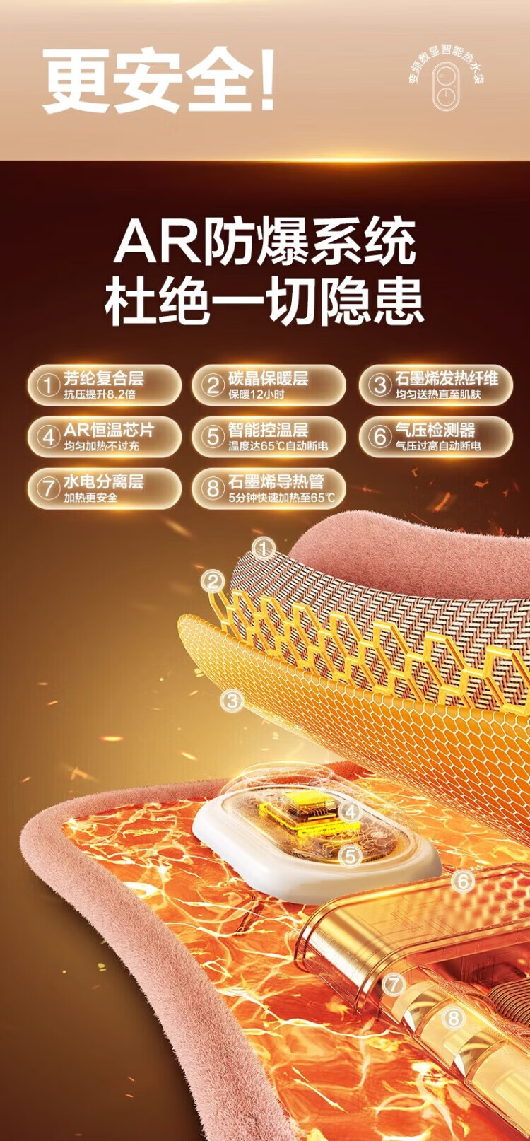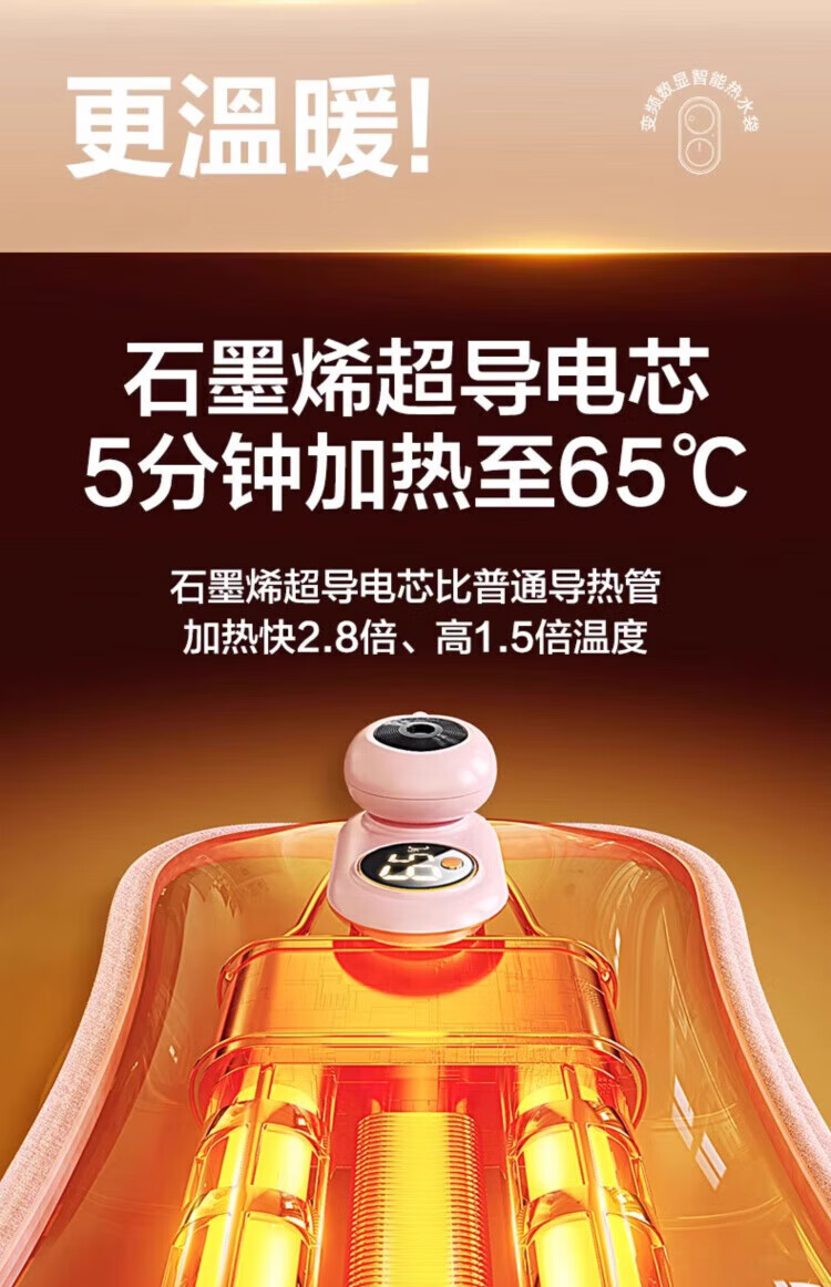 DEATKN德国石墨烯热水袋暖手宝暖水袋暖宝宝充电式无水热敷2025新款防爆 升级款可拆洗【暖洋灰10000mAH】创新束口设计/1S速热/