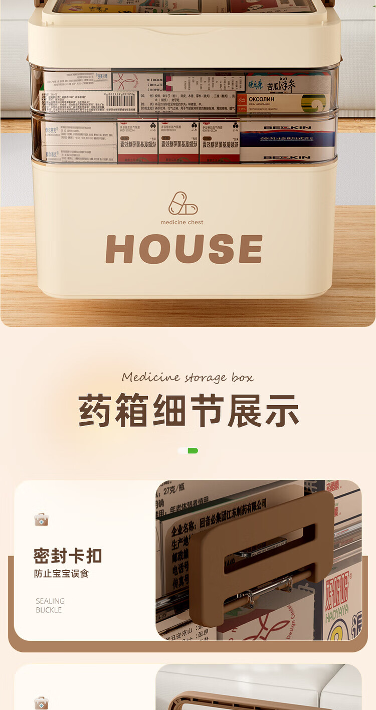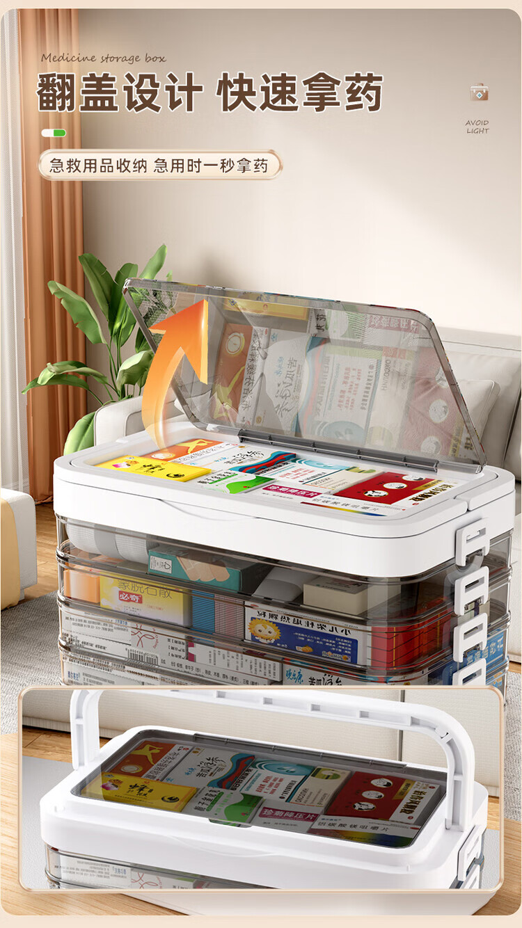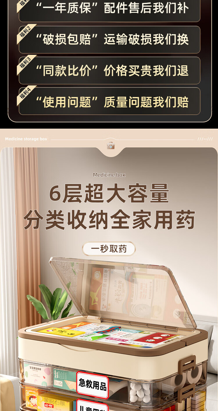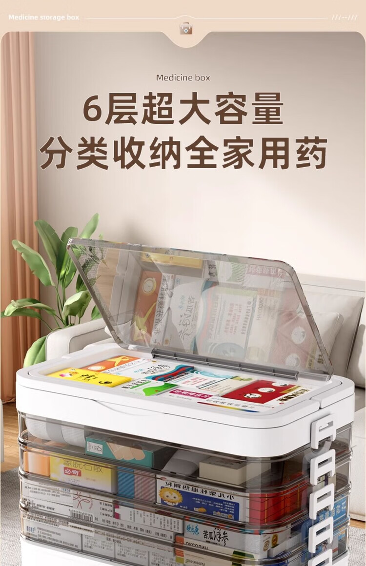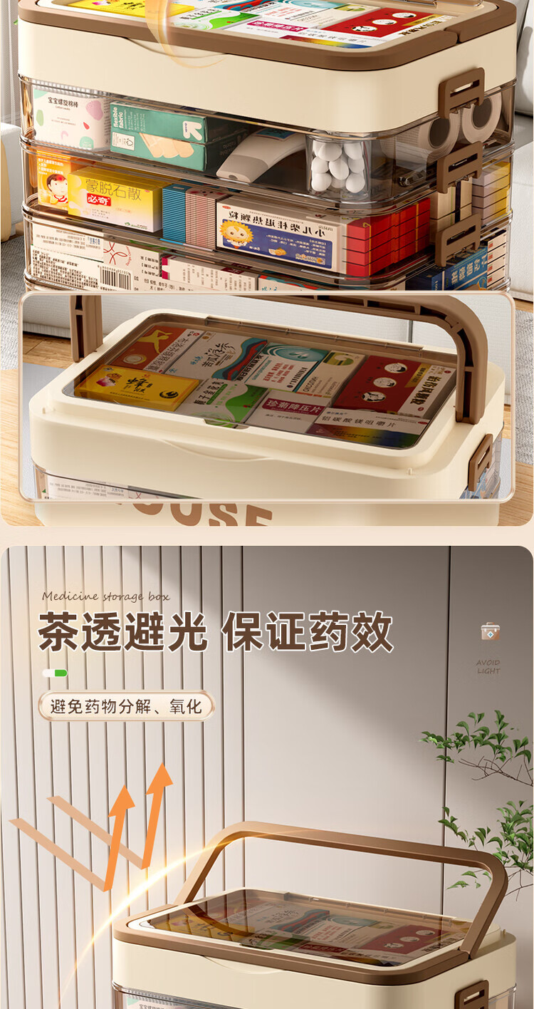 DEATKN德国六层药箱翻盖医药箱家用家庭装大号急救医疗常备分层收纳盒 【超大号 5层】生巧咖