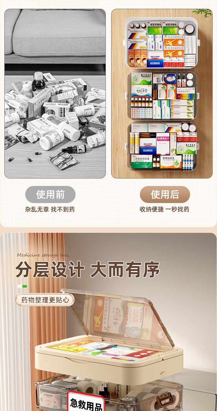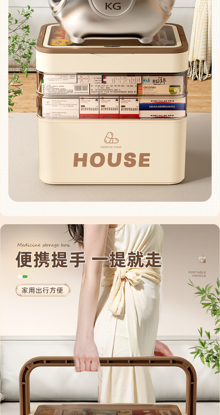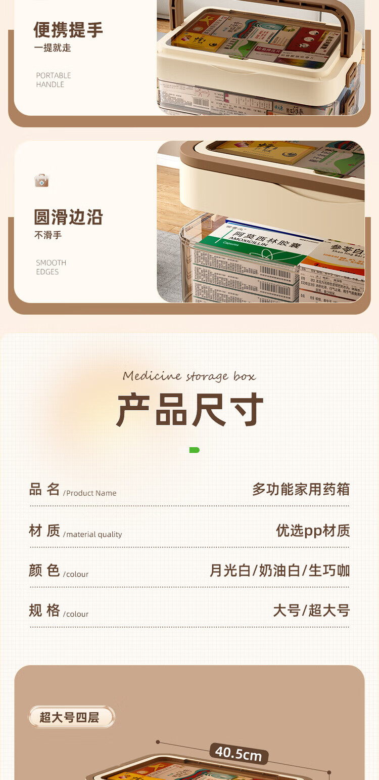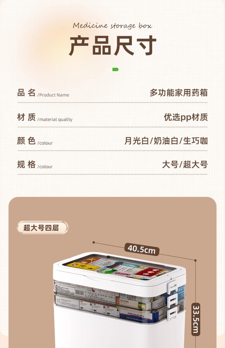 DEATKN德国六层药箱翻盖医药箱家用家庭装大号急救医疗常备分层收纳盒 【超大号 5层】生巧咖