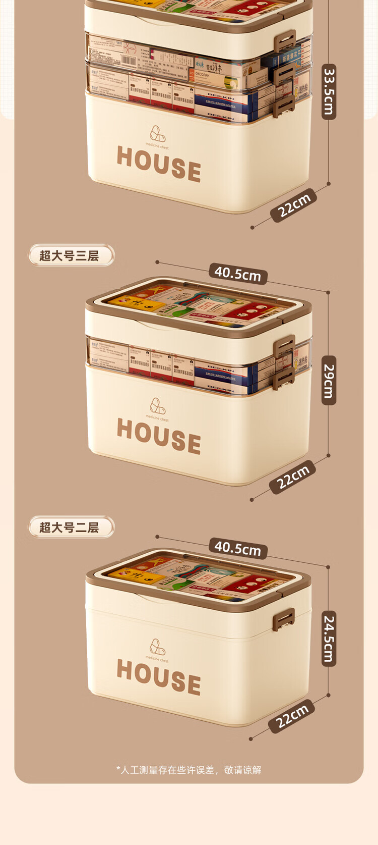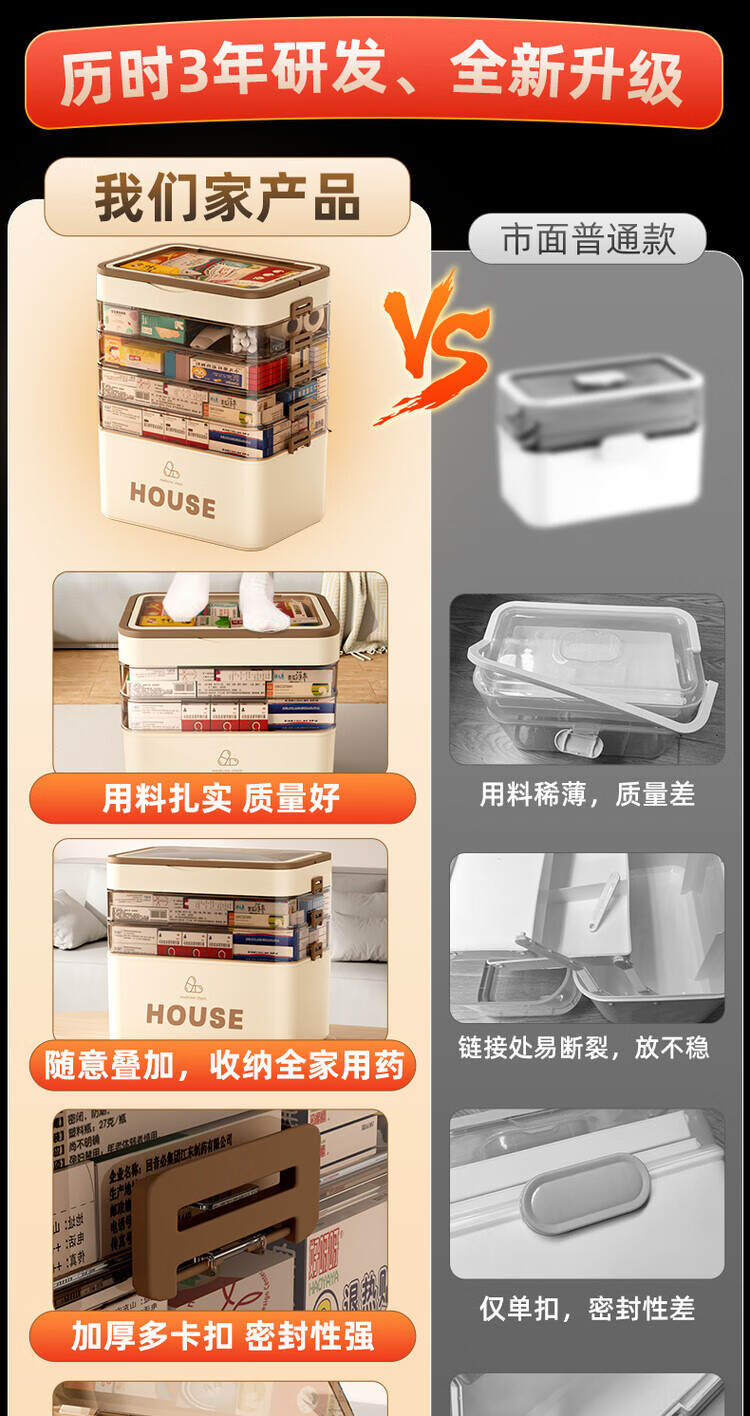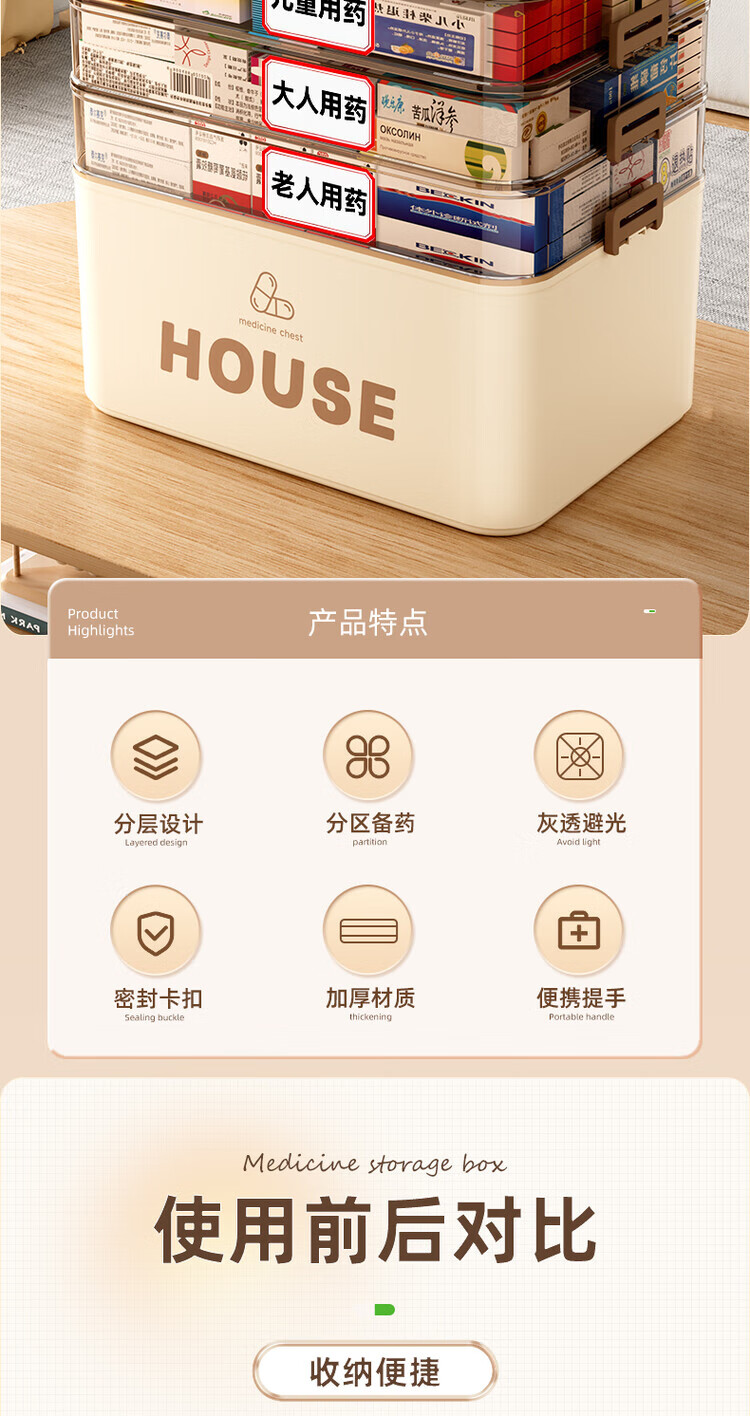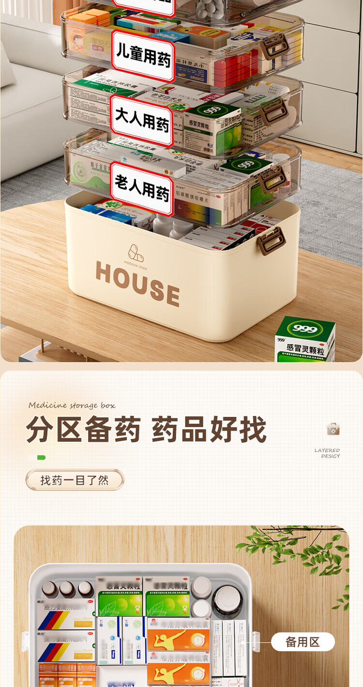 DEATKN德国六层药箱翻盖医药箱家用家庭装大号急救医疗常备分层收纳盒 【超大号 5层】生巧咖