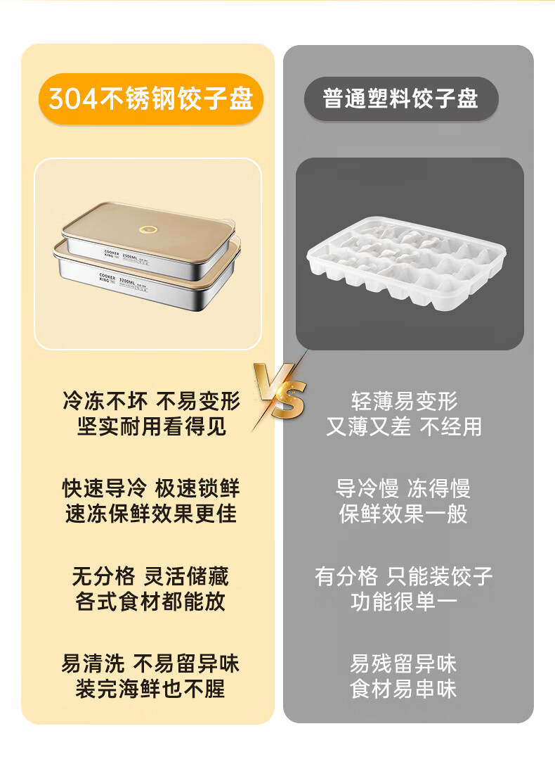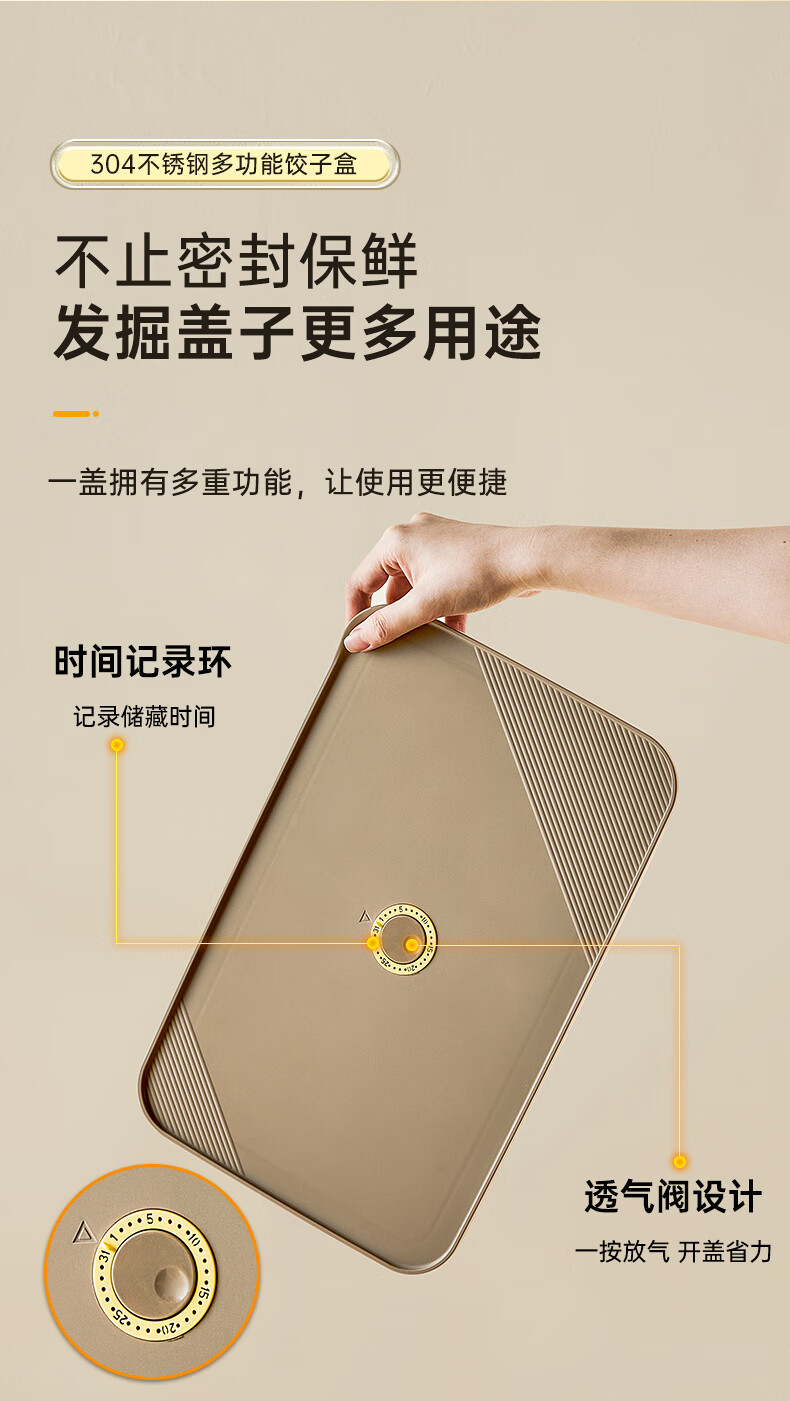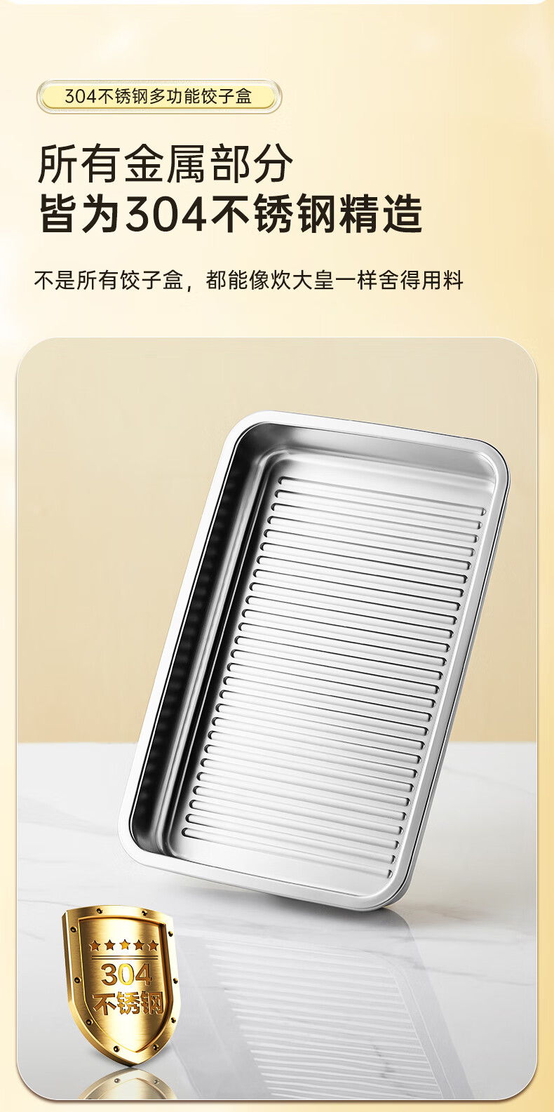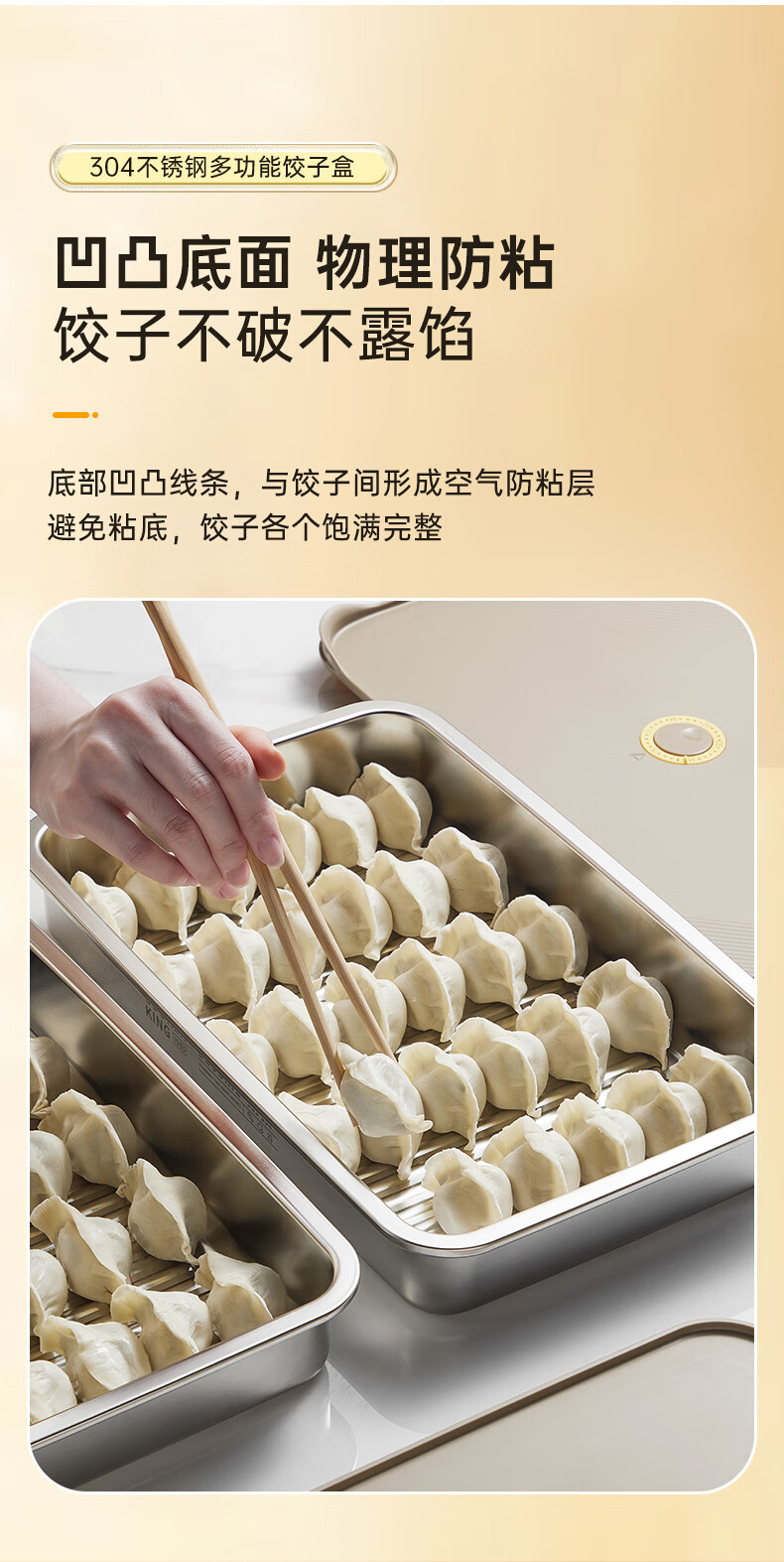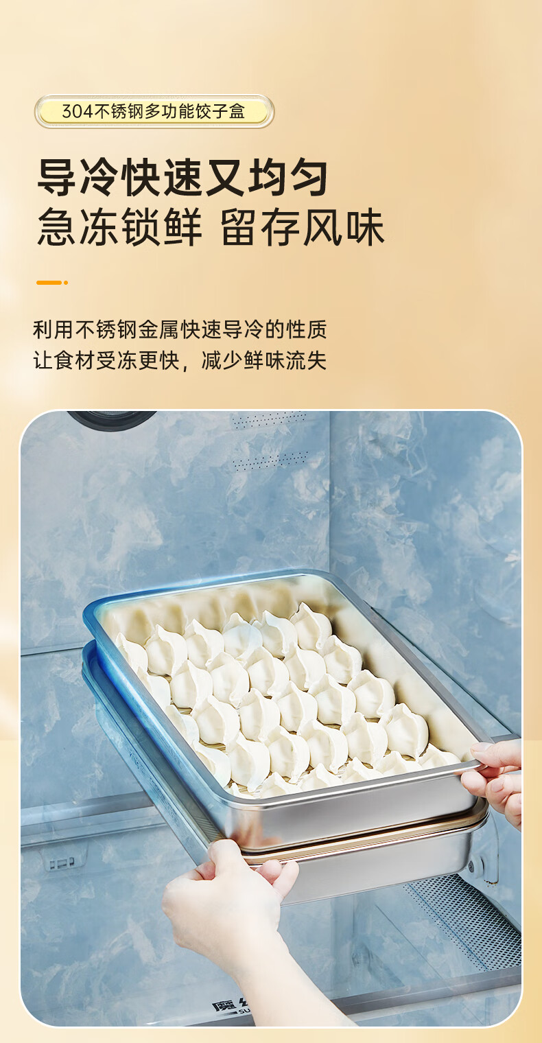 炊大皇 饺子盒 304不锈钢保鲜盒冰箱收纳盒大容量水饺馄饨盒3200ml