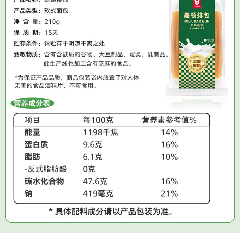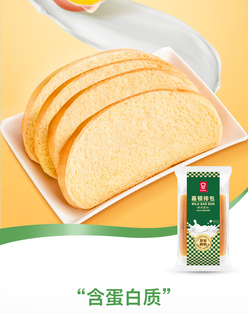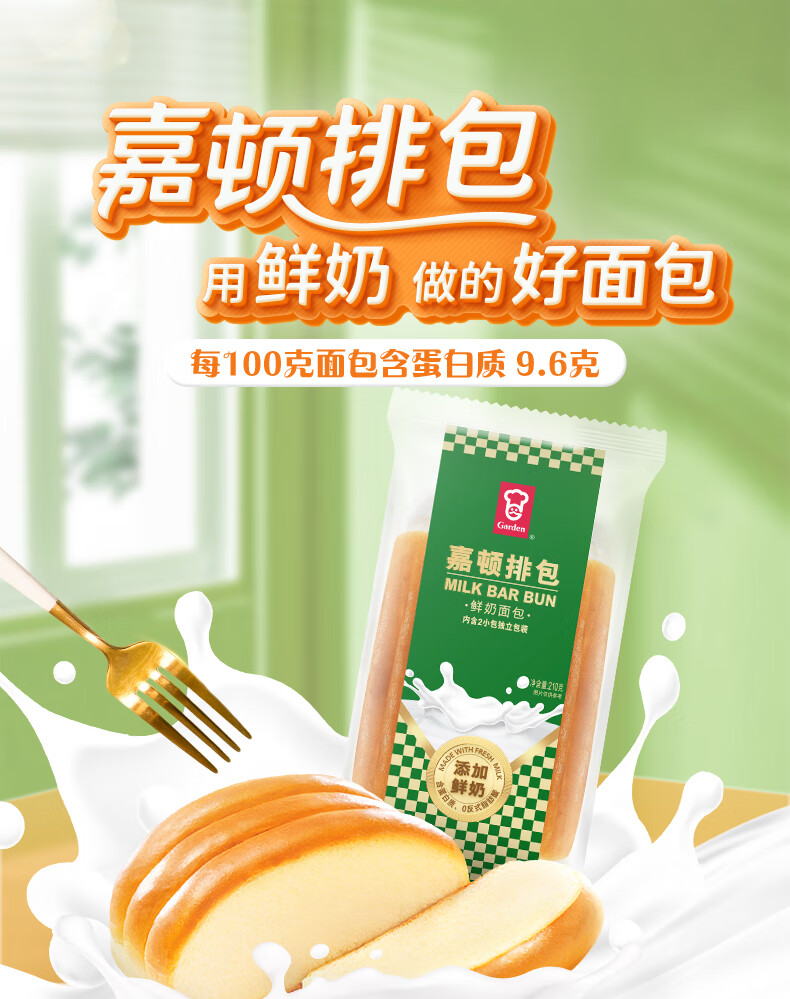 嘉顿(Garden)排包两袋装共420g 新鲜奶味面包营养早餐饱腹面包网红零食点心