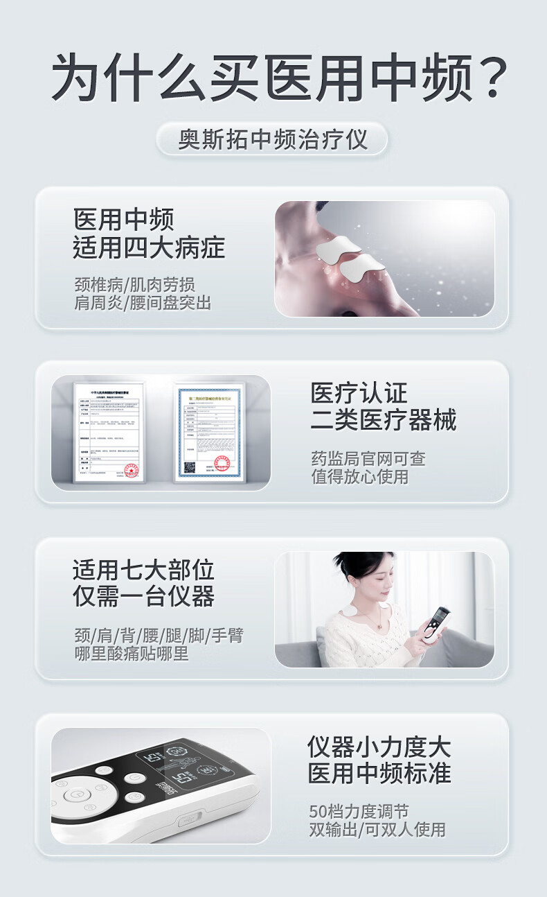 奥斯拓 中频脉冲理疗按摩仪家用颈椎腰部穴位治疗器全身经络针灸电疗仪