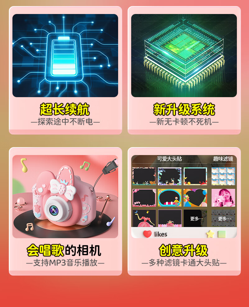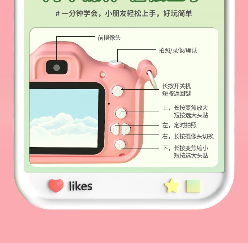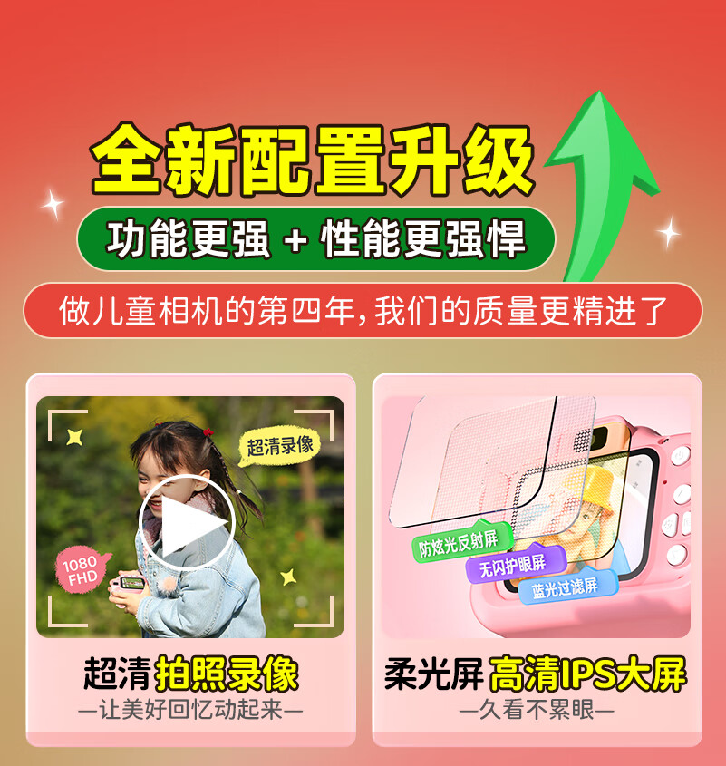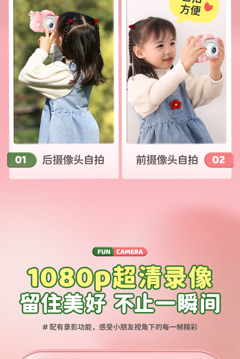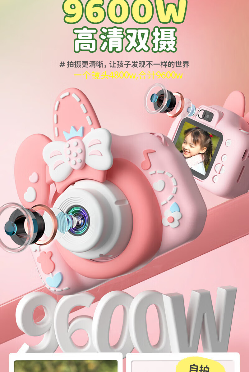 活石(LIVING STONES)儿童相机照相机7-14岁3-6高清数码拍照玩具女孩生日礼物12岁 粉64G丨9600w双摄+全包硅胶 学生迷你相机2025年火的玩具