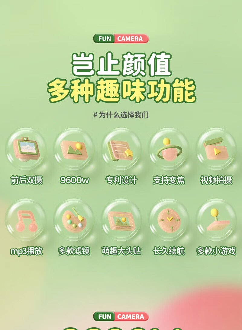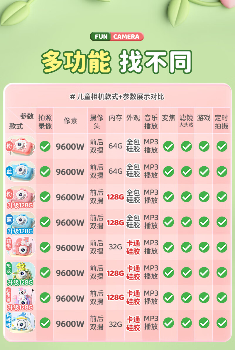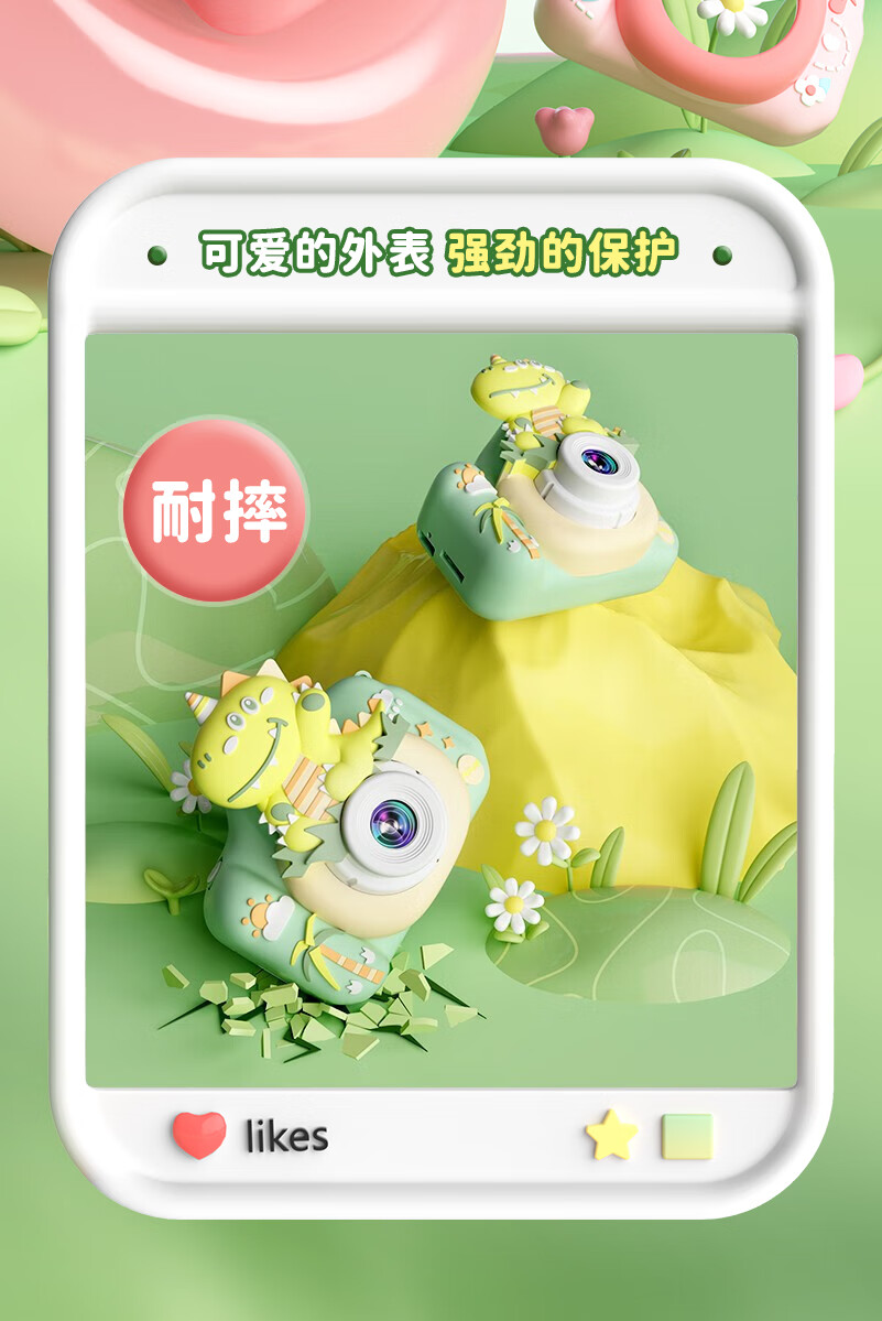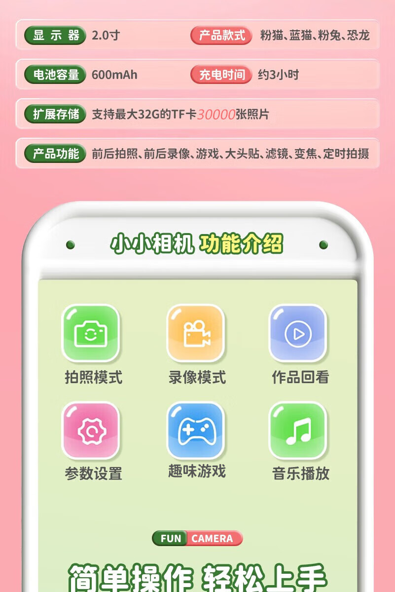 活石(LIVING STONES)儿童相机照相机7-14岁3-6高清数码拍照玩具女孩生日礼物12岁 粉64G丨9600w双摄+全包硅胶 学生迷你相机2025年火的玩具