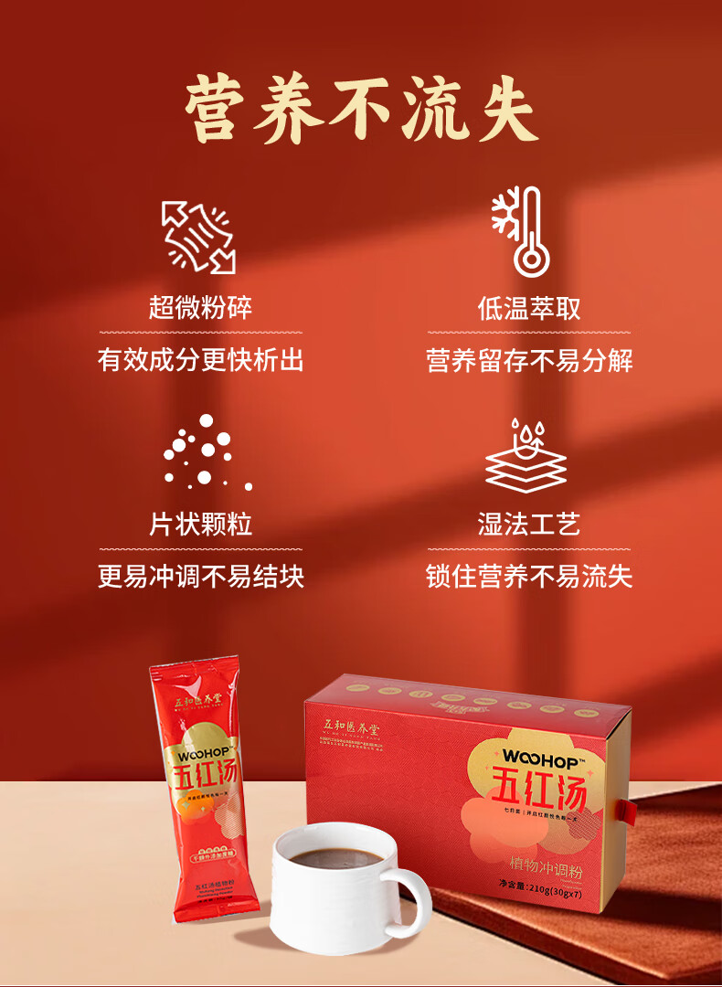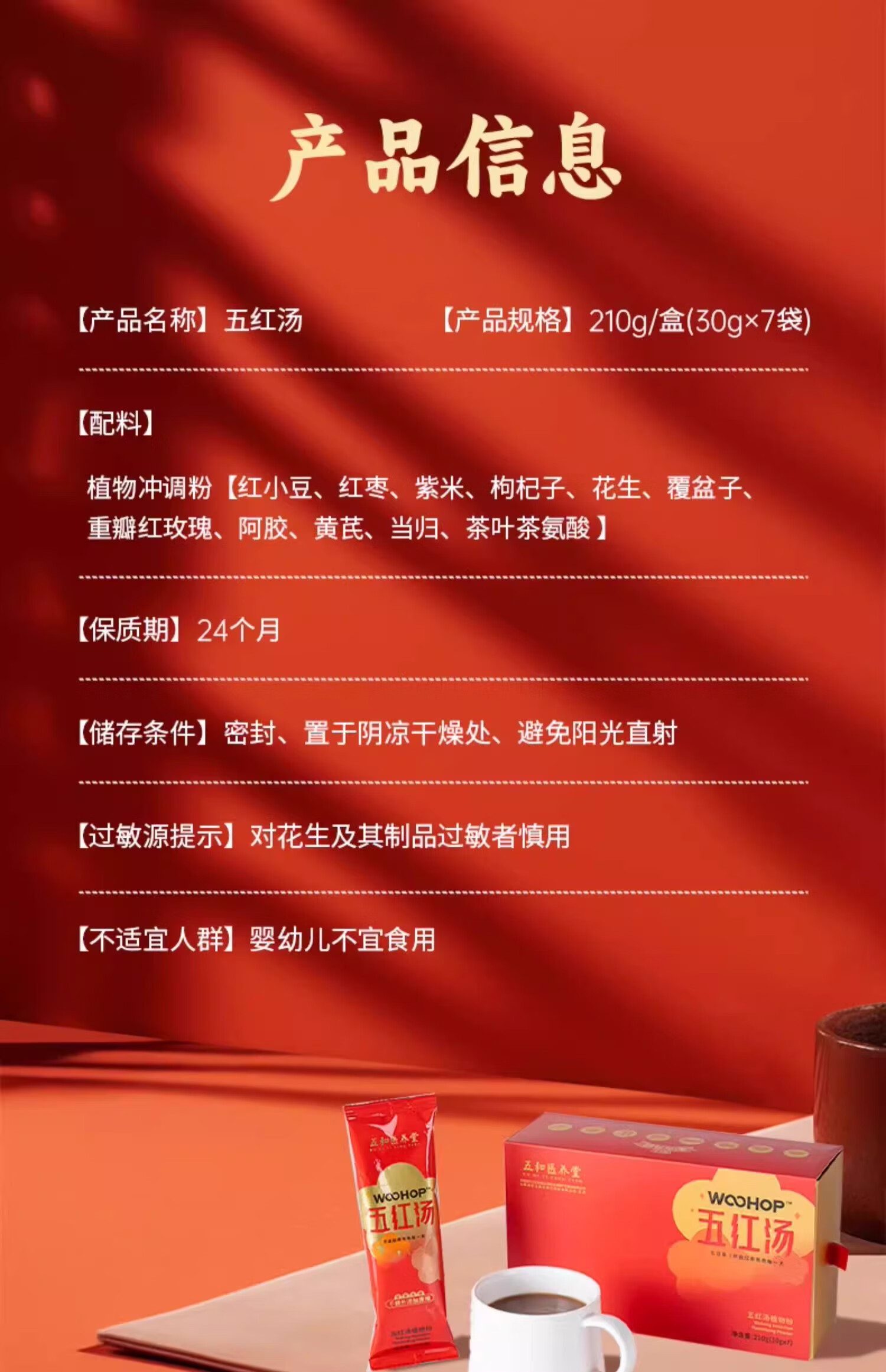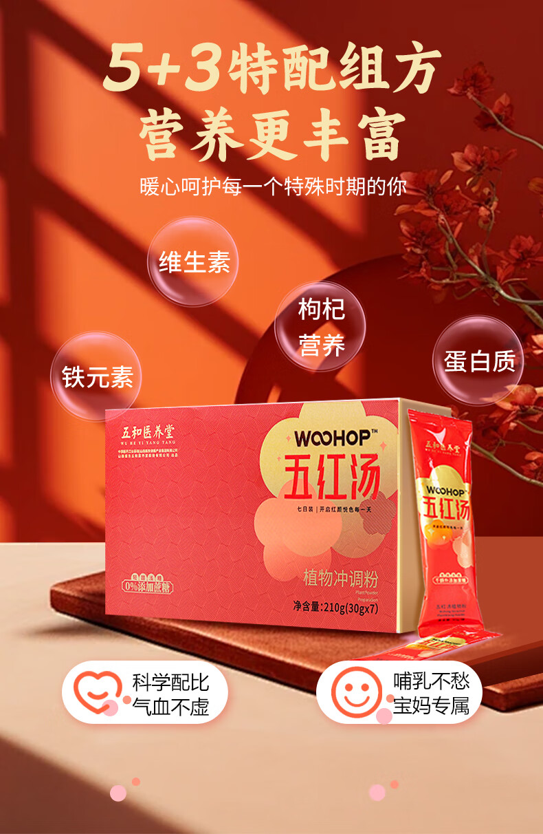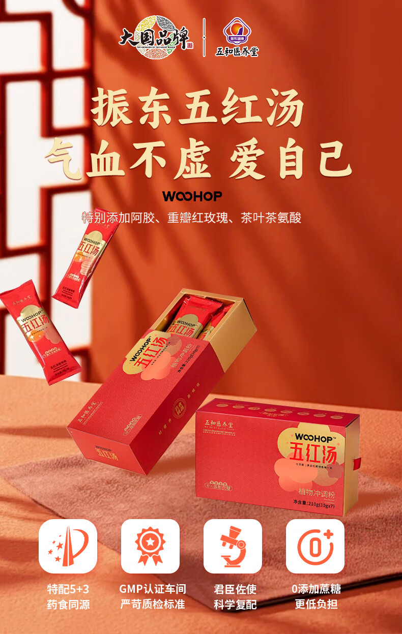 五和医养堂振东五红汤枸杞花生红枣阿胶即冲即食可代餐红颜悦产后营养补充 五红汤*4盒840g