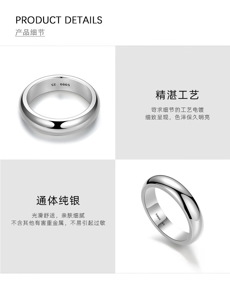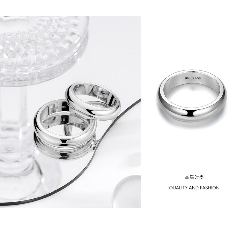 朵洛蔓S999足银泥鳅背光身亮面戒指情侣素圈对戒简约时尚气质男女指环 银色 26号