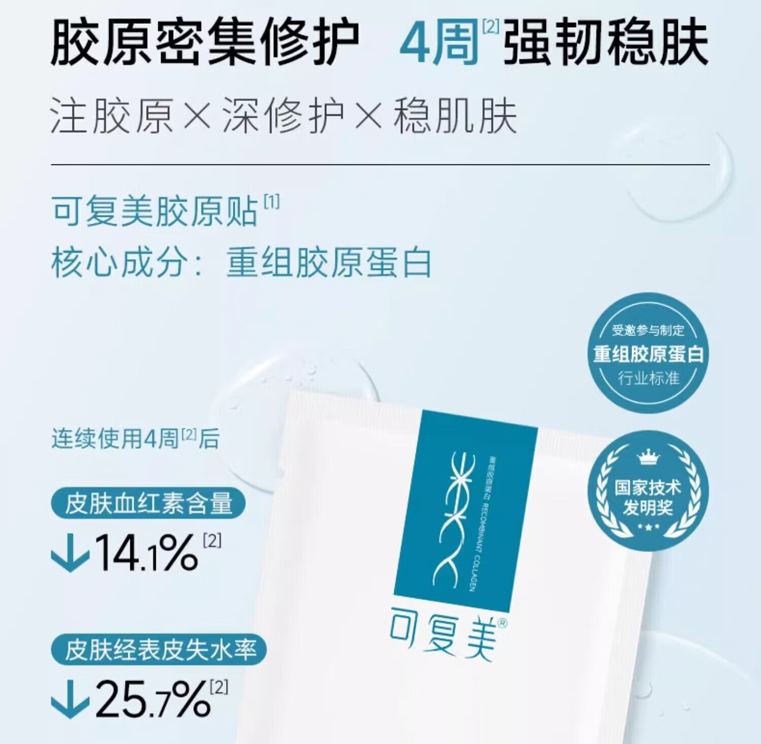 智伴熊 ZIYBUMBEAR重组胶原蛋白修护贴 舒缓修护贴片面膜肌肤屏障补水敏感肌保湿 重组胶原蛋白修护贴整盒5片