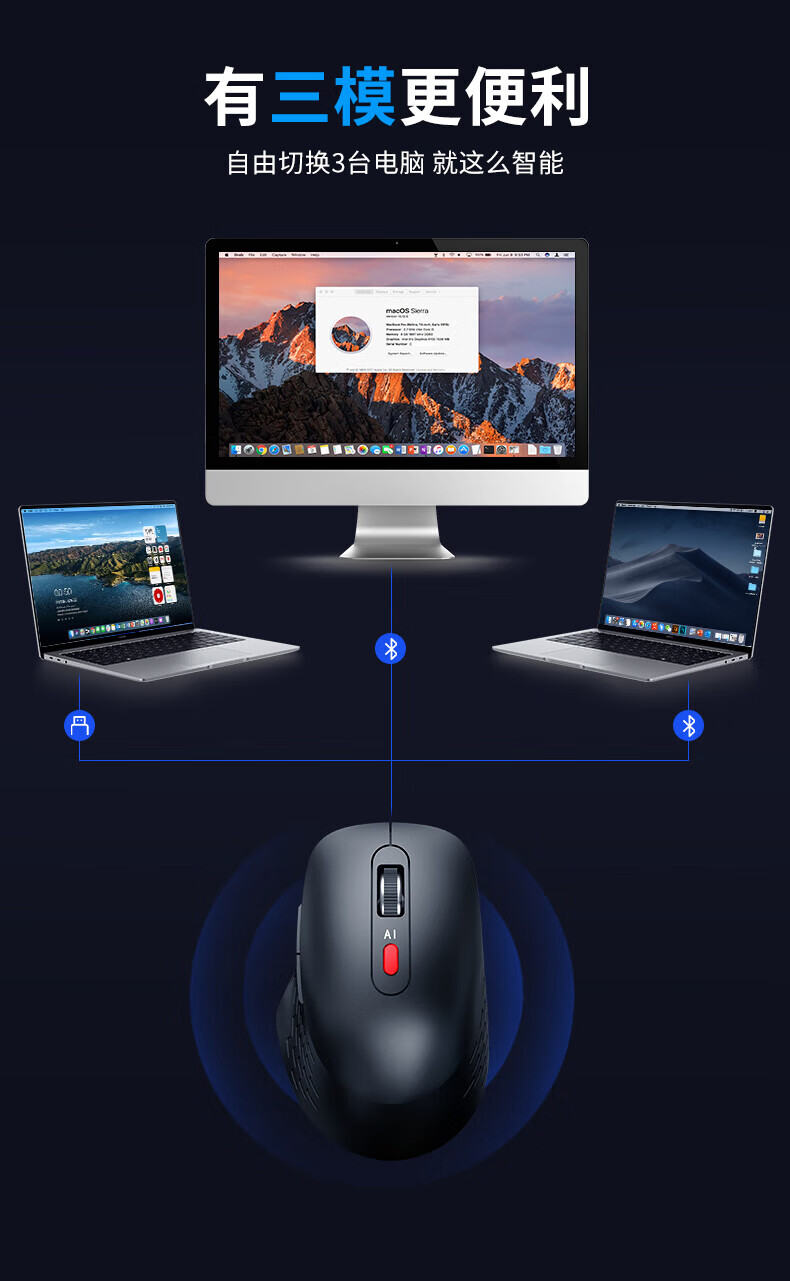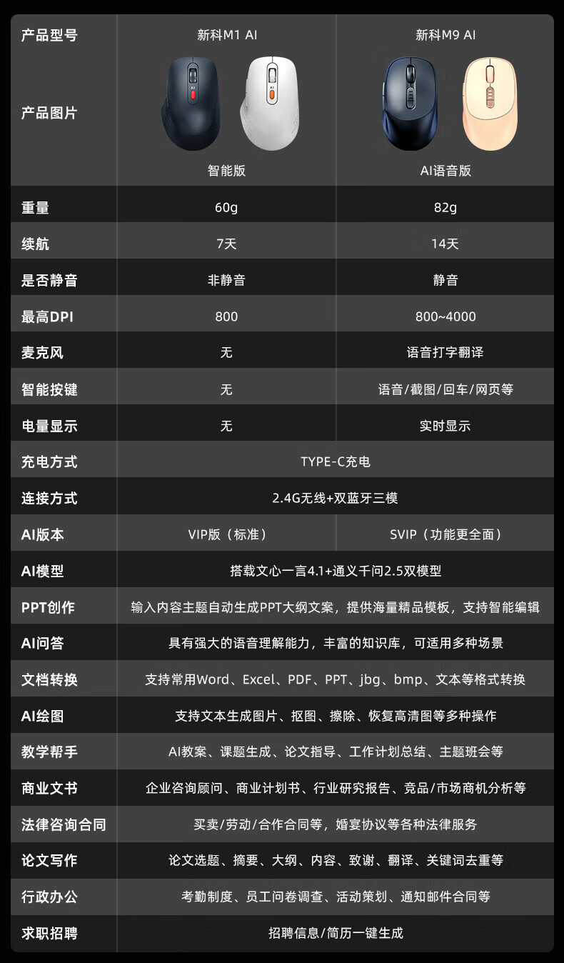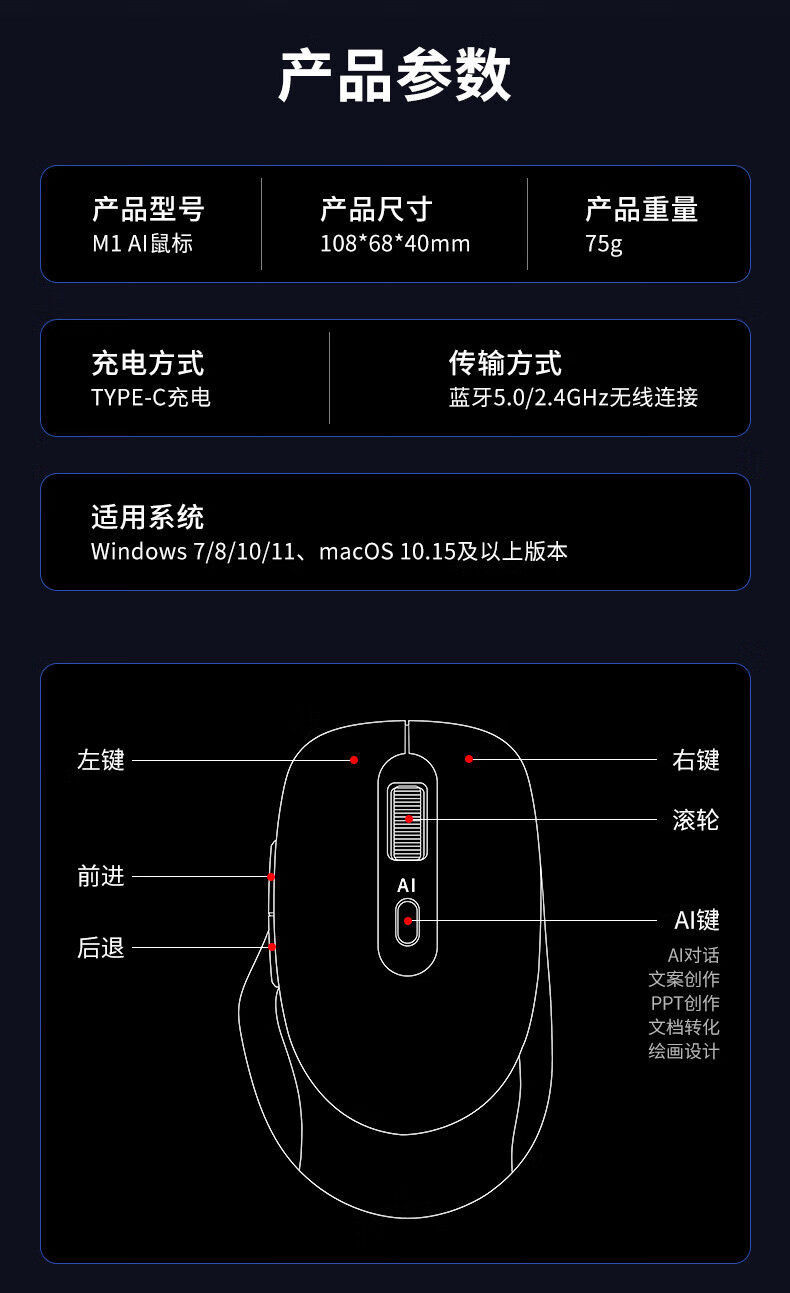 新科AI智能鼠标无线蓝牙可充电三模家用办公写作绘画制作PPT AI智能版【ai写作/绘画/ppt】白色