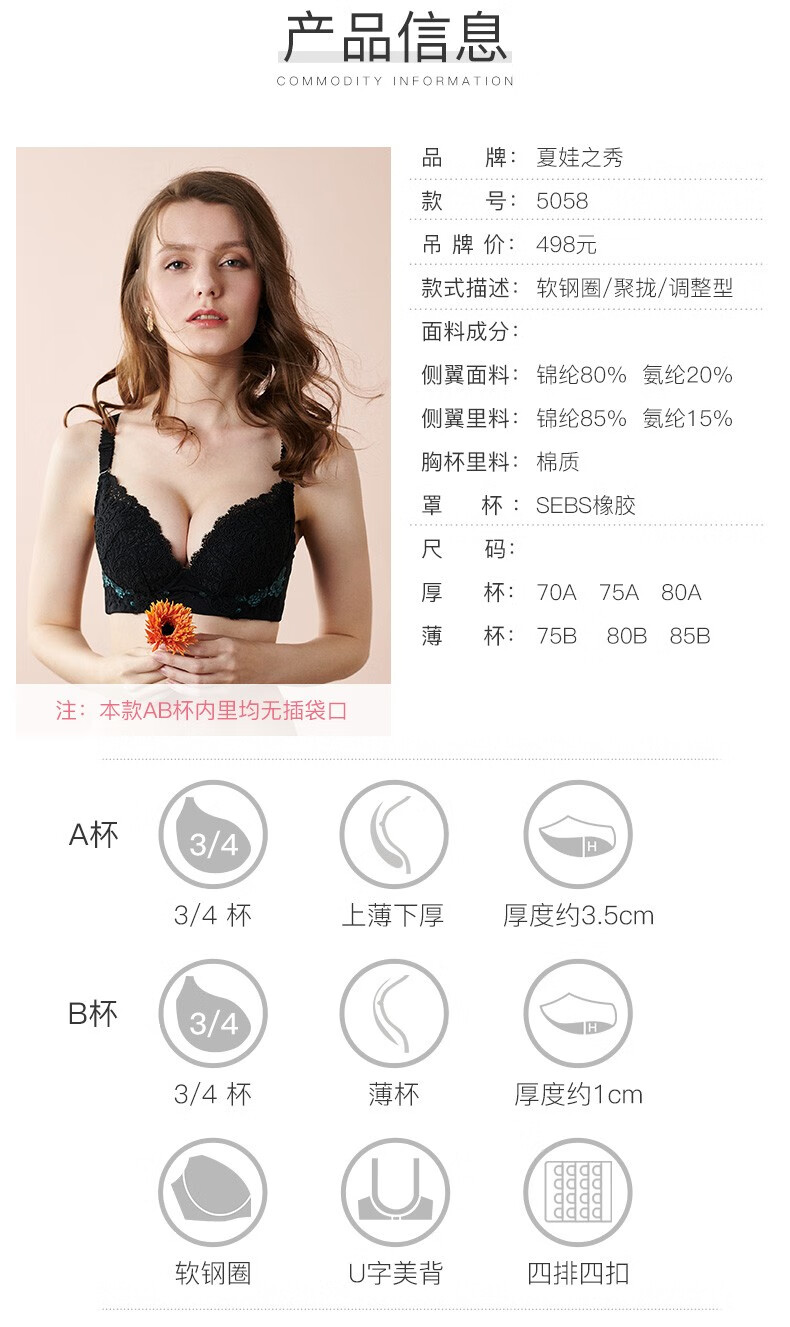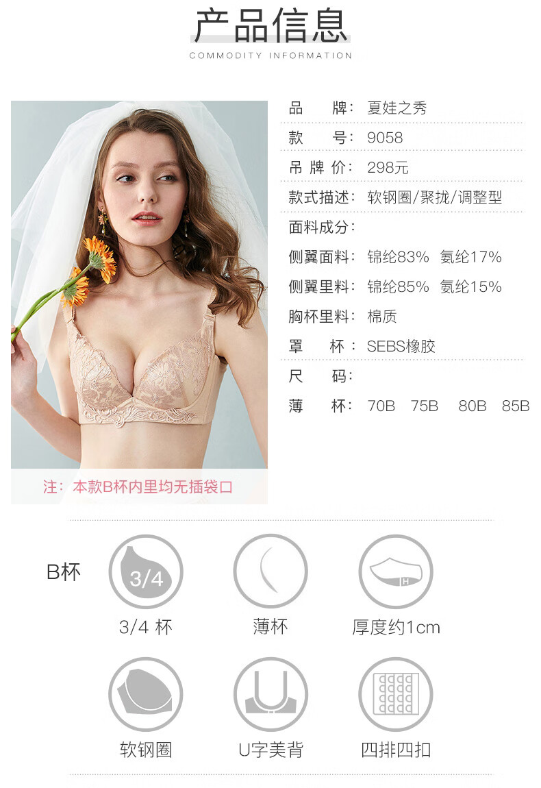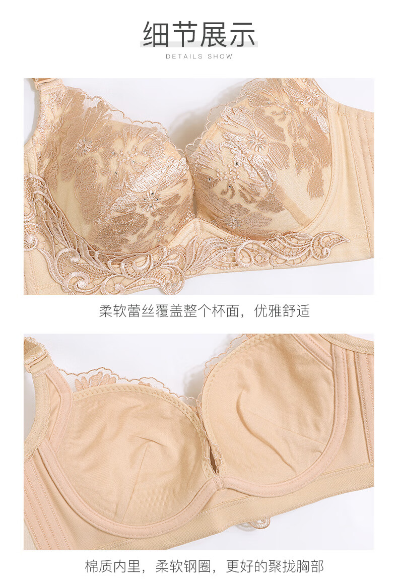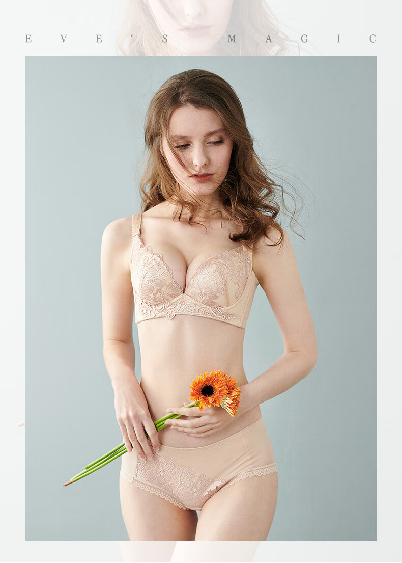 夏.娃.之.秀商场同款 文胸刺绣B杯薄款硅胶聚拢防下垂调整型文胸 裸肤 70B =32B薄模杯