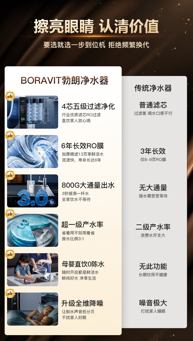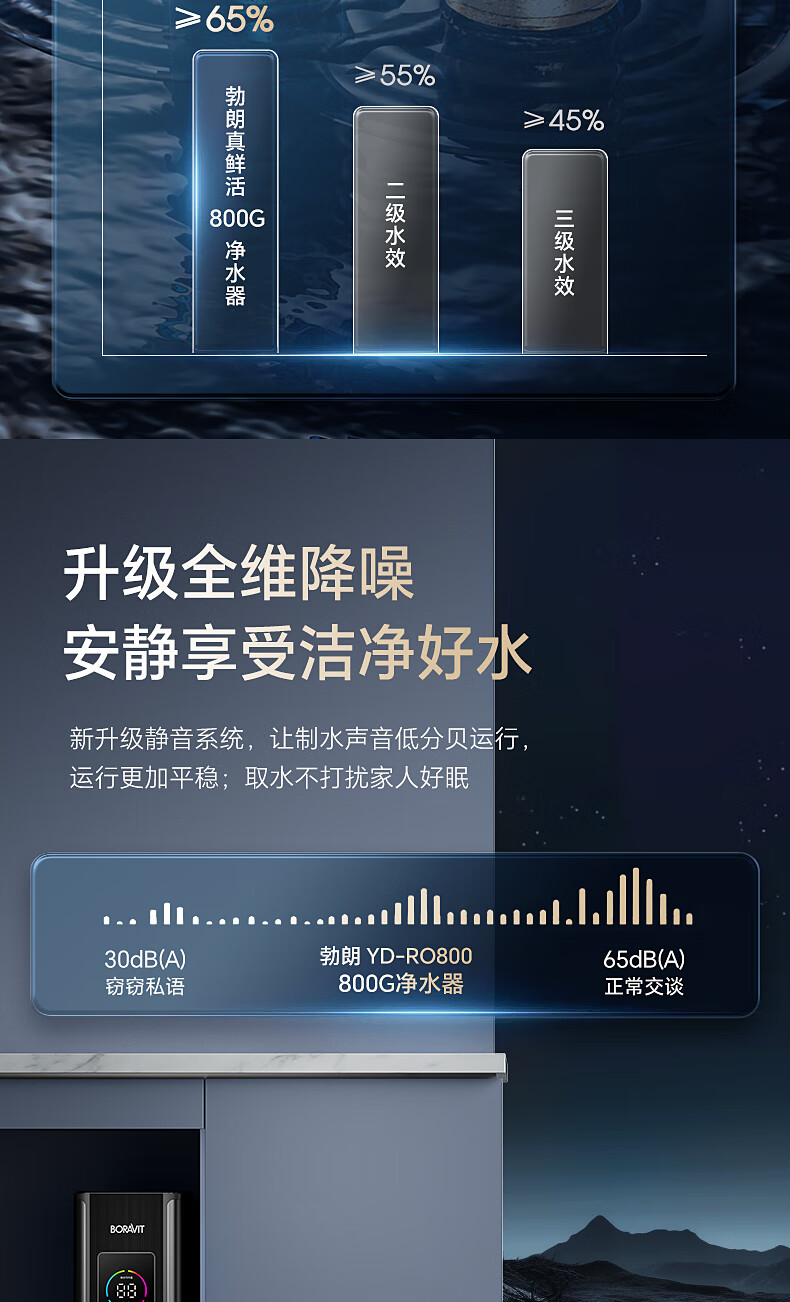 BORAVIT勃朗【免费上门安装】净水器家用直饮机一体机厨房专用台下厨下式净水机RO反渗透管线机套装 【店长推荐】800G净水器+AI声控管线机