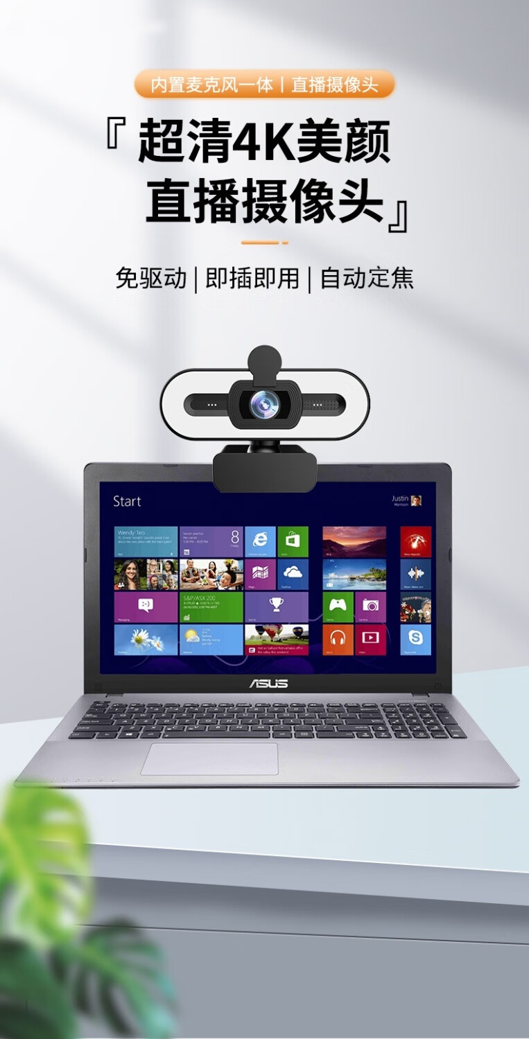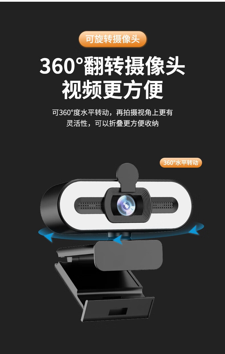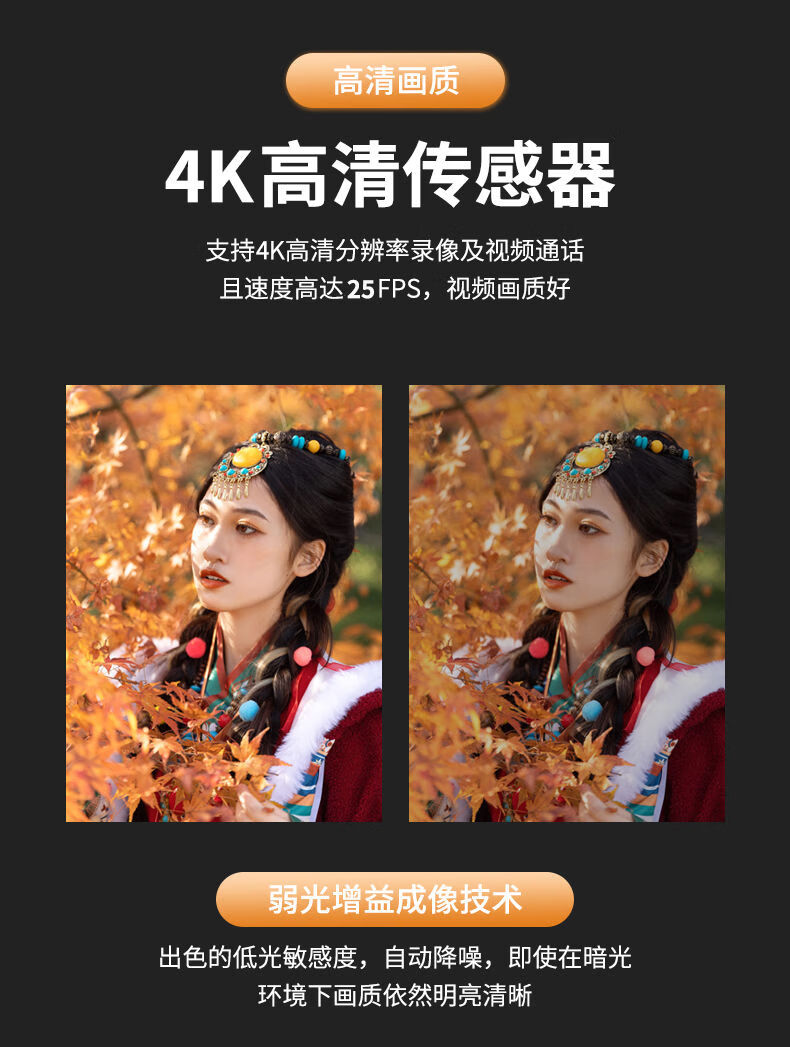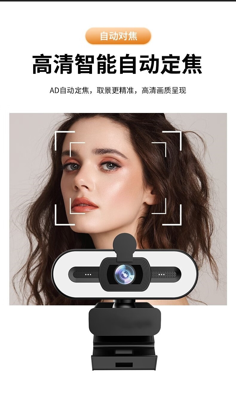 九目4K超清美颜USB网络直播会议麦克风笔记本台式电脑网课摄像头 4K 超清+三档调光+内置麦