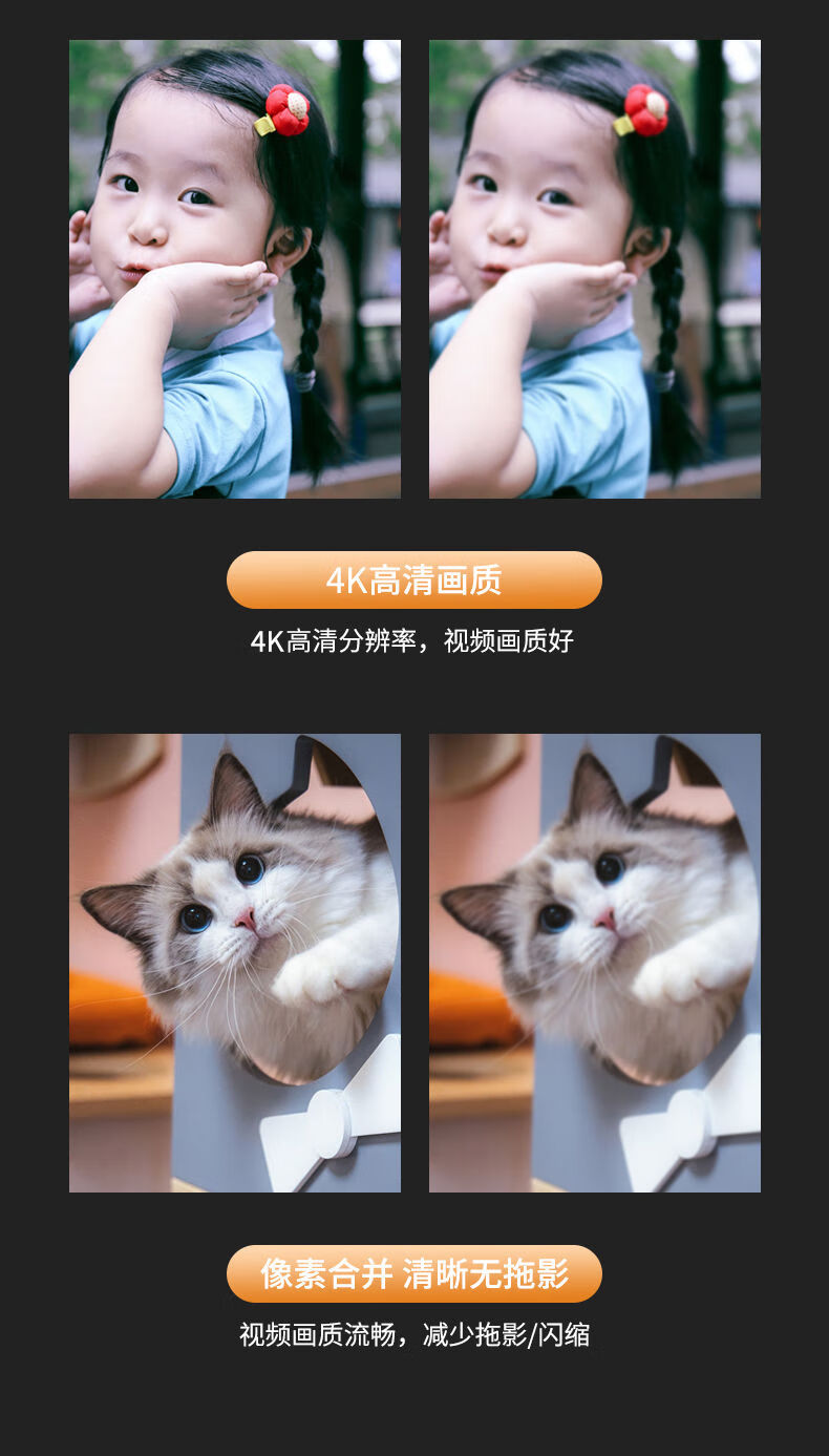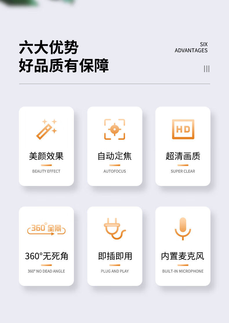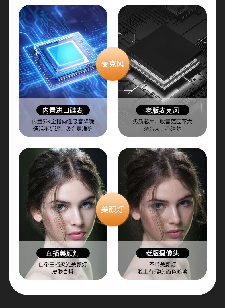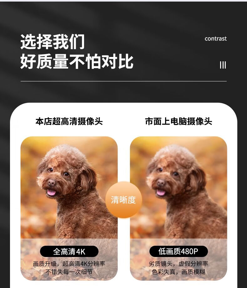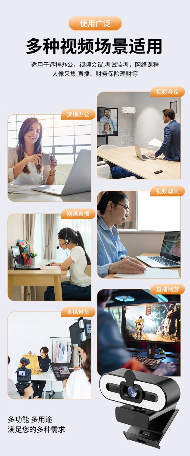 九目4K超清美颜USB网络直播会议麦克风笔记本台式电脑网课摄像头 4K 超清+三档调光+内置麦