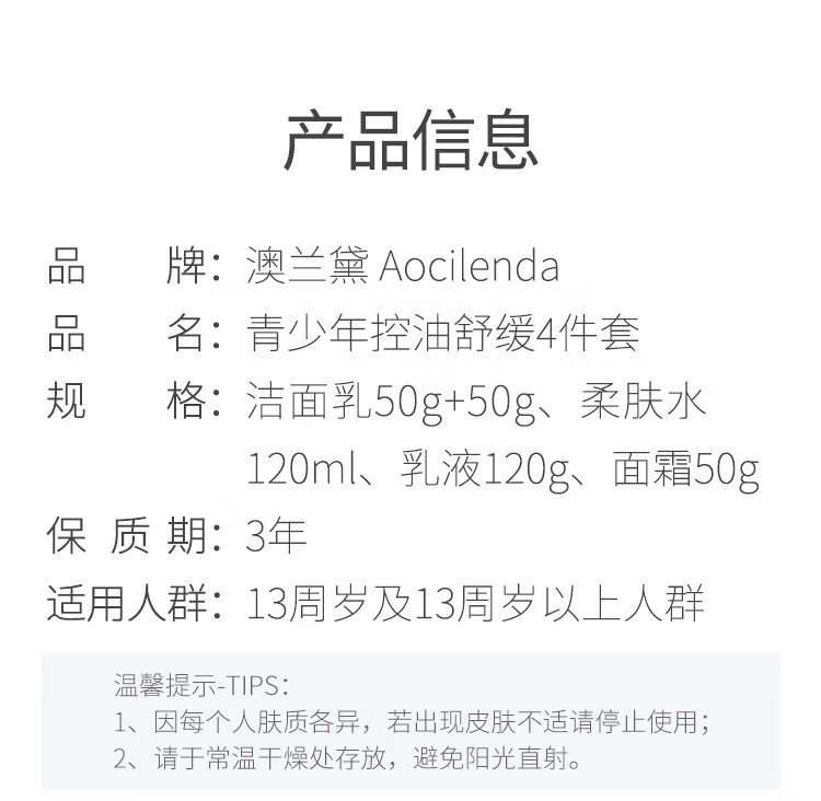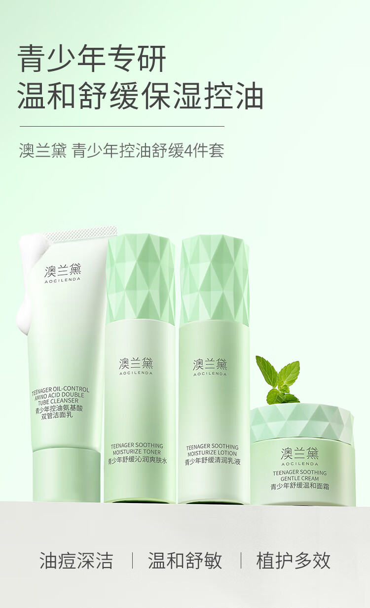 澳兰黛(AOCILENDA)青少年护肤品套装水乳控油保湿舒缓13岁以上男女学生青春期护秋冬 【控油舒缓】洁面+水+乳+面霜