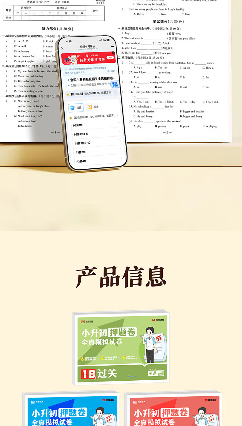 荣恒教育25最新小升初必刷18套押题卷语数英 小升初必刷押题卷语数英 共三册